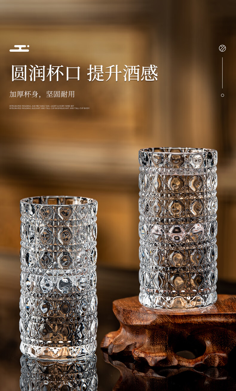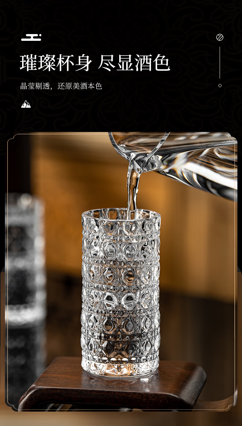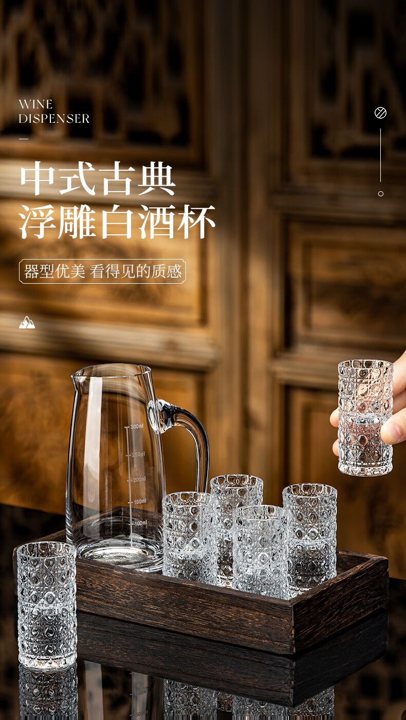 Zhenxiqi white wine glass set 6 small wine glasses, one cup, household bullet cup, shot cup, foreign wine glass, drinking cup, wine set, gem pattern small wine glass 20ml, 6 pieces, no tray