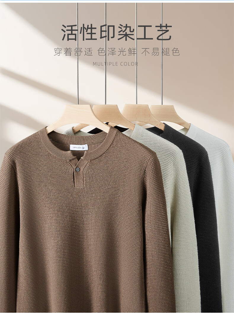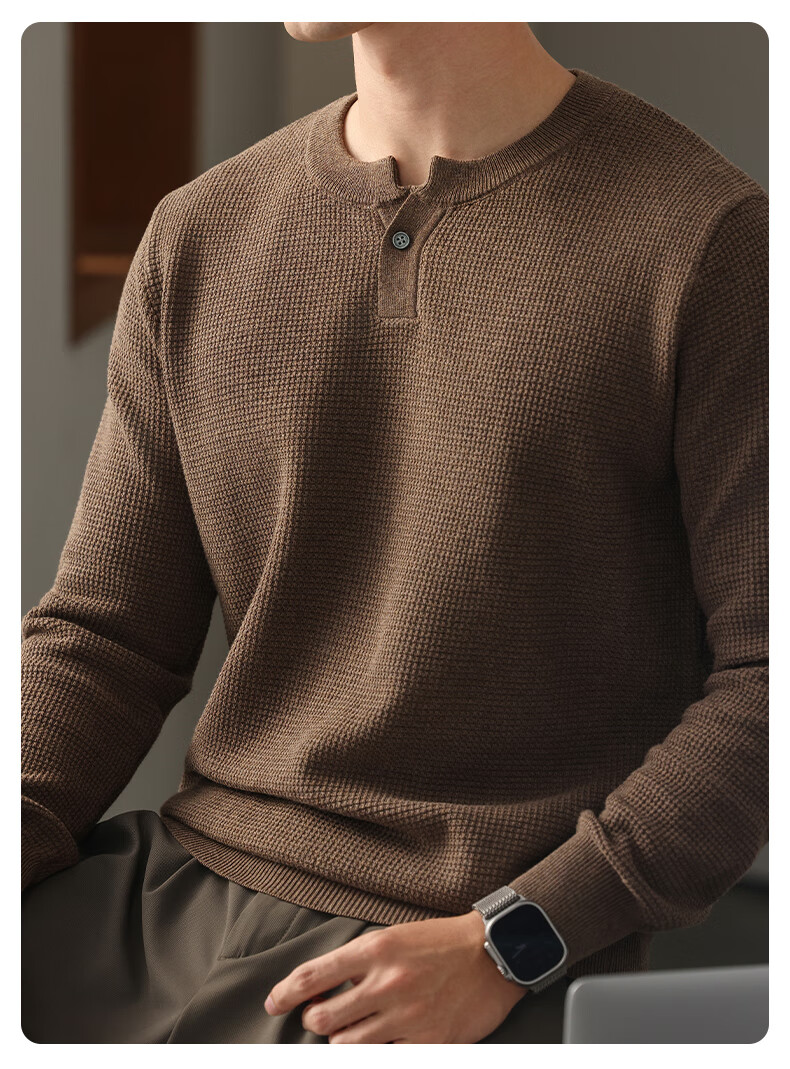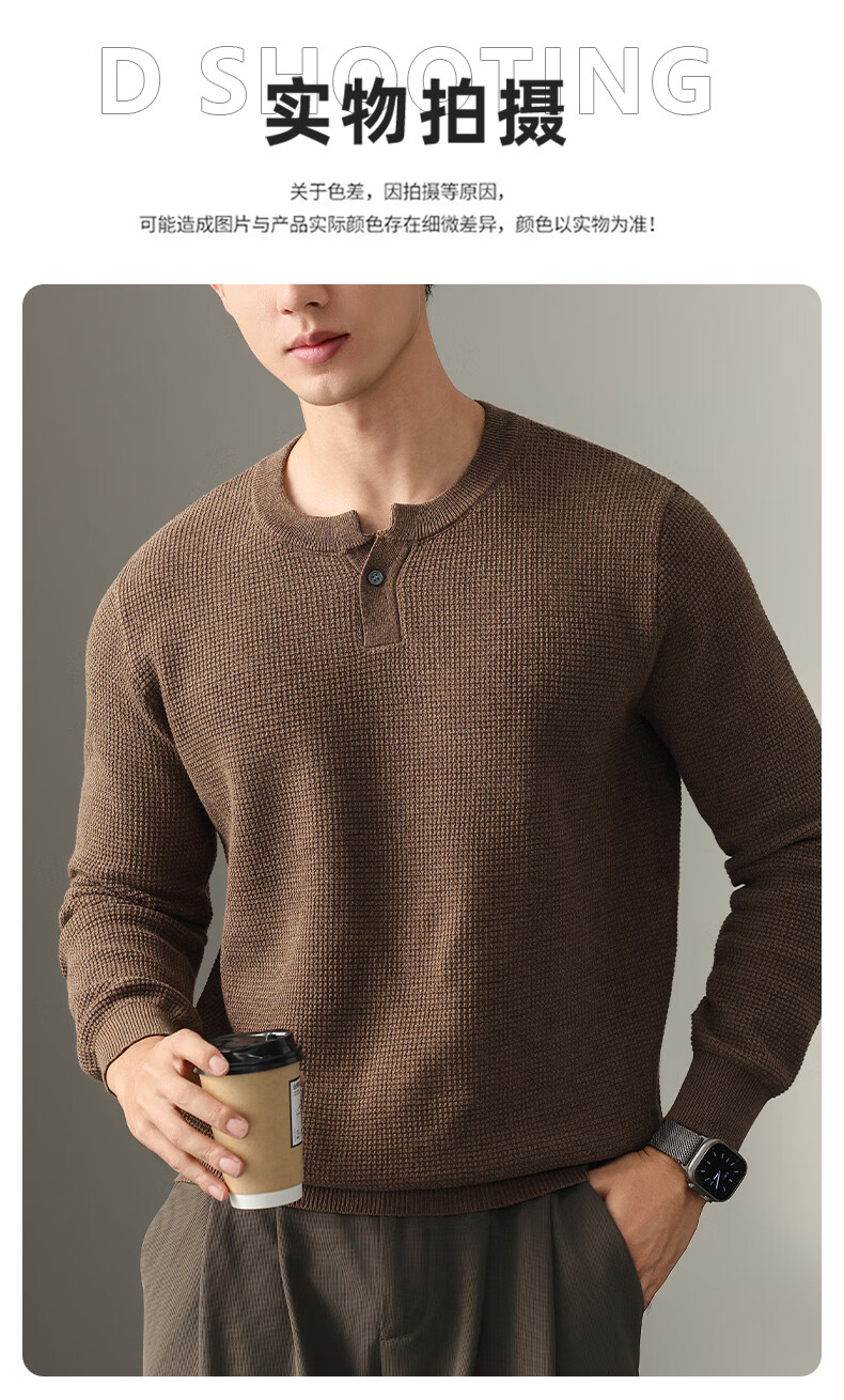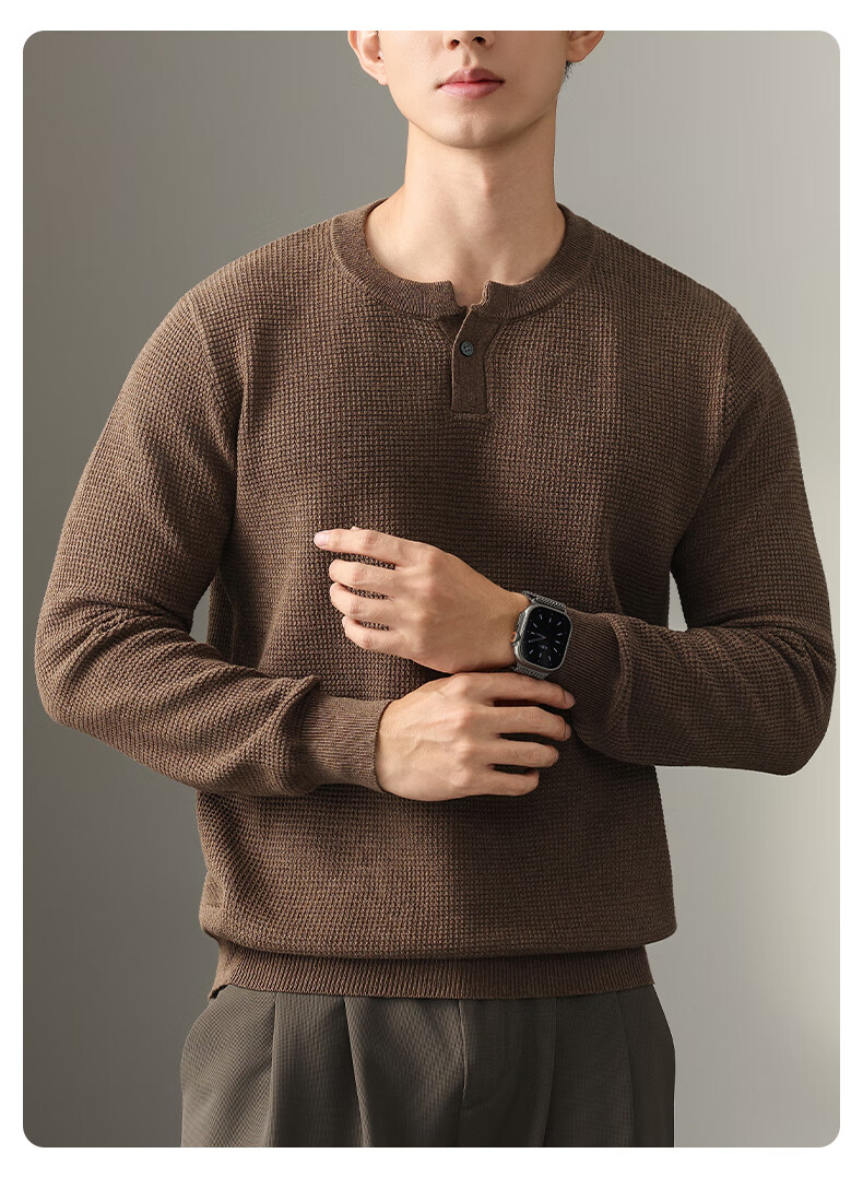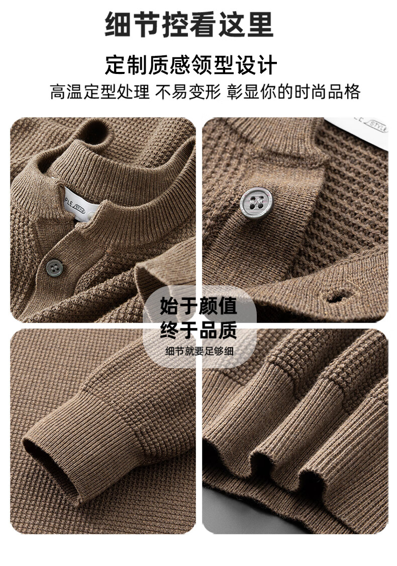 New Balance high-end lazy style heavy sweater men's trendy brand loose autumn and winter Henry collar casual simple warm sweater for men brown L