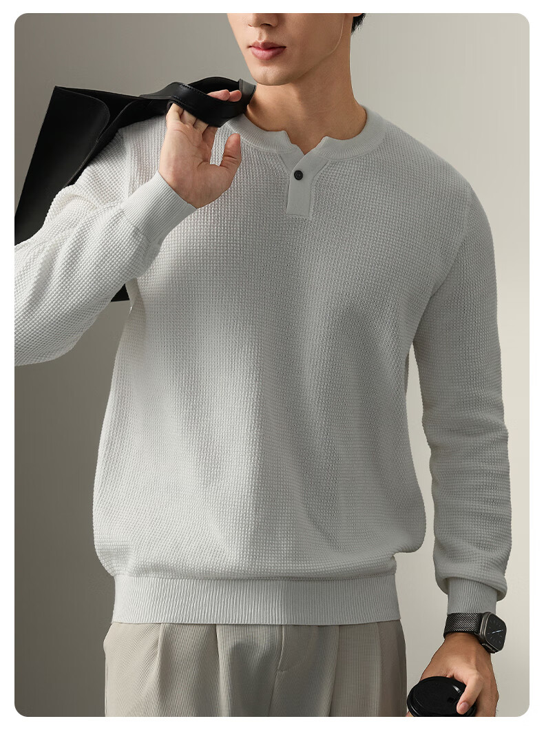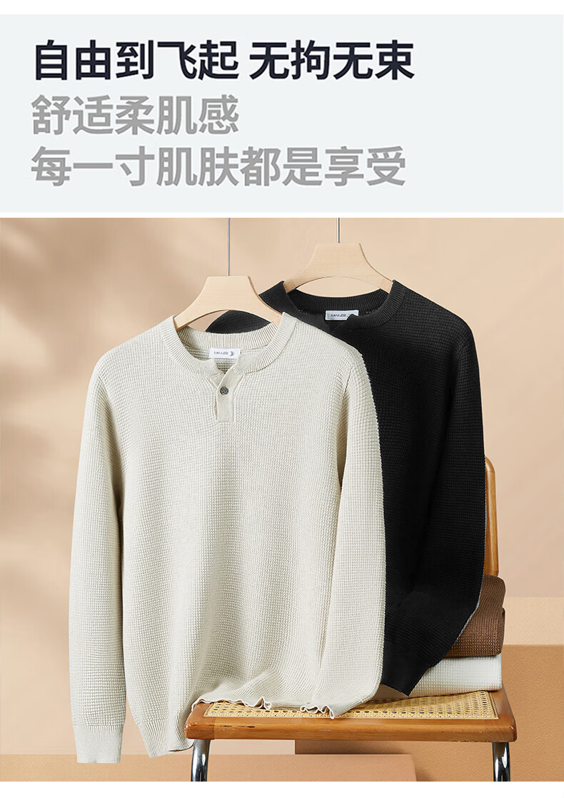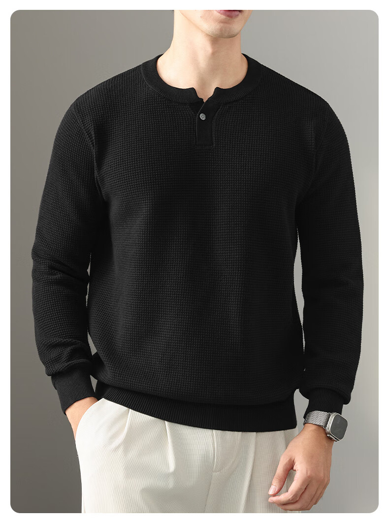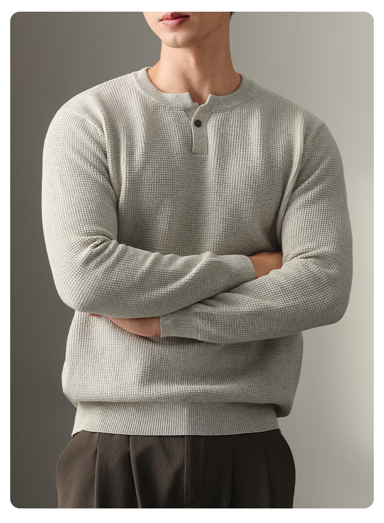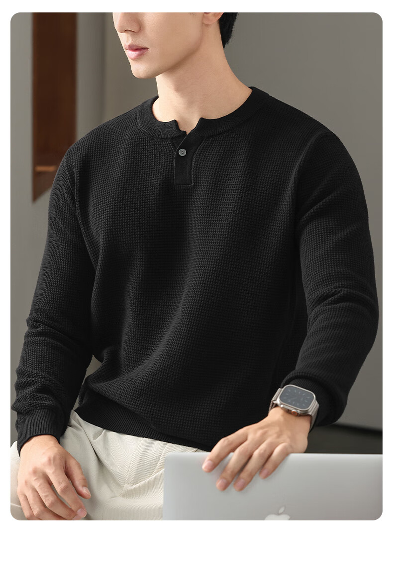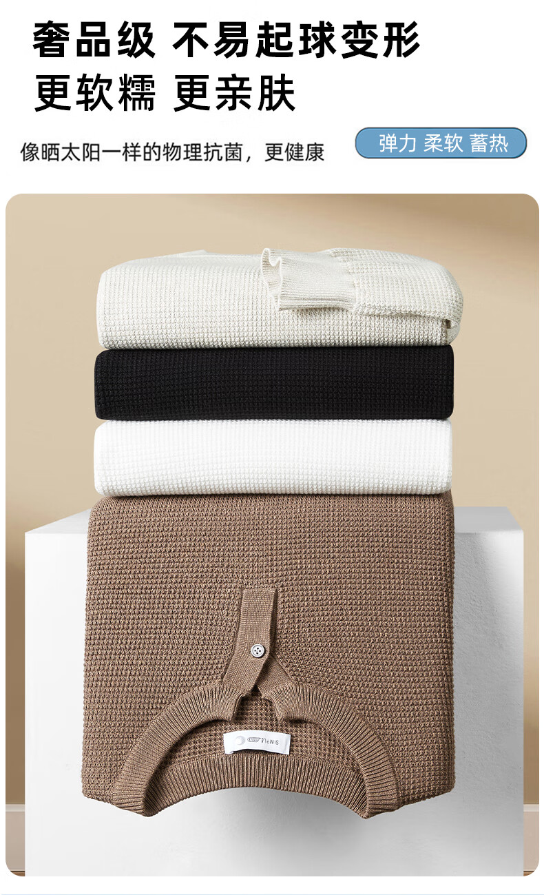 New Balance high-end lazy style heavy sweater men's trendy brand loose autumn and winter Henry collar casual simple warm sweater for men brown L