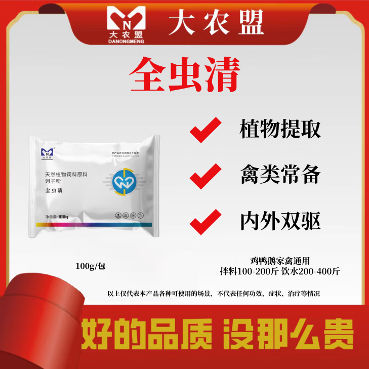 DaNongmeng-Feed Additive-Quanchongqing 100g/pack chicken, duck, goose and poultry, non-resistant Chinese medicine internal and external deworming, shot 1 shot 2