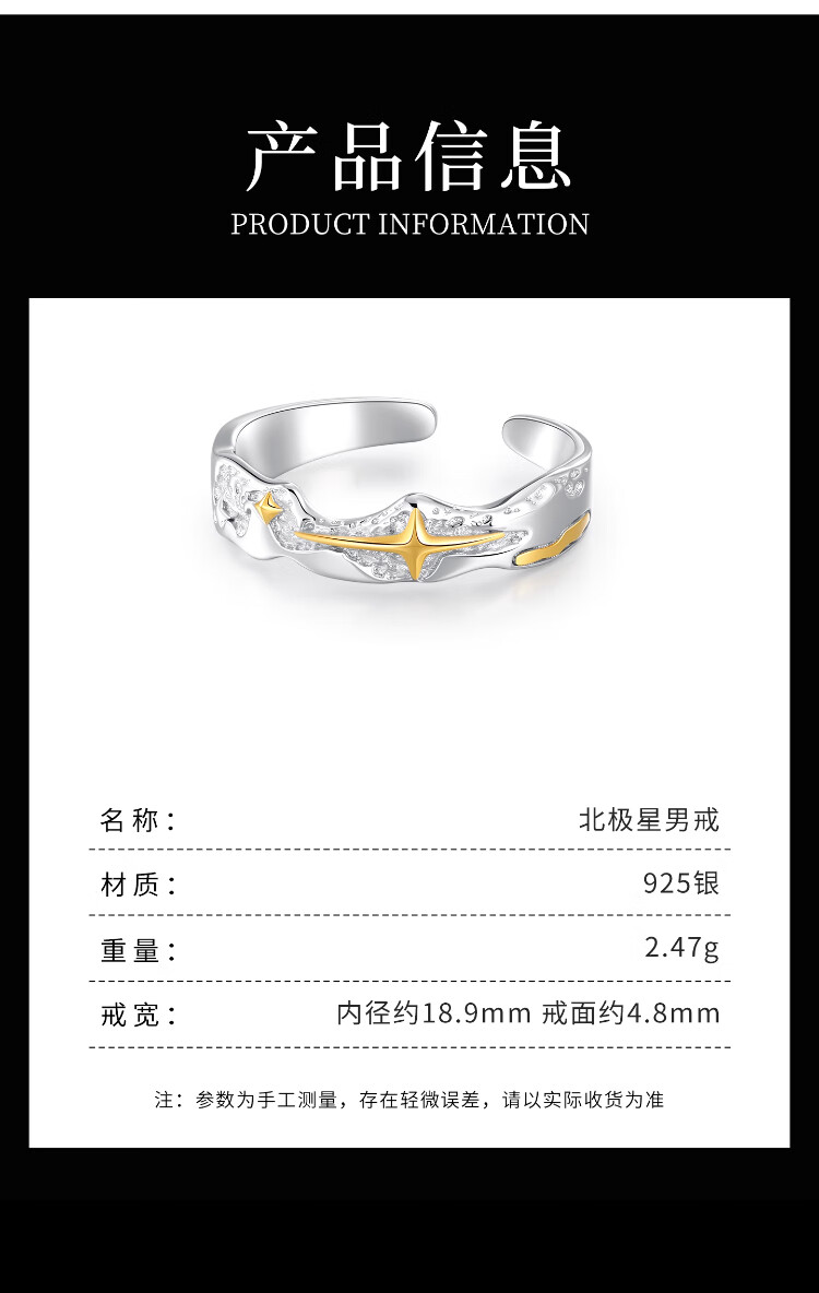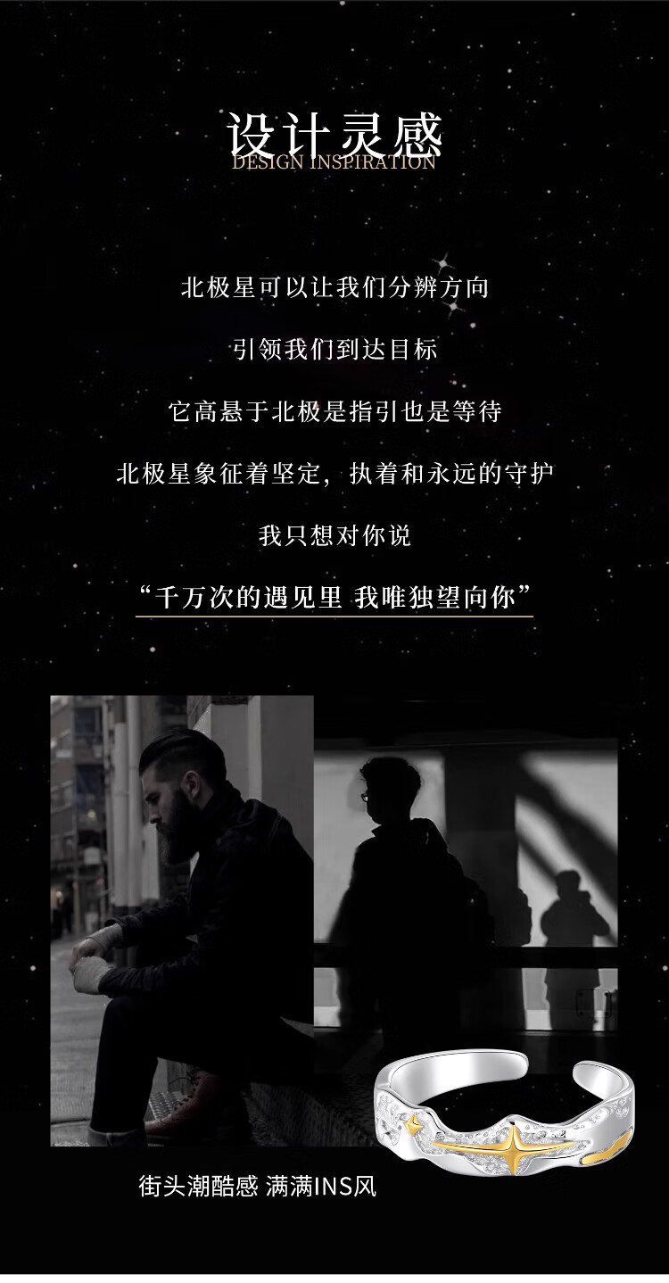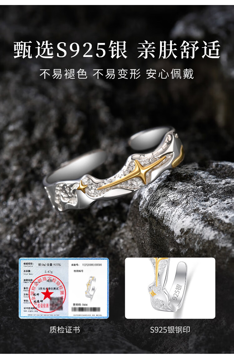 MOLC sterling silver Polaris ring men's 2025 new men's tail ring niche design self-disciplined high-end birthday gift 925 silver Polaris ring gift box + certificate R0681