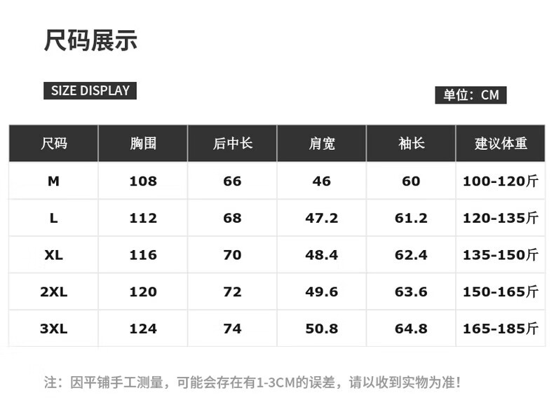 China (cm) 165 / 88-90 170 / 96-98 175 / 108-110 180 / 118-122 185 / 126-130