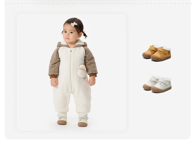 Ying's baby toddler shoes, winter casual cotton shoes, warm and velvet, versatile and comfortable shoes for boys, girls going out, off-white 17
