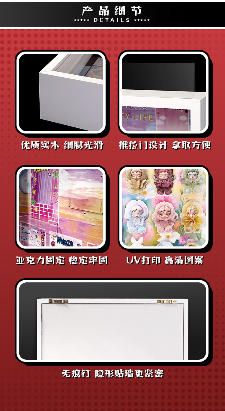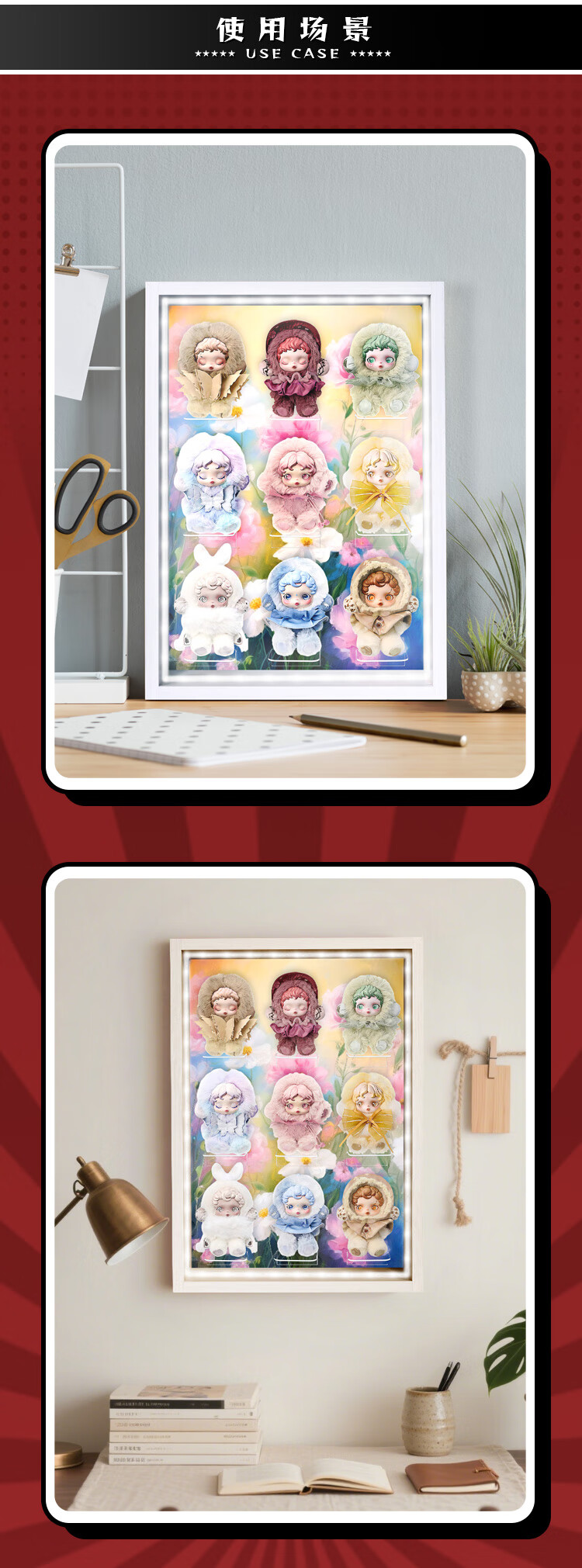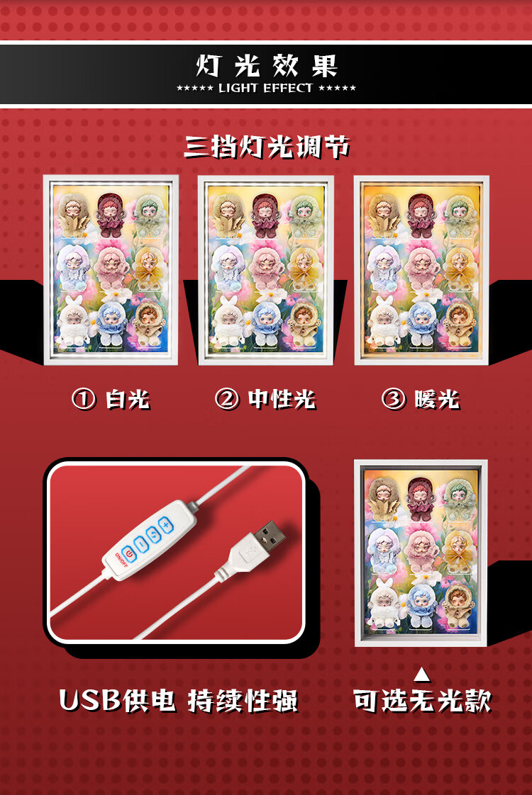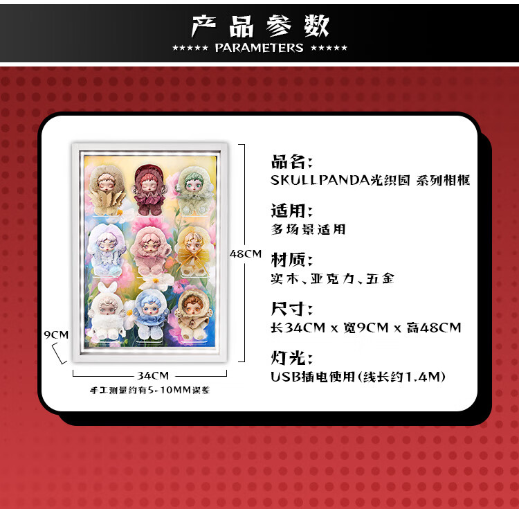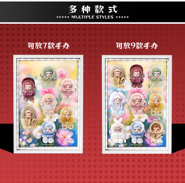 Suitable for Bubble Mart SKULLPANDA Light Weaving Garden Series Plush Doll Pendant SP Blind Box Storage Display Box Light Luxury White - No Light Model 7-Slot Light Weaving Garden Series Display Box 34*48cm (Document Not Included)