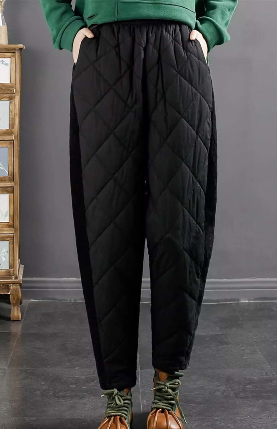 Light down cotton pants for women, new thickened high-end warm and slim outer pants, winter fashion and versatile pants for women, black 2XL ((recommended 10-130Jin Jin is equal to 0.5 kg)