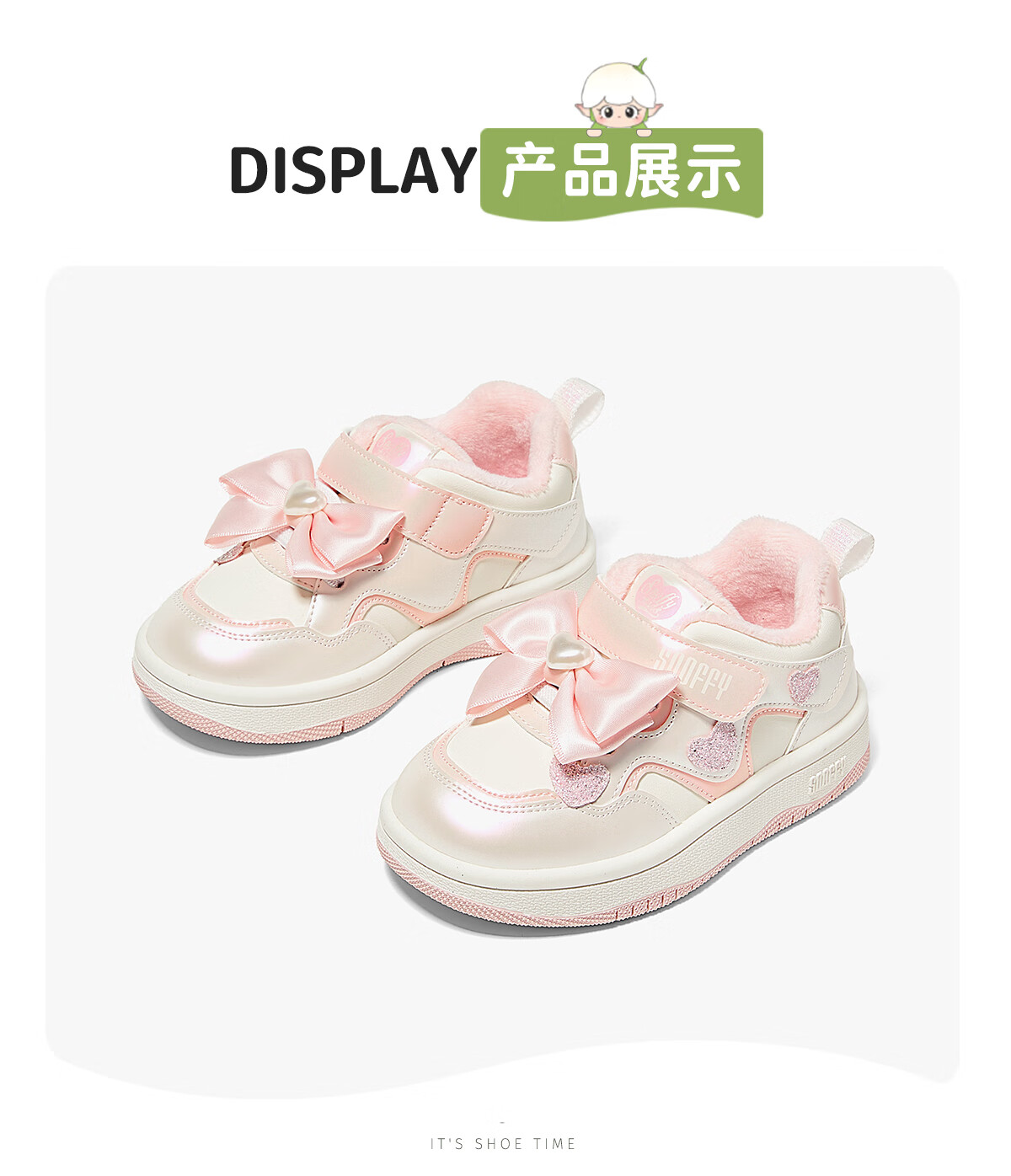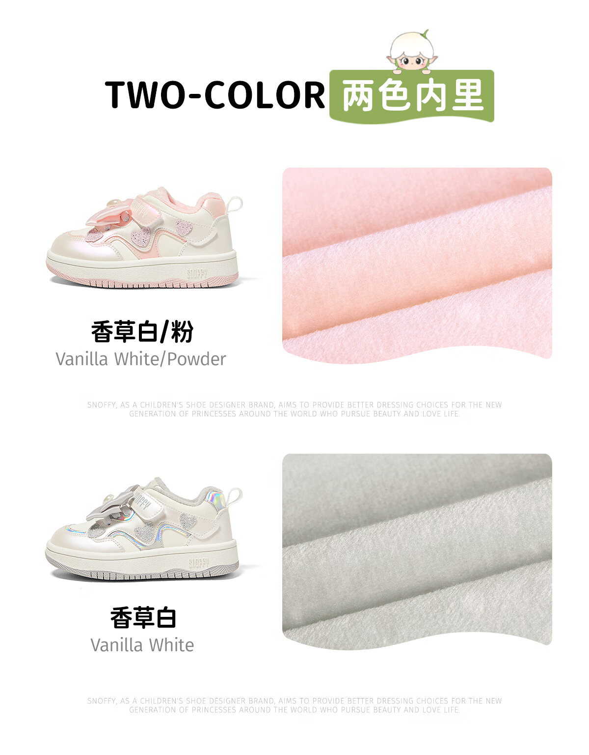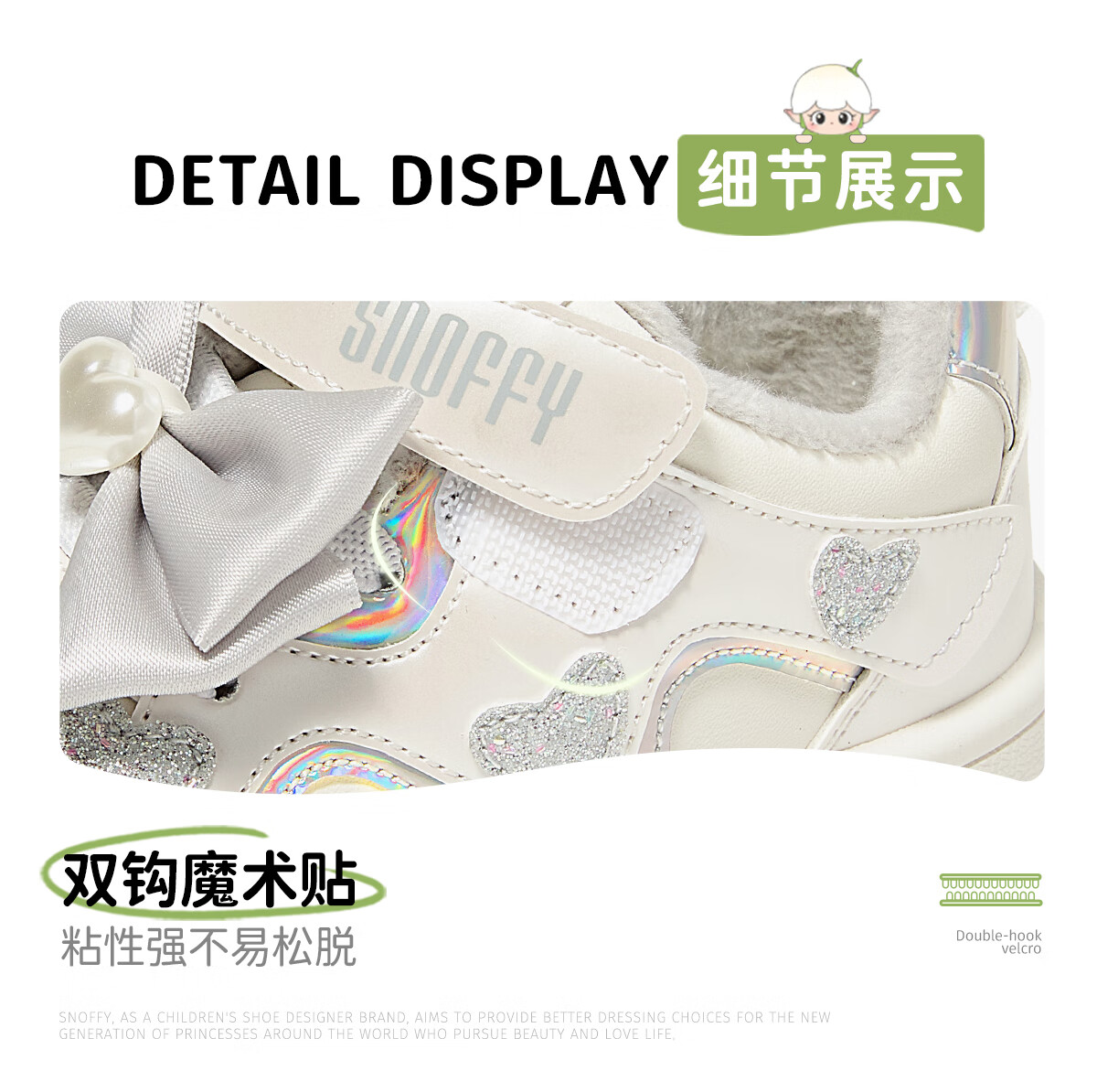 Snafy Girls Toddler Shoes 2025 Winter New Little Girls Sports Shoes Plus Velvet Warm Baby Casual Shoes Vanilla White 23 Recommended Foot Length 14.3cm