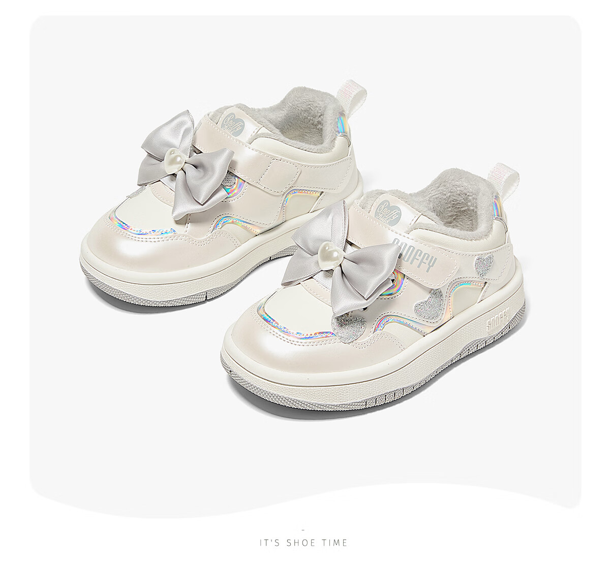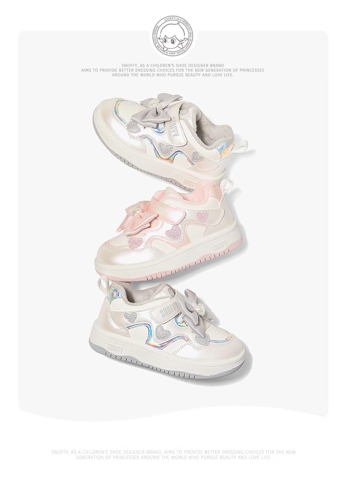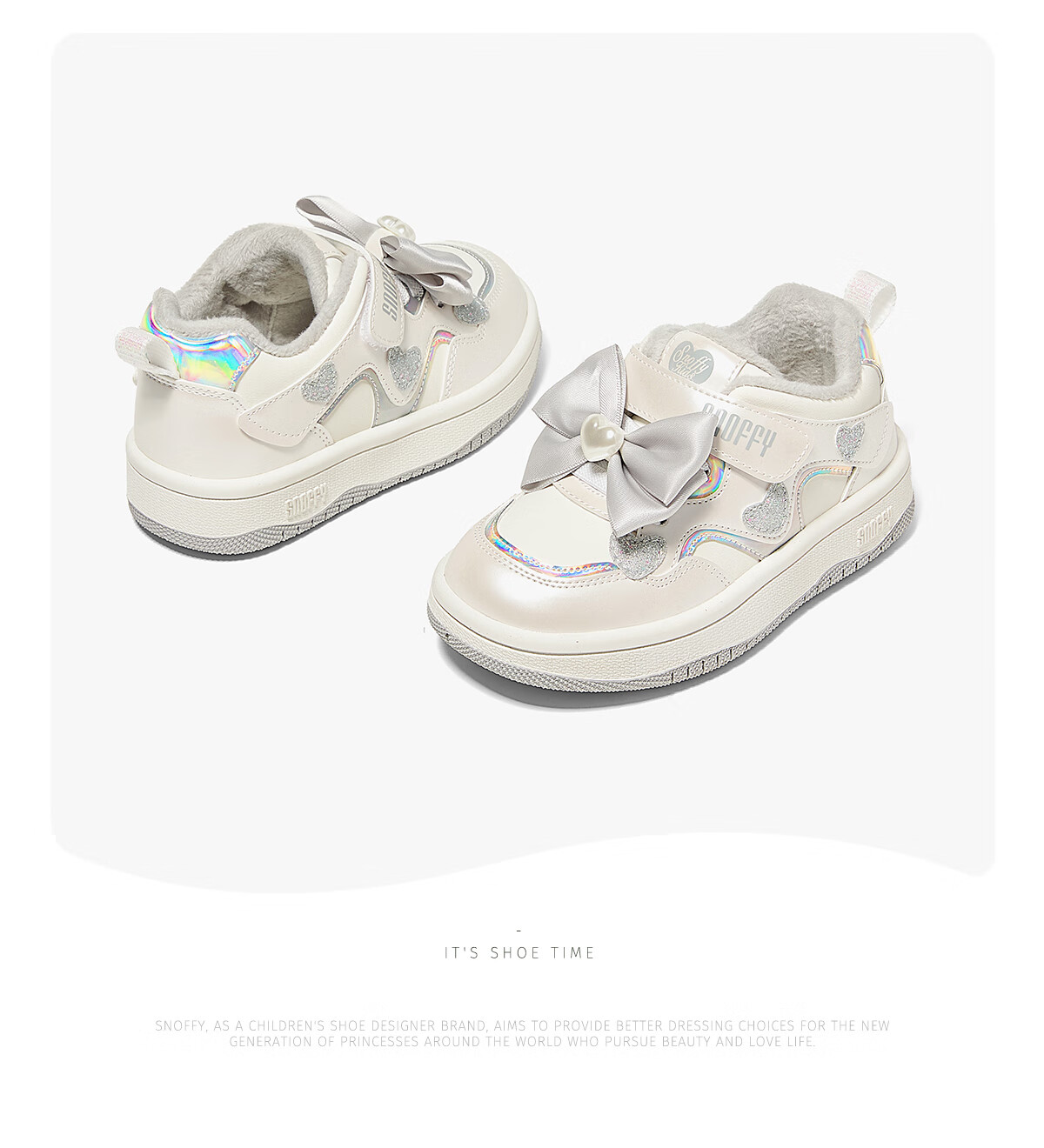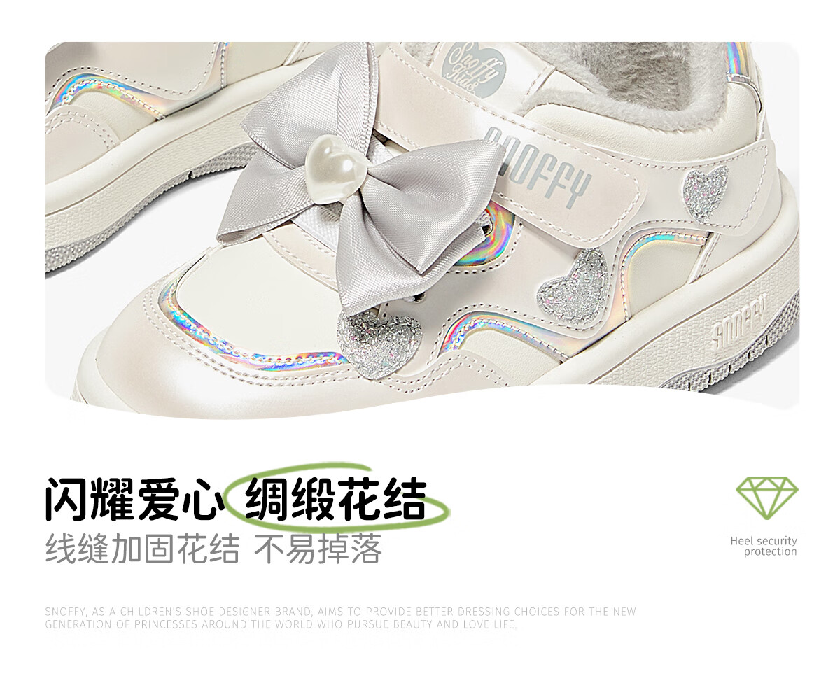 Snafy Girls Toddler Shoes 2025 Winter New Little Girls Sports Shoes Plus Velvet Warm Baby Casual Shoes Vanilla White 23 Recommended Foot Length 14.3cm