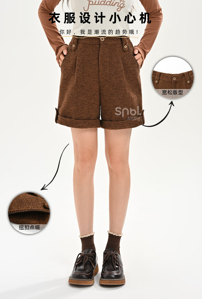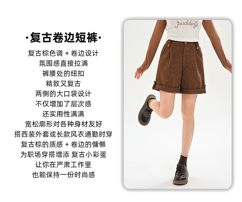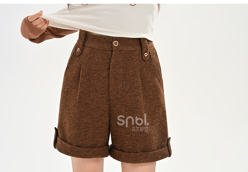 Mori Girl Tribe Retro Versatile High Waist Curled Shorts Women's 2025 New Autumn and Winter Loose Slim Straight Casual Pants Brown Shorts S Model Code