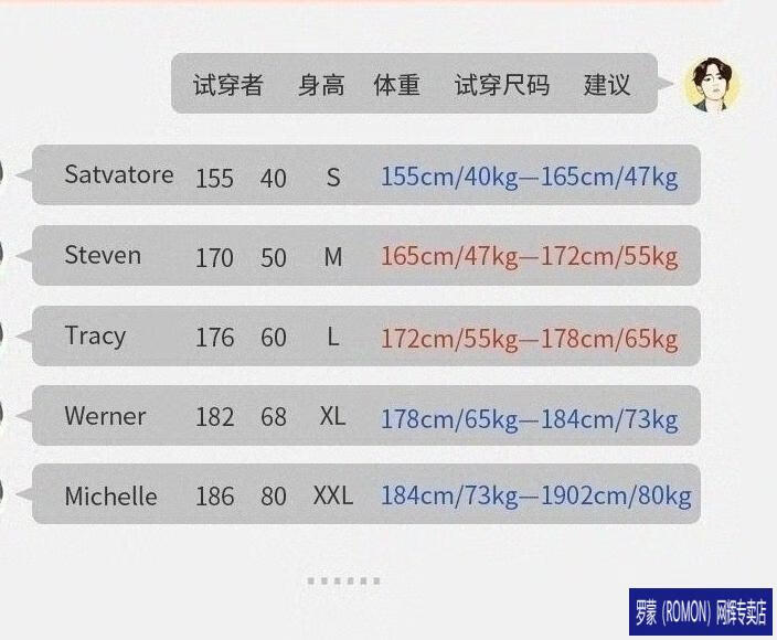 China (cm) 160-165/84-86 165-170 / 88-90 167-172 / 92-96 168-173 / 98-102 170-176 / 106-110