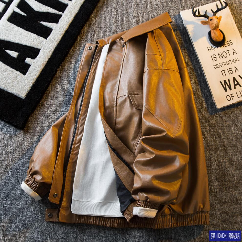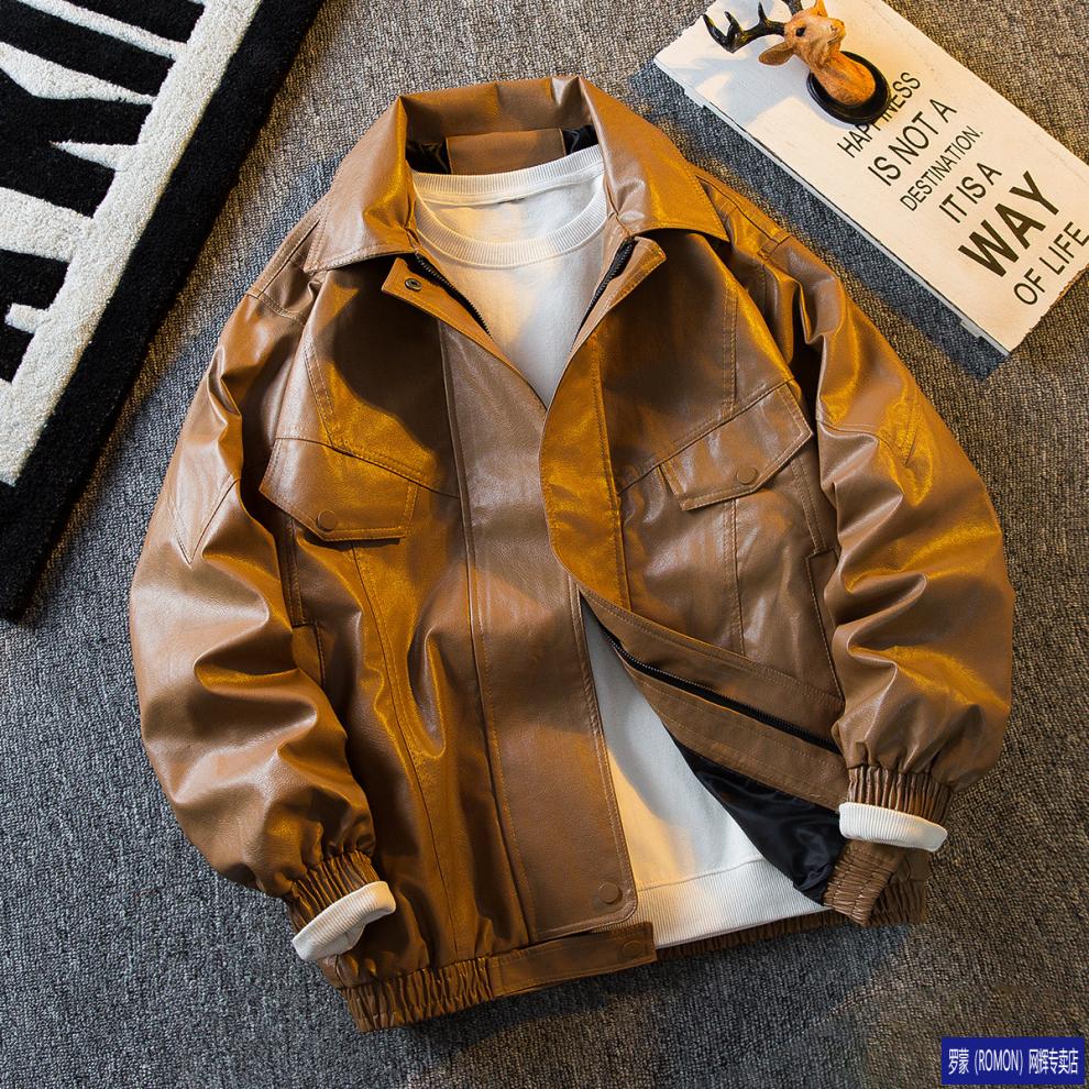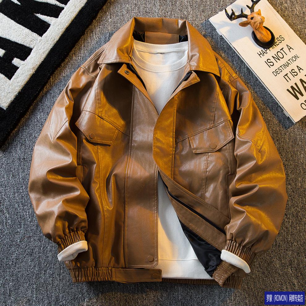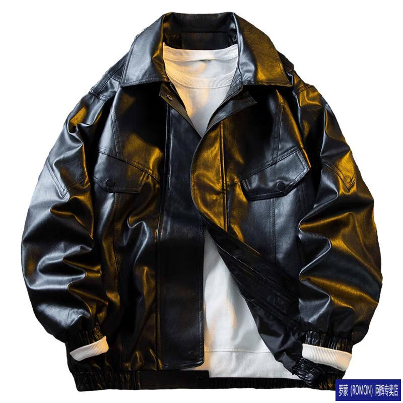 ROMON men's American retro pu leather jacket men's 2026 new style handsome spring and autumn trendy brand work jacket black higher than peer quality S