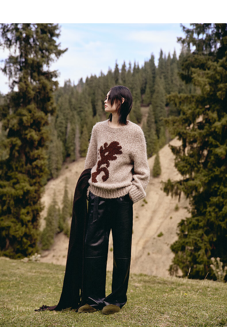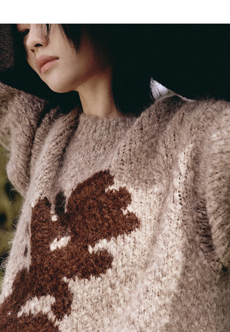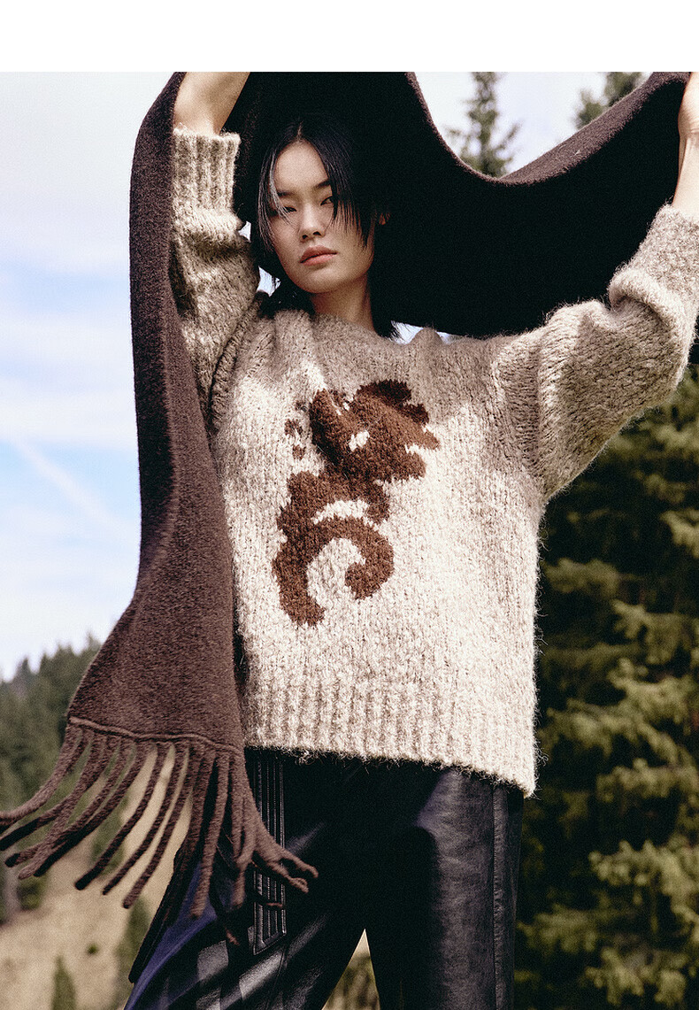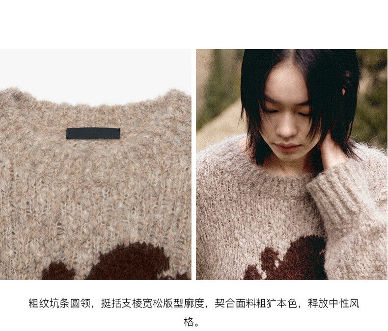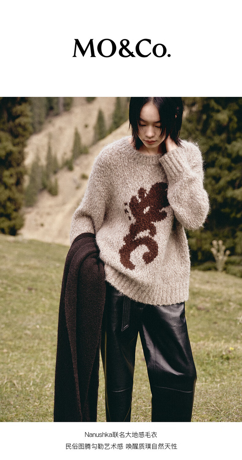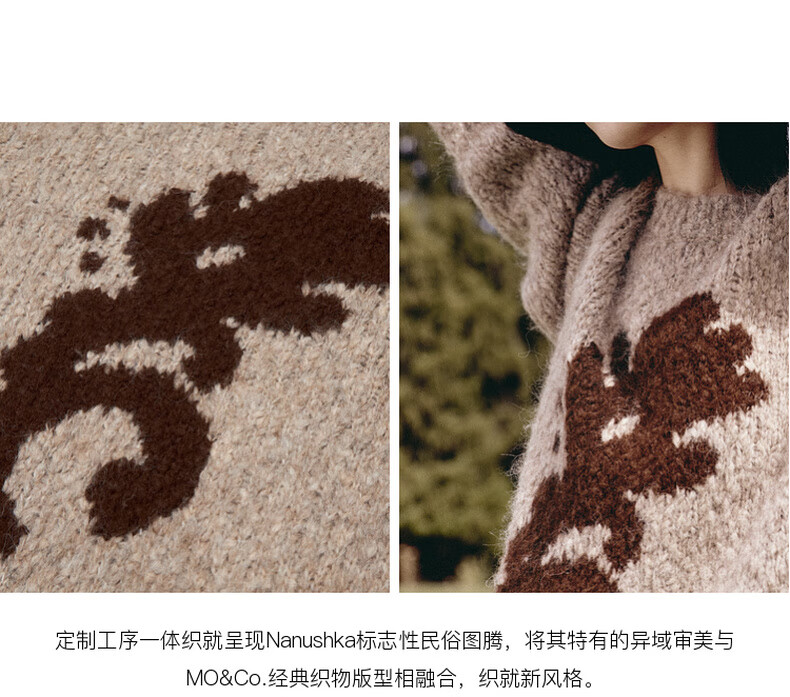 MO&Co. Nanushka designer joint sweater 2025 winter new alpaca wool thick MBE4SWT003 light floral camel XS /155