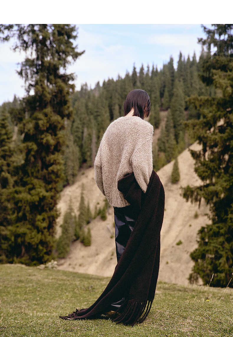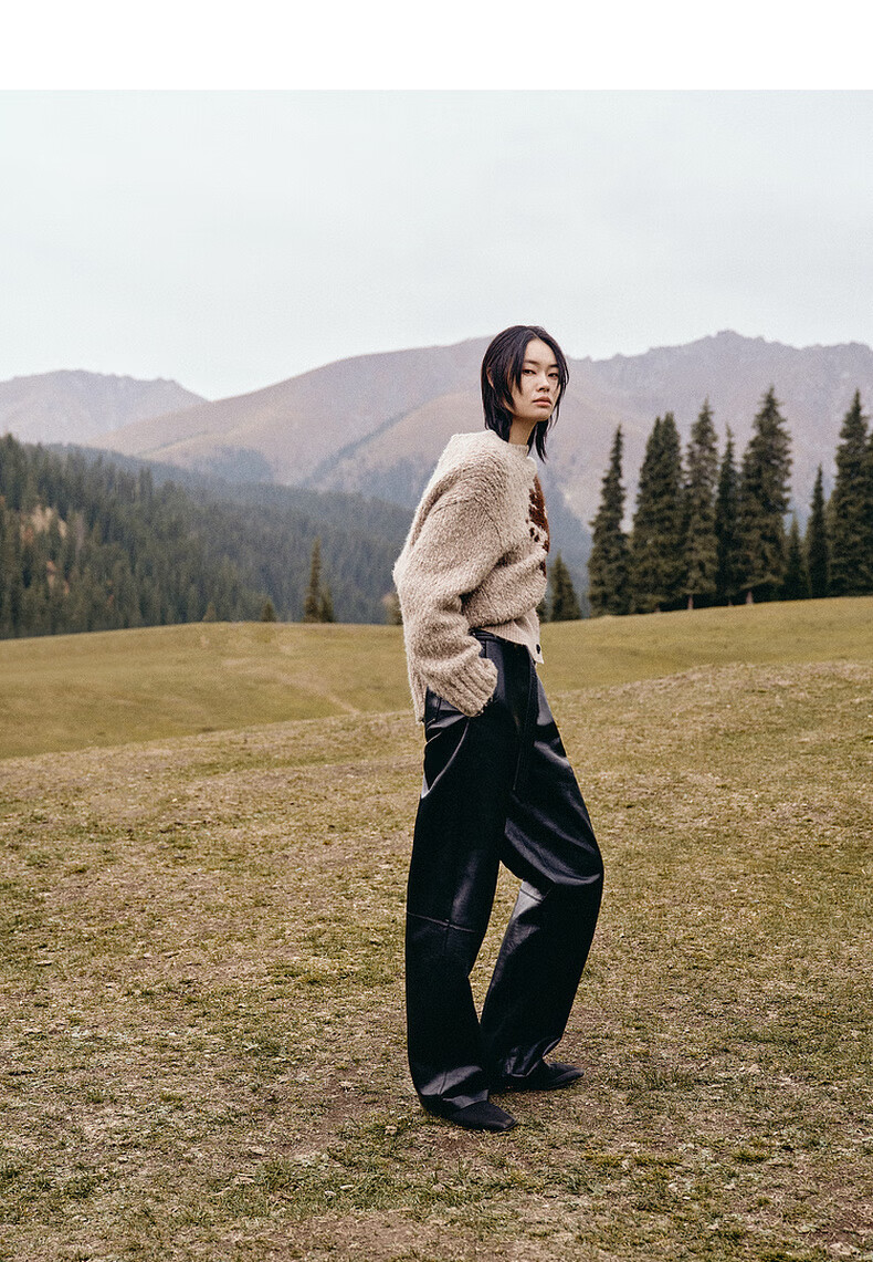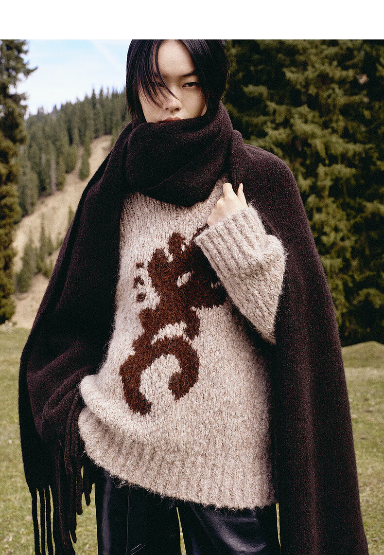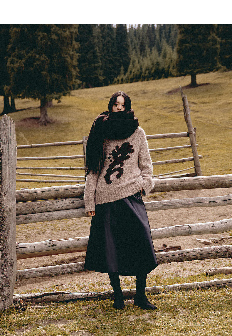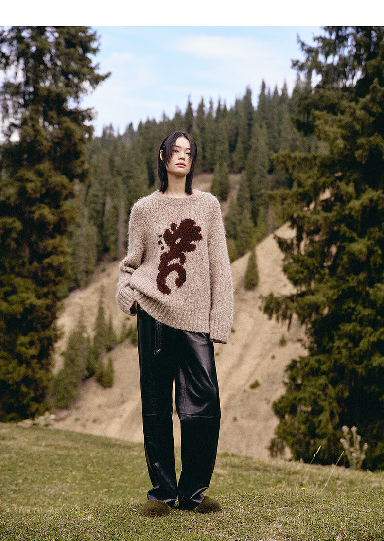 MO&Co. Nanushka designer joint sweater 2025 winter new alpaca wool thick MBE4SWT003 light floral camel XS /155