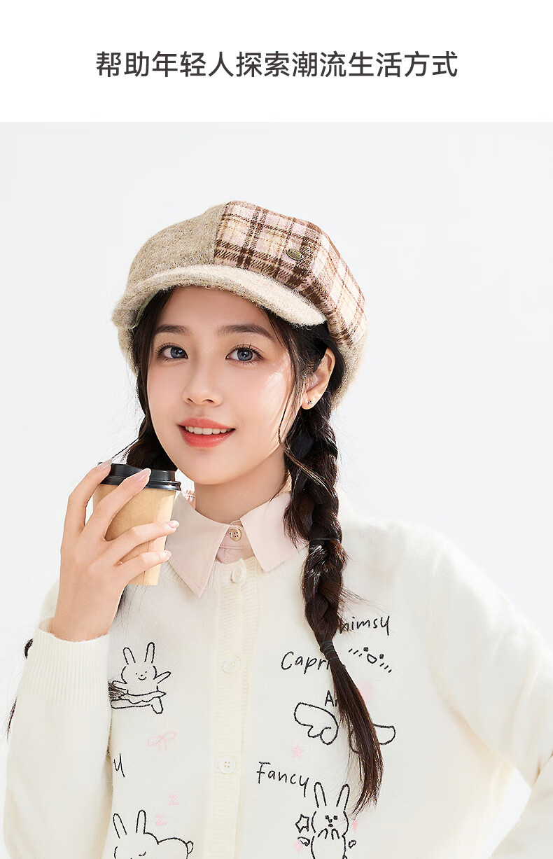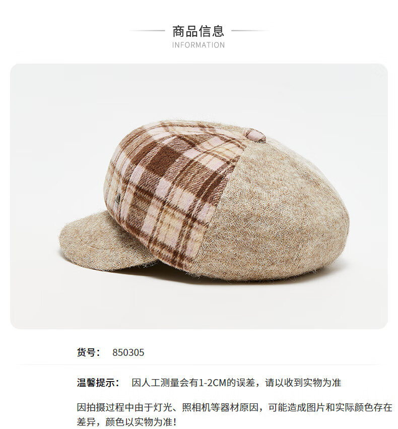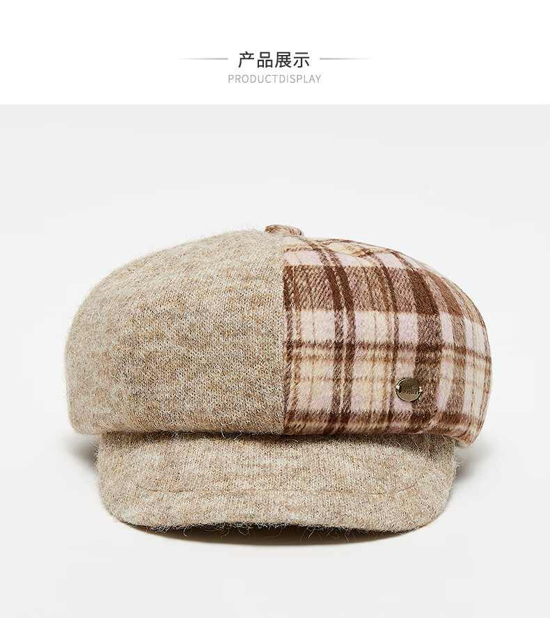 SANFU color-blocked knitted octagonal hat, lady's literary and artistic winter atmosphere clothing accessories hat 850305 pink, one size fits all