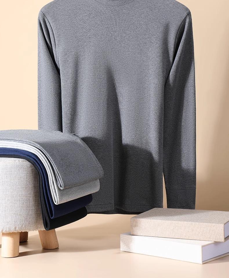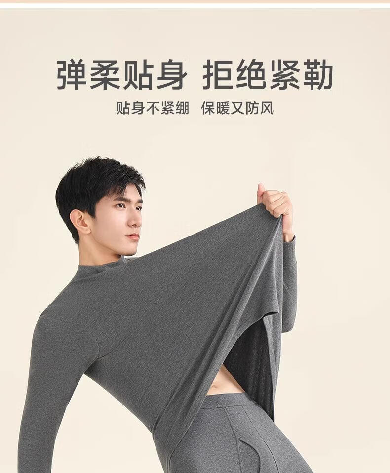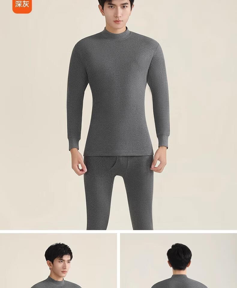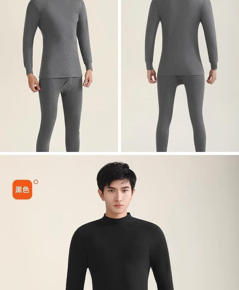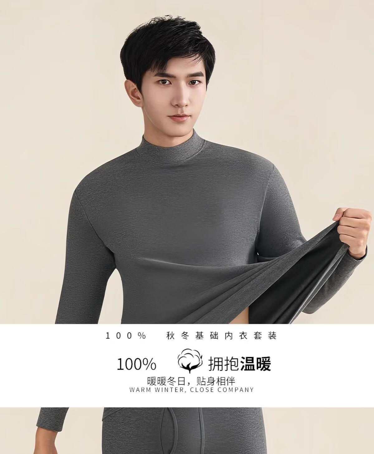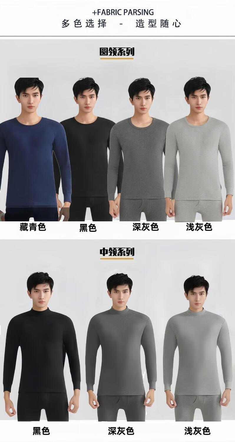 Hongdou Official Store Buy One Get One Free Men's Thermal Underwear Men's Suit Plus Velvet Thickened Autumn Clothes for Middle-aged and Old People Low Collar Velvet Suit Dark Gray Hair 1 Set 2XL (Suitable for 130-145 Jin Jin equals 0.5 kg)