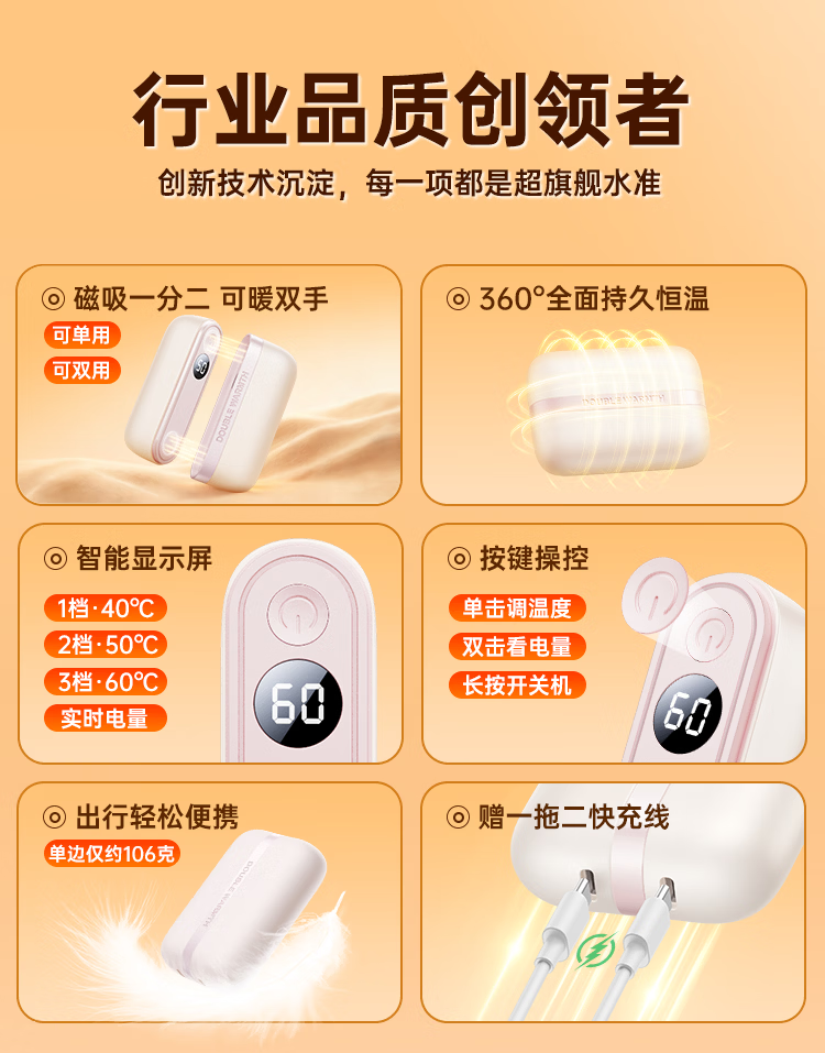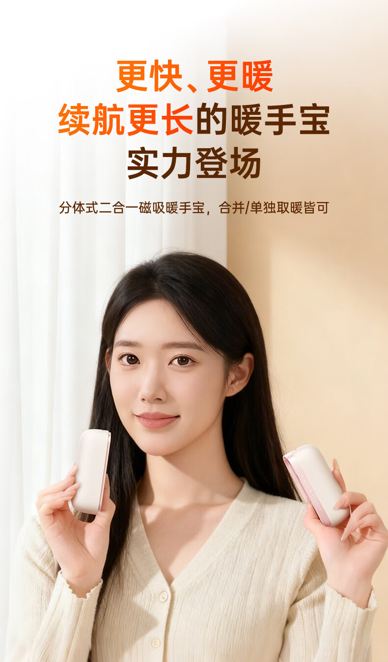 Minso Premium Hand Warmer Magnetic Separate 2-in-1 3C certified rechargeable long-lasting graphene hand warmer e-sports csgo new heating gift for girls birthday gift for male students Sakura Powder Pro 6000mAh delivered to your door today/tomorrow丨Suitable for both gifts and personal use