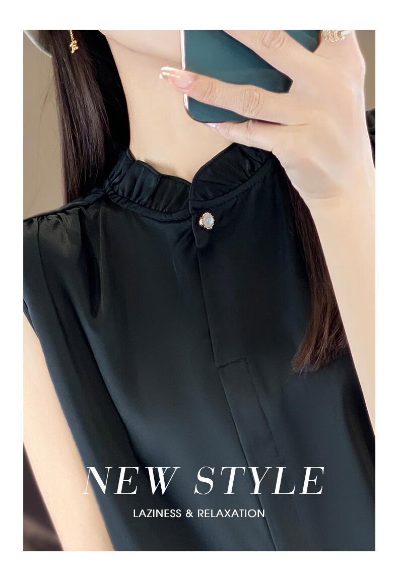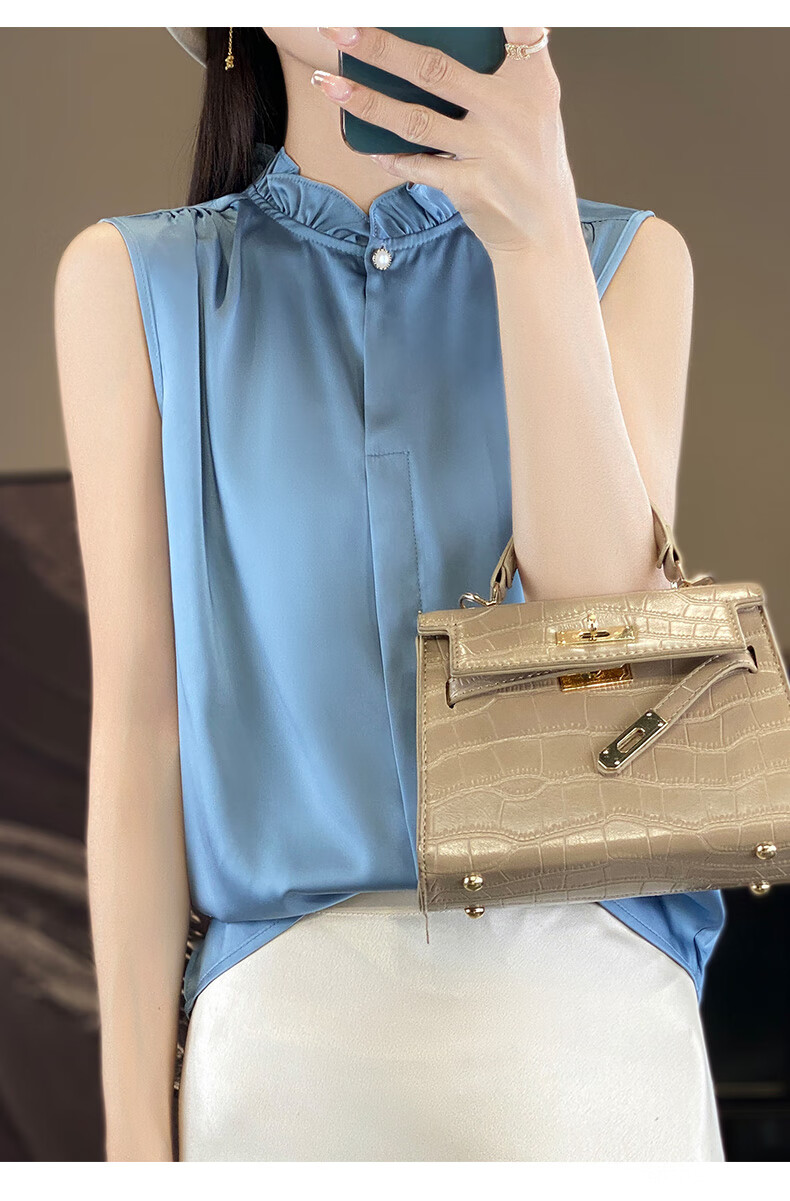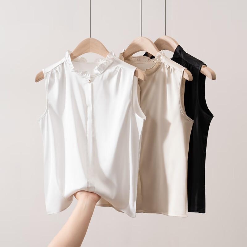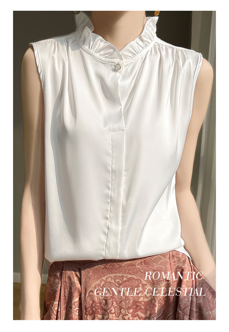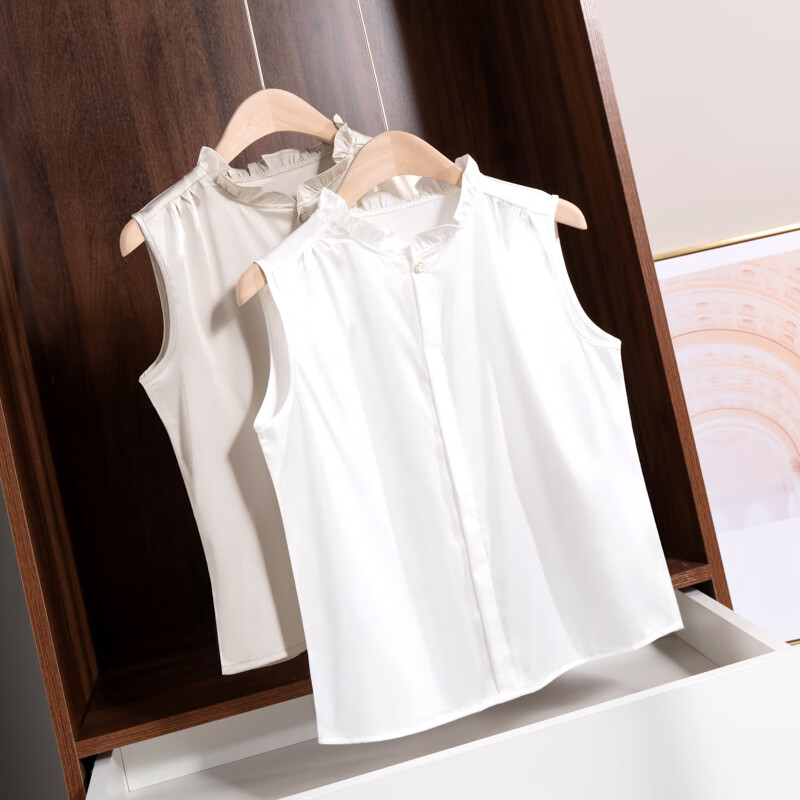 Light luxury and high-end smooth satin shirt for women, sleeveless inner layer with suit vest top, lace for age reduction, white XL 110-120Jin Jin is equal to 0.5 kg