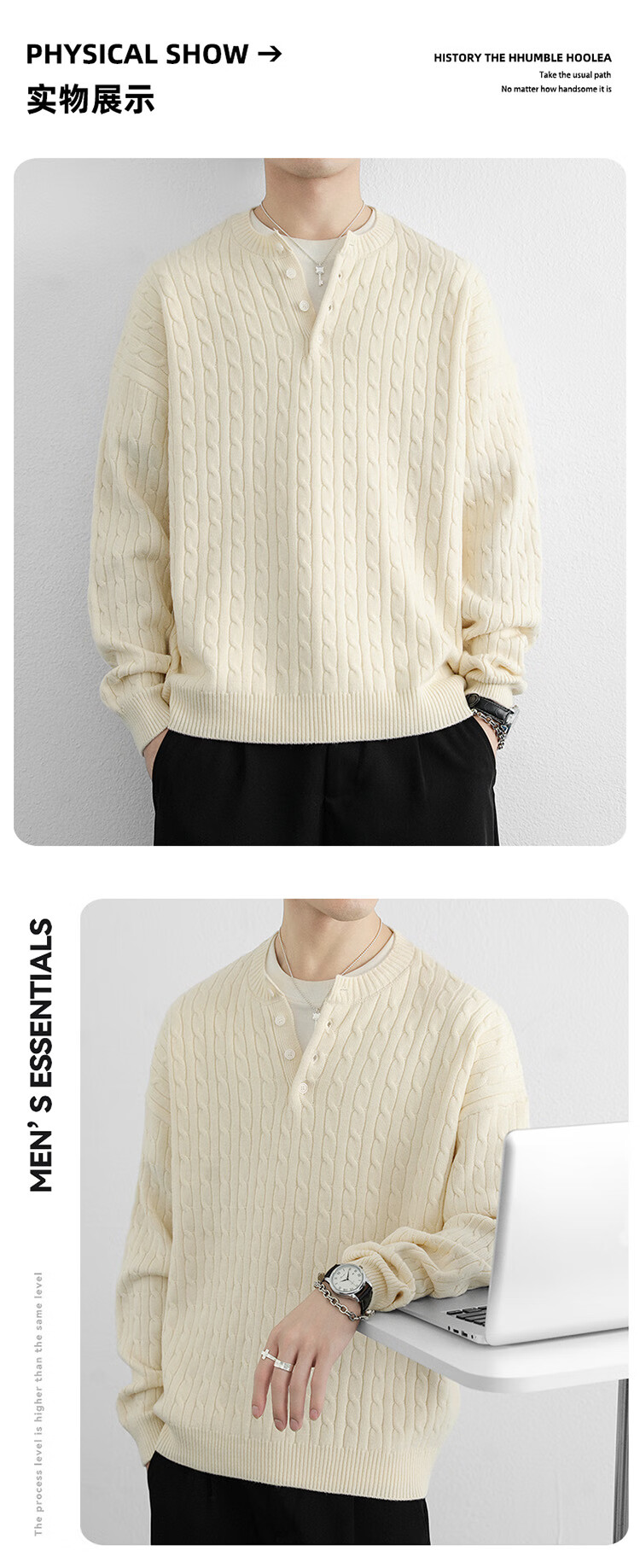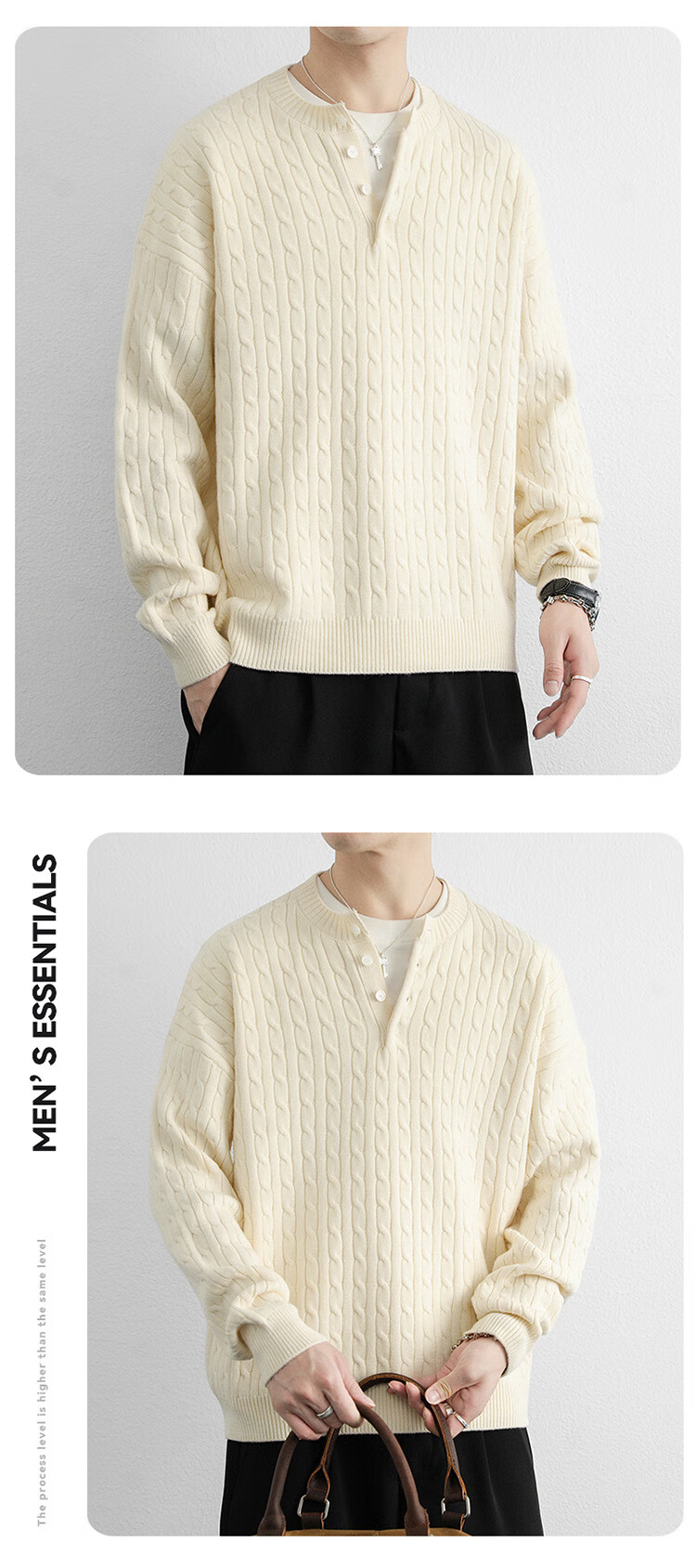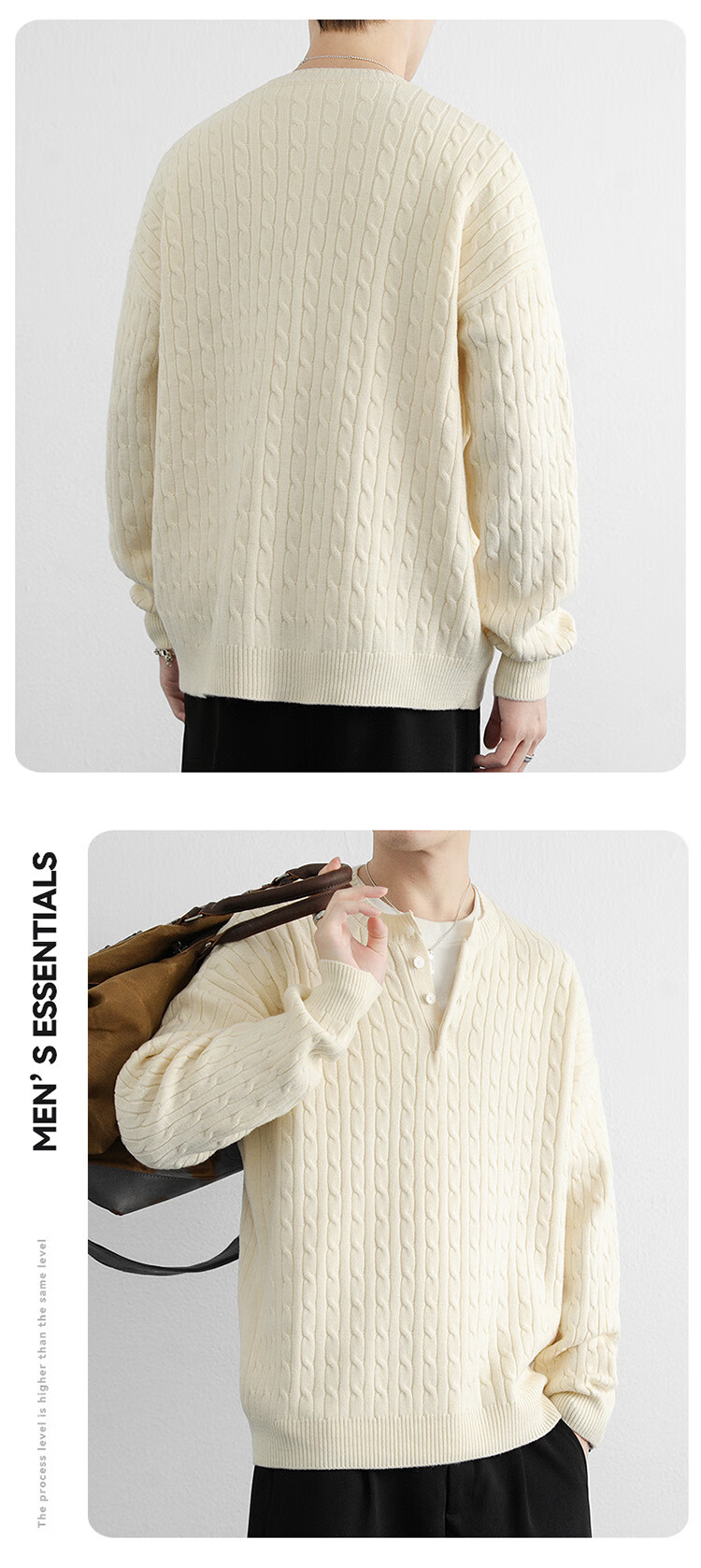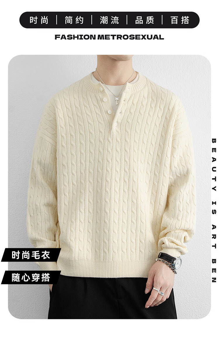 Semir Semir solid color round neck buckle young men's sweater long-sleeved pullover can be worn outside the sweater autumn and winter style to keep warm 2565 rice white 2XL 135-150Jin Jin is equal to about 0.5 kg