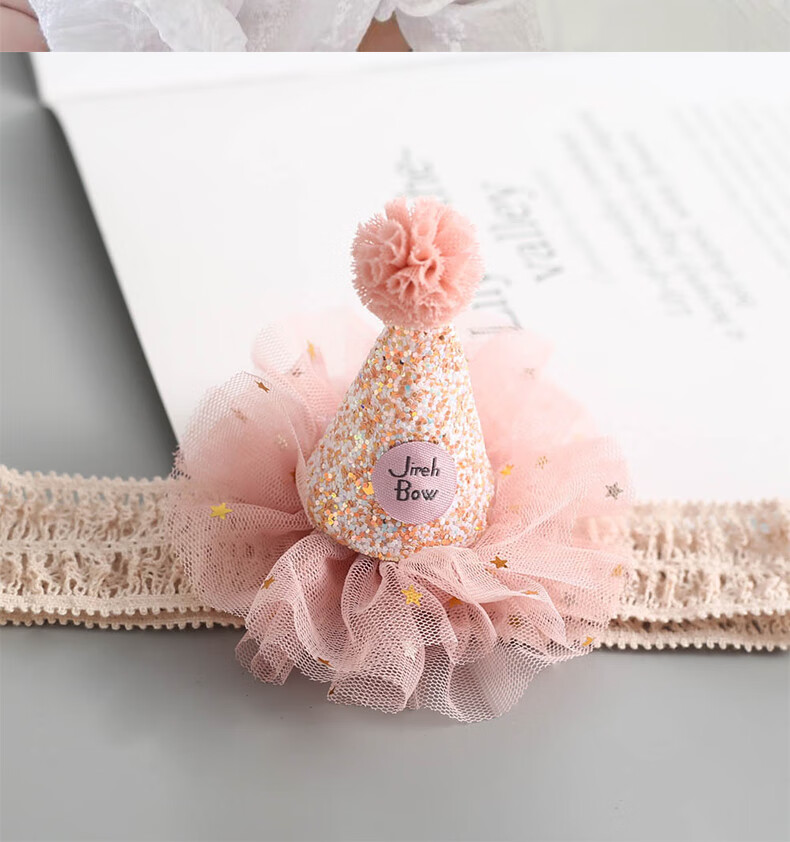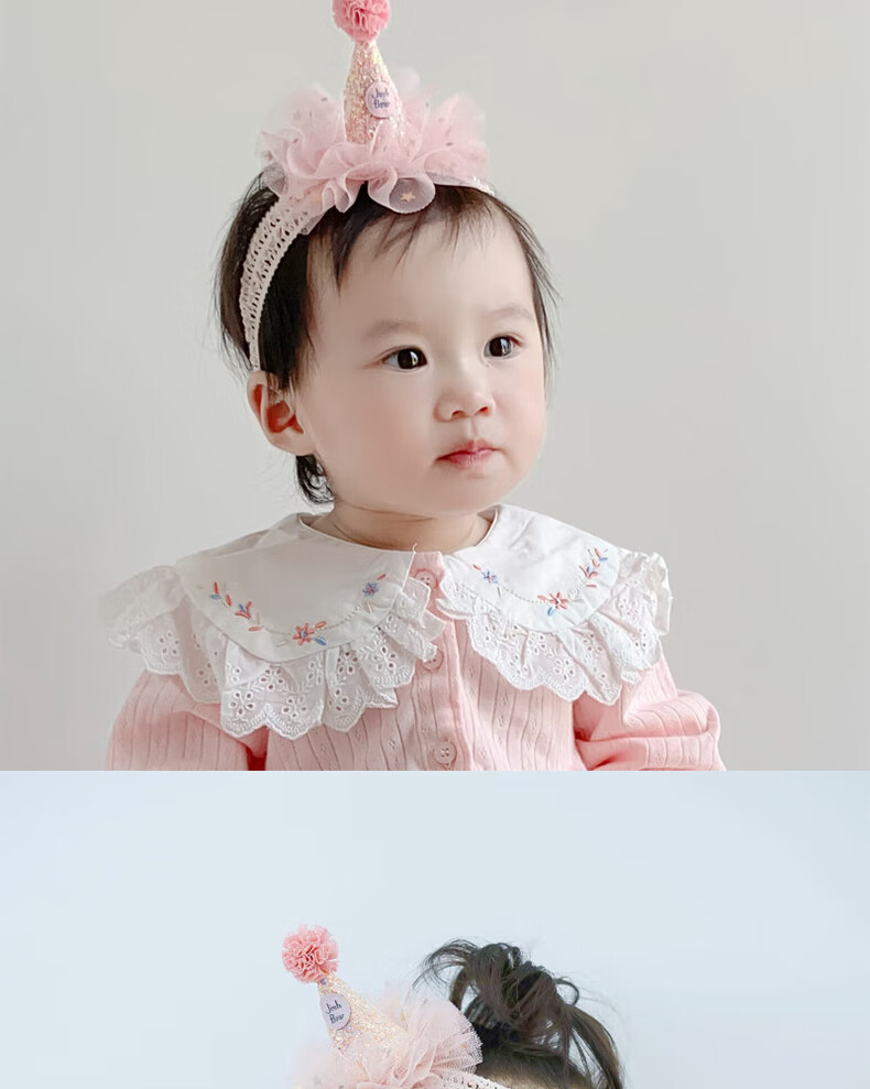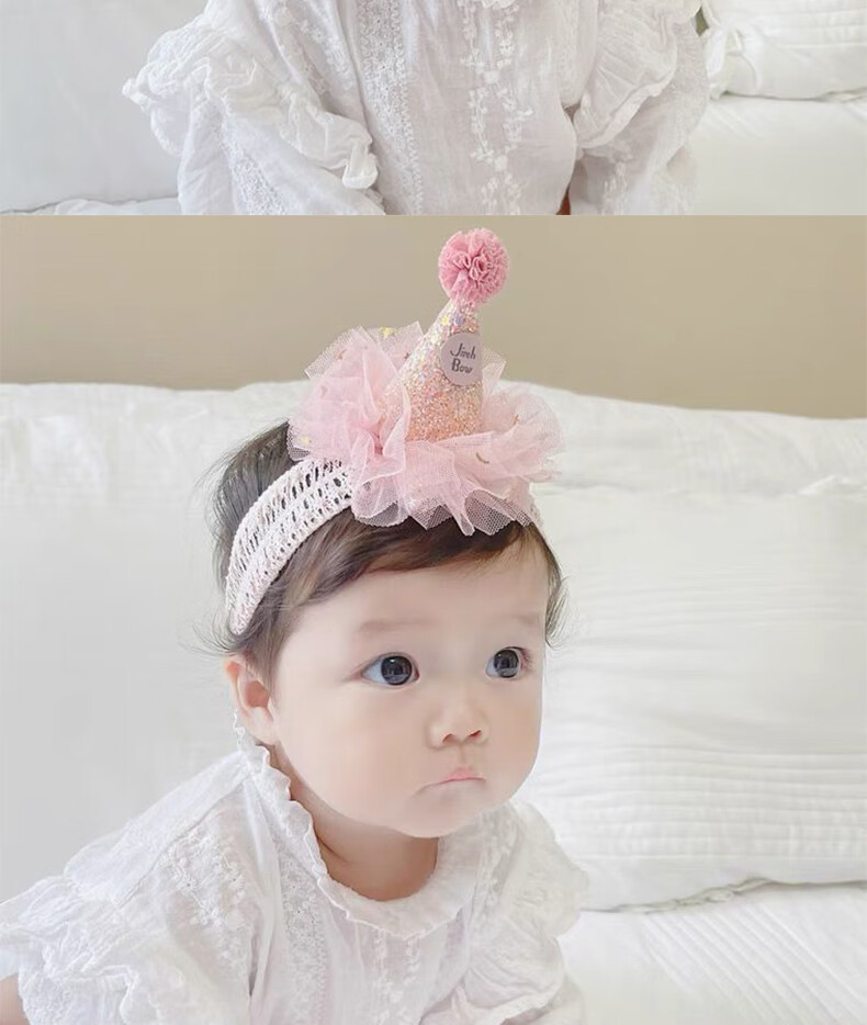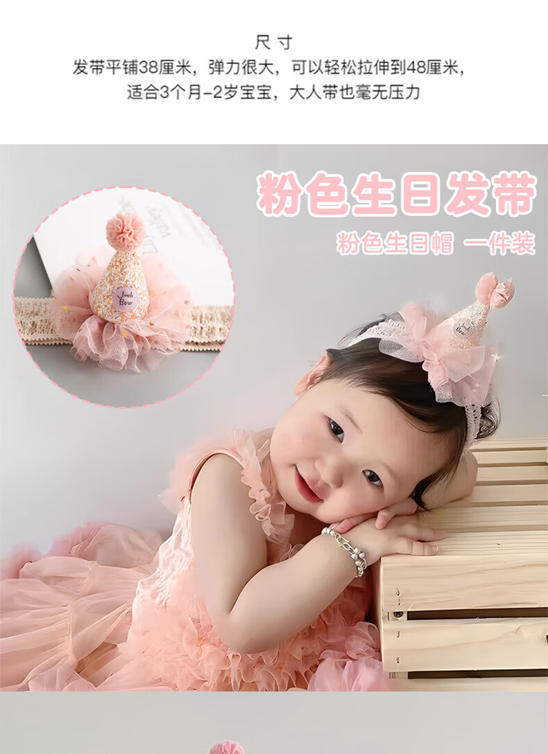 He Jiagong Korean version of cute pink birthday hat headband for infants and newborns simple 100-day birthday banquet party headwear pink birthday hat headband style infant style 1 pack