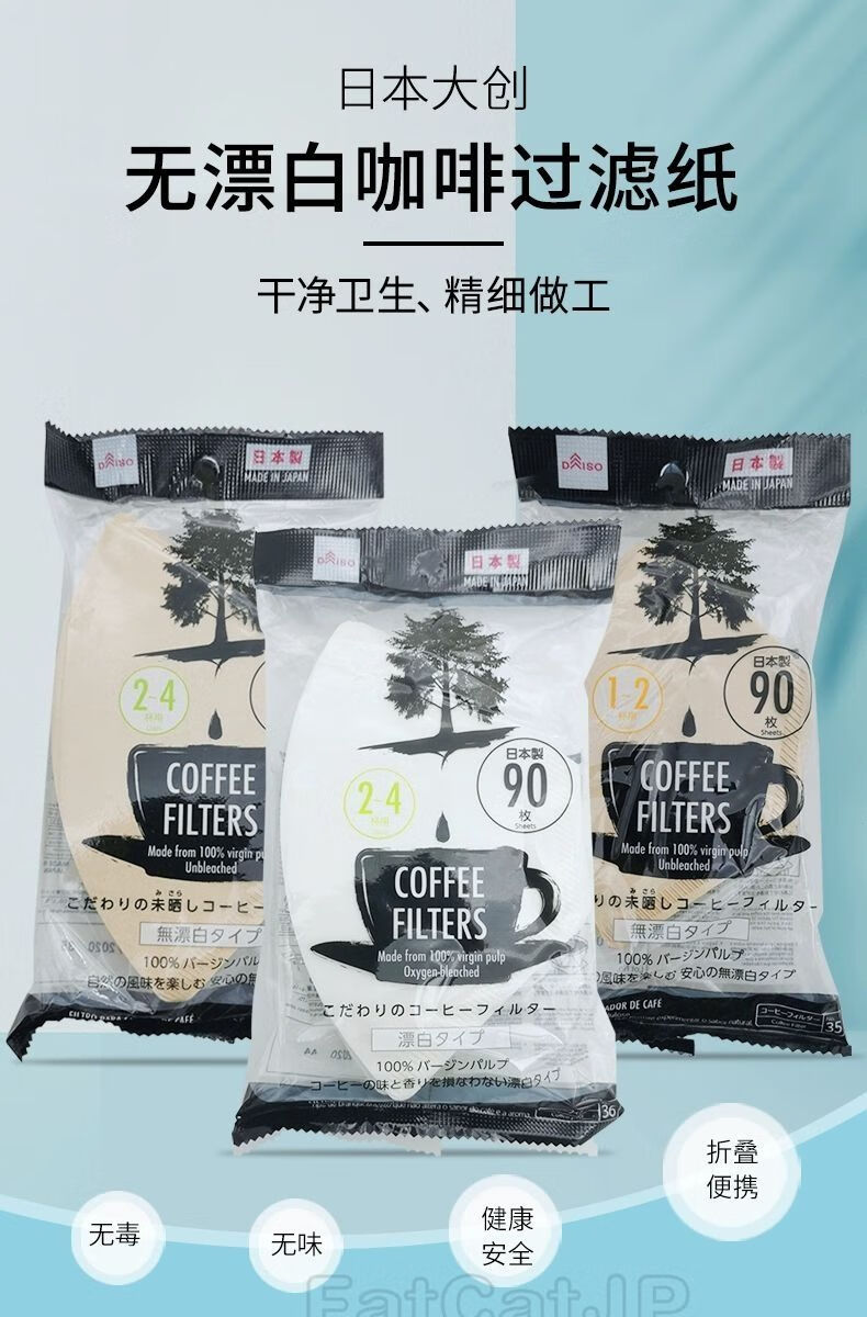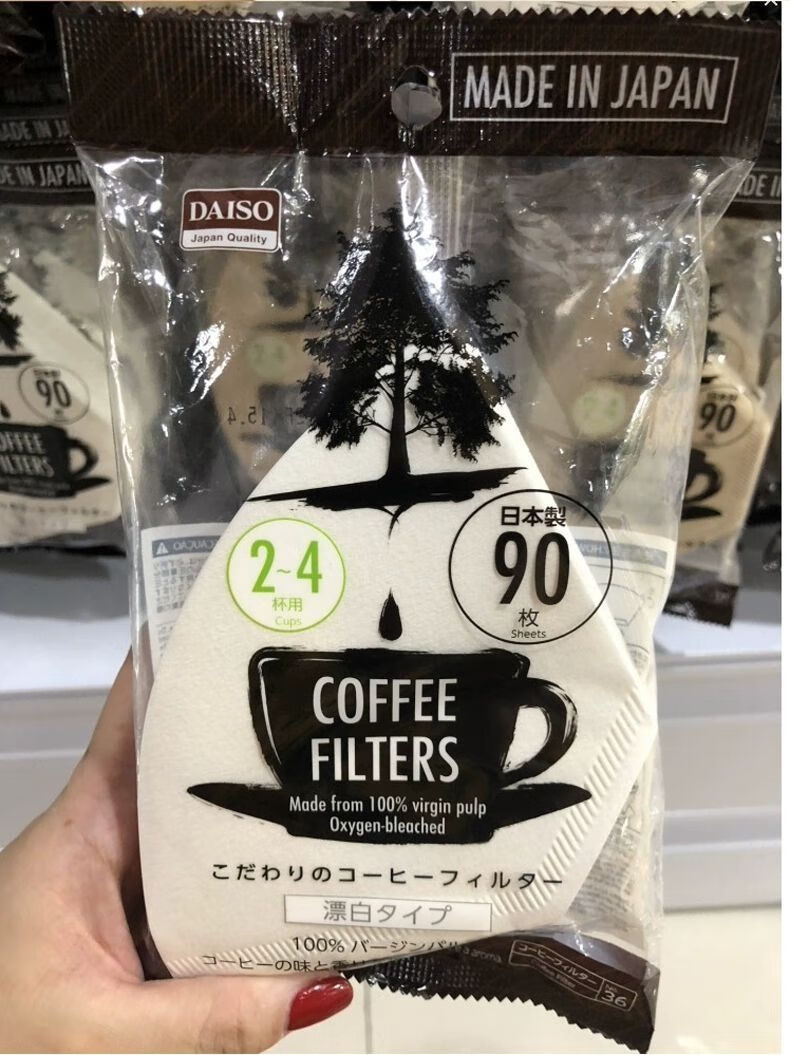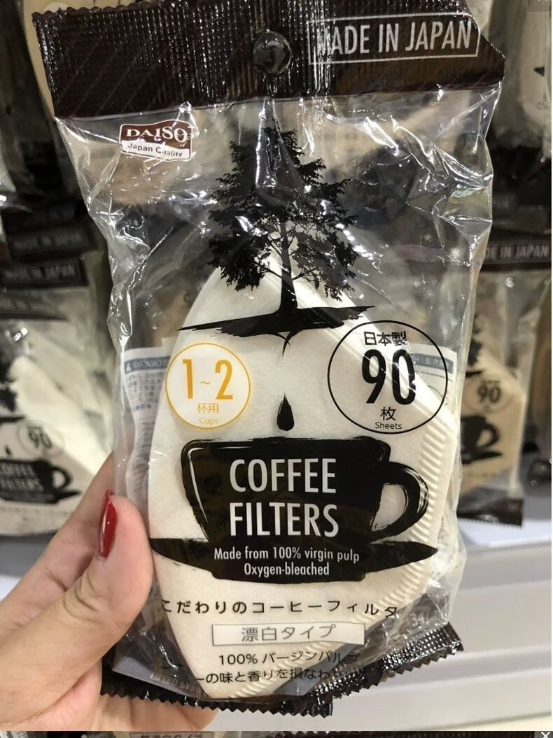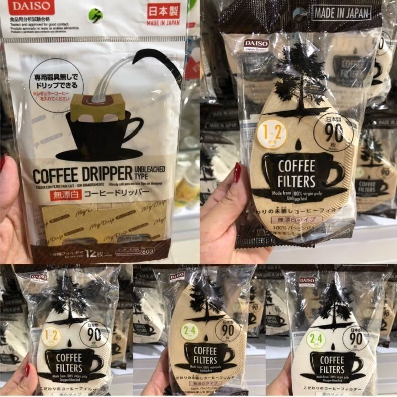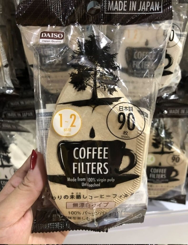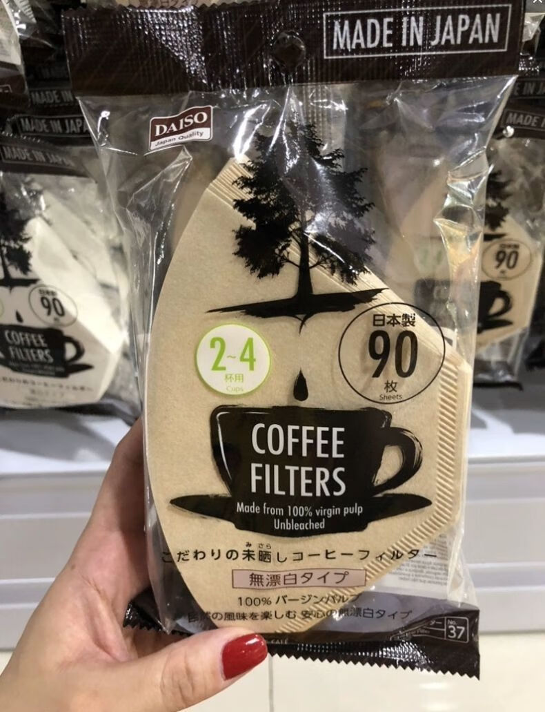 Daiso (daiso) Japan Daiso DAISO unbleached coffee filter paper coffee paper 90 sheets of coffee filter wood color coffee filter paper for 2-4 cups (no bleaching) (37#)
