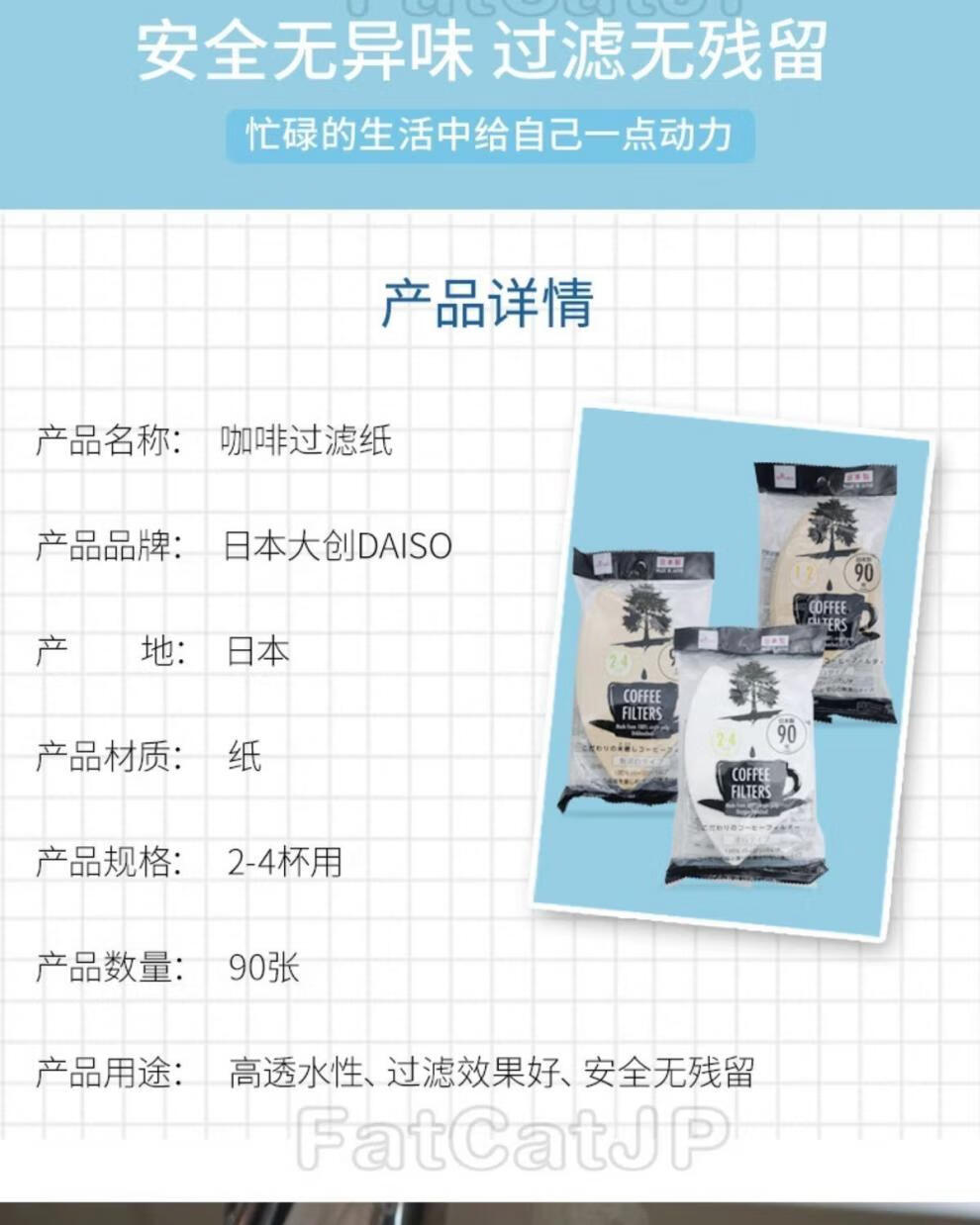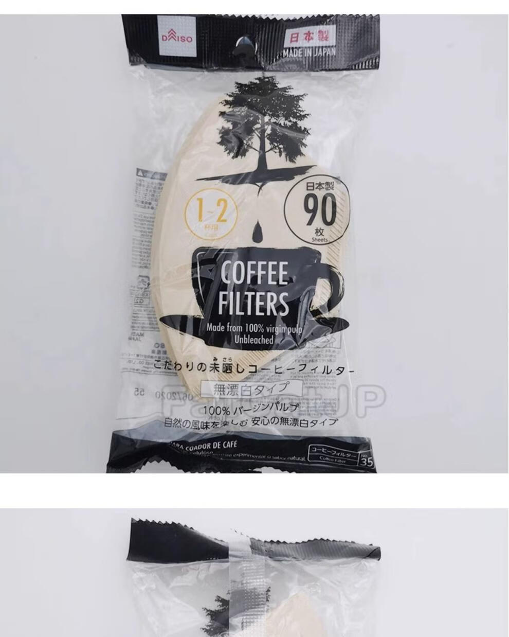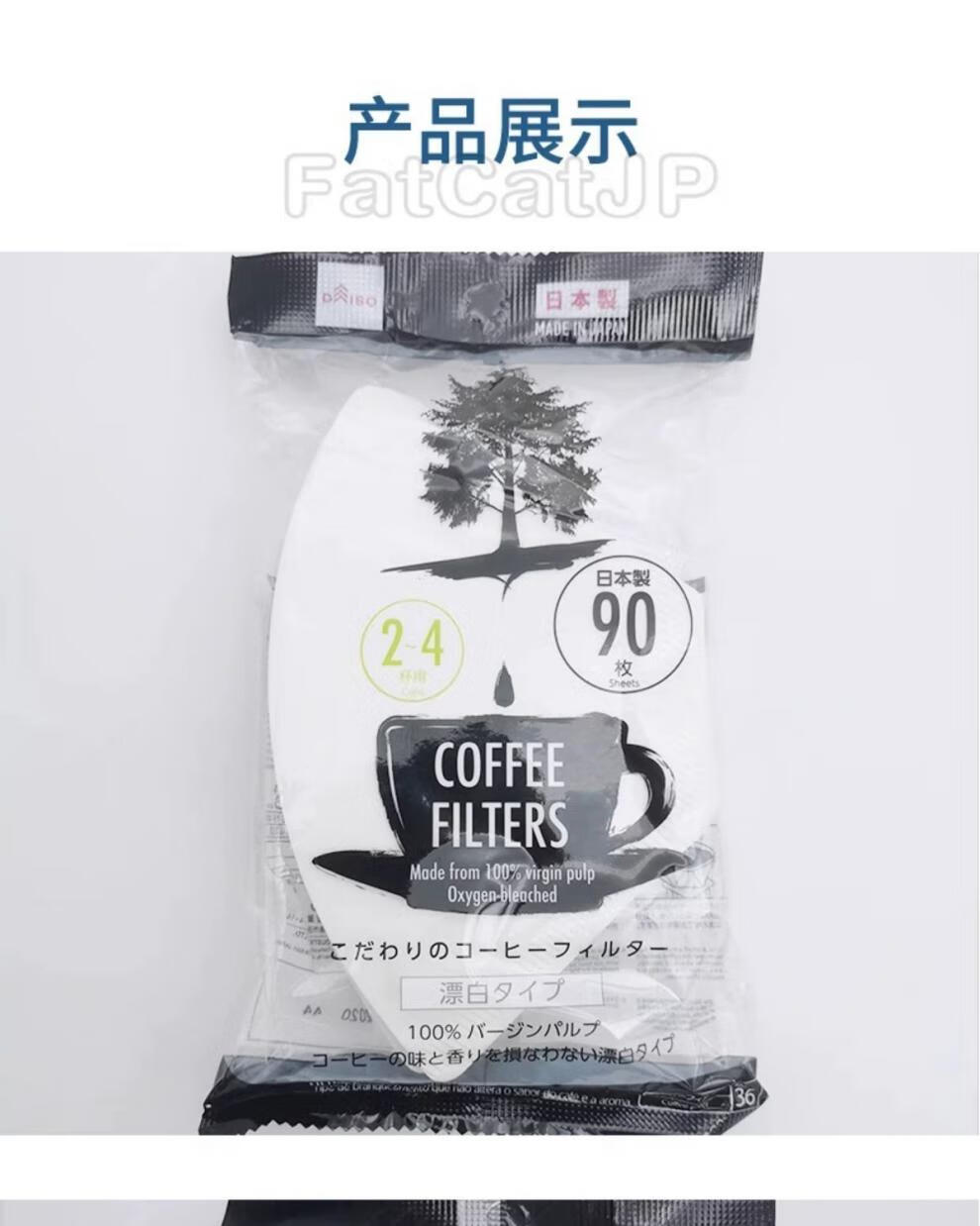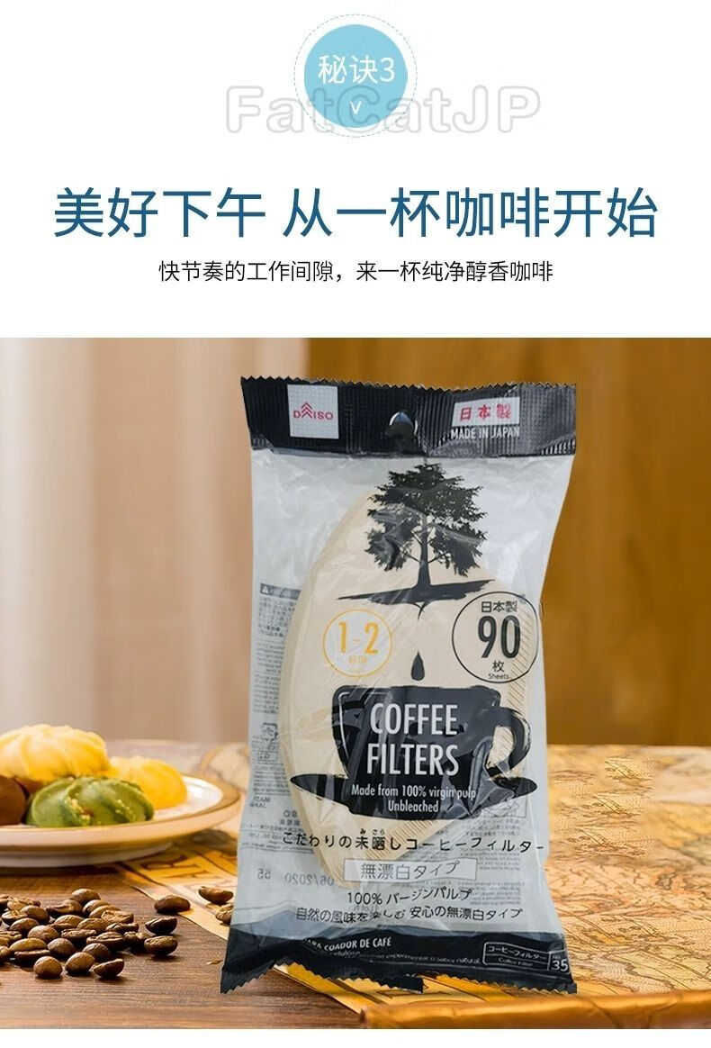 Daiso (daiso) Japan Daiso DAISO unbleached coffee filter paper coffee paper 90 sheets of coffee filter wood color coffee filter paper for 2-4 cups (no bleaching) (37#)