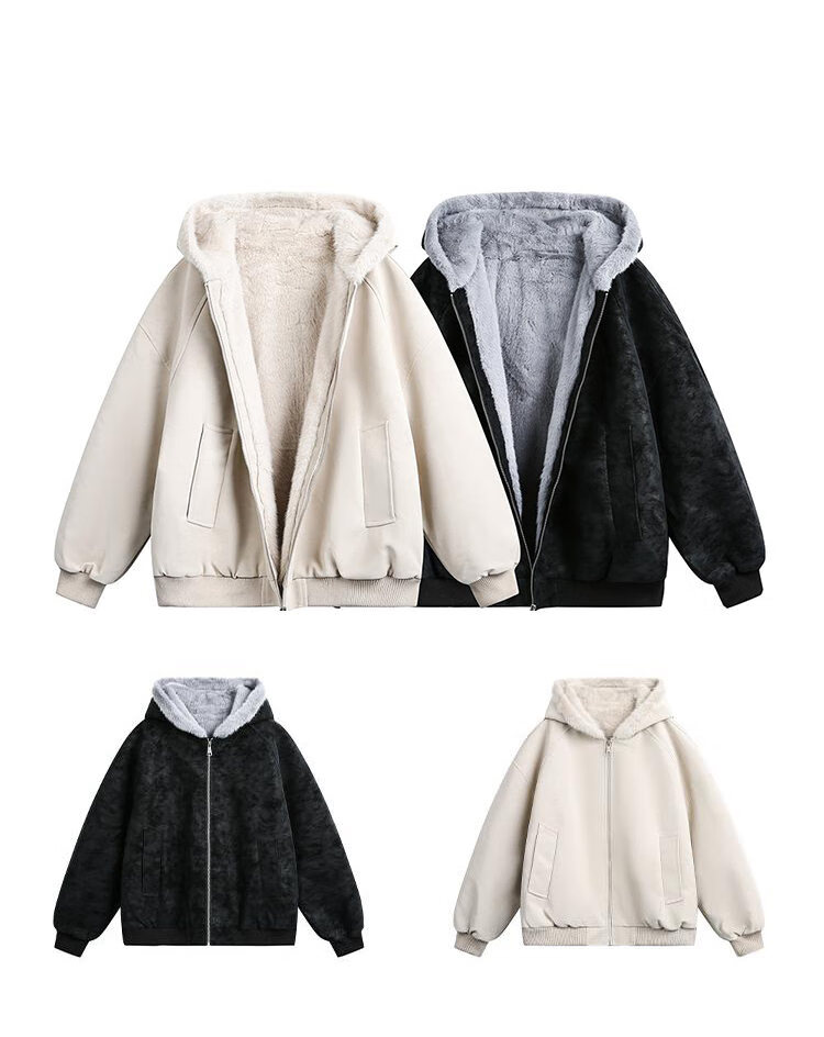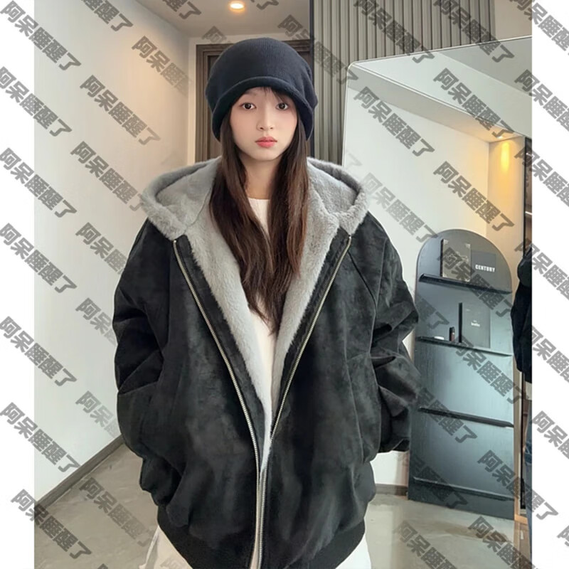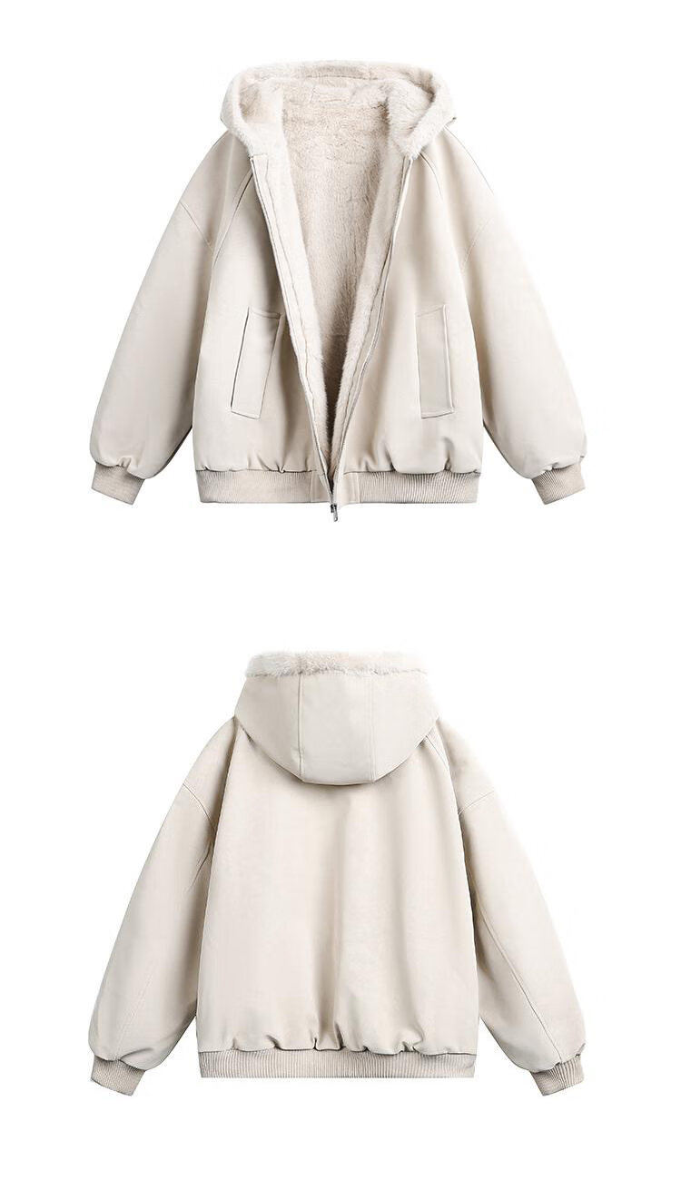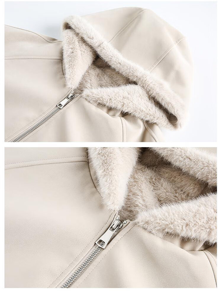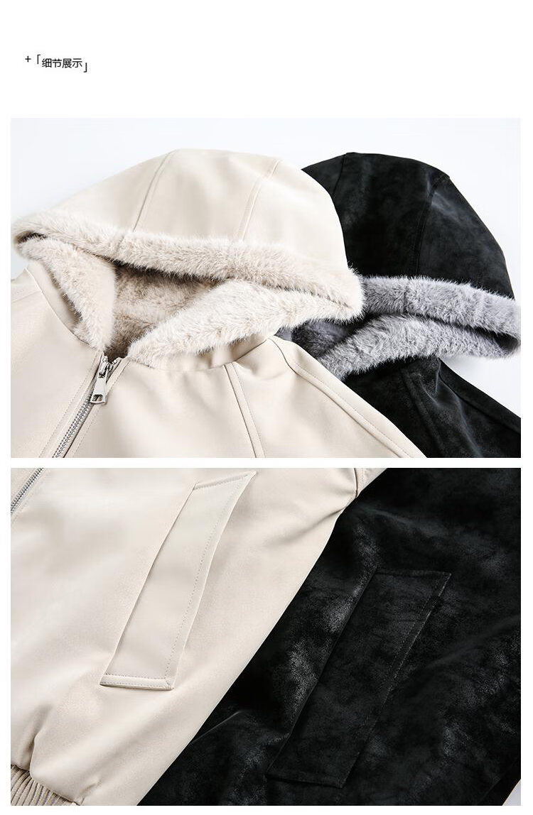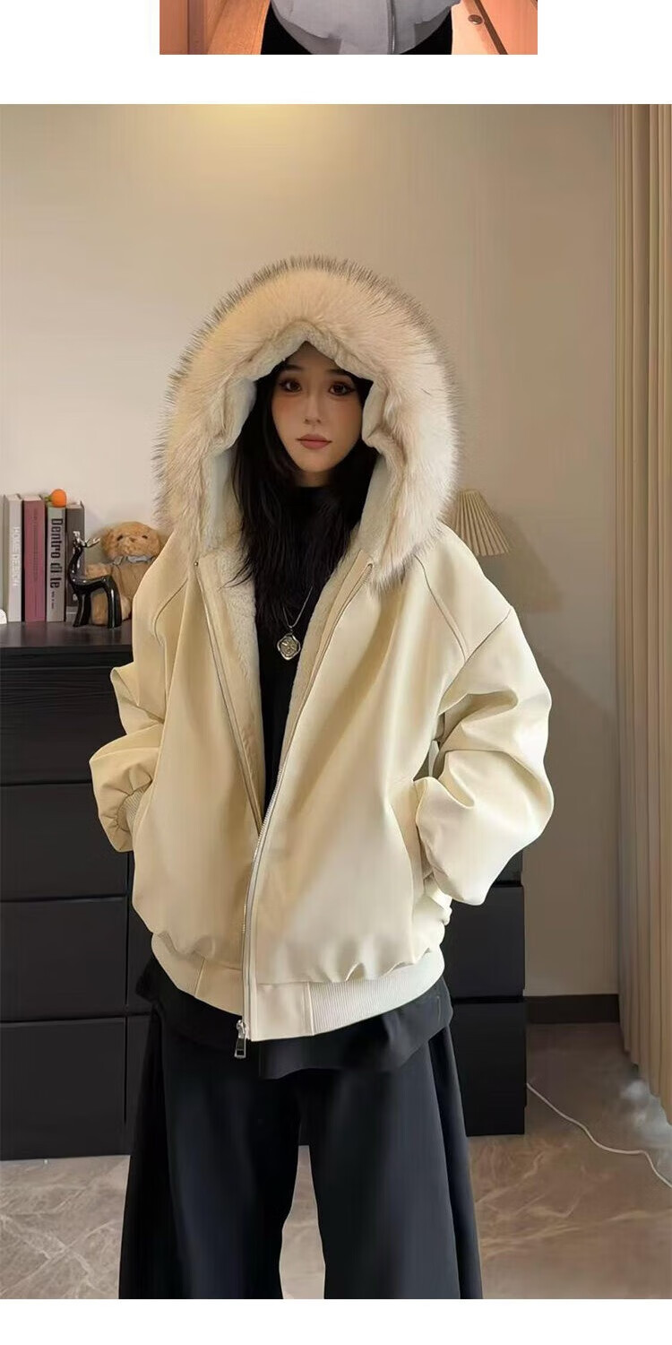 ZHUYIFAN hooded mountain carving leather jacket, men's and women's winter velvet thickened warm fur collar cotton jacket trendy brand apricot upgraded version L 110-130Jin Jin is equal to 0.5 kg