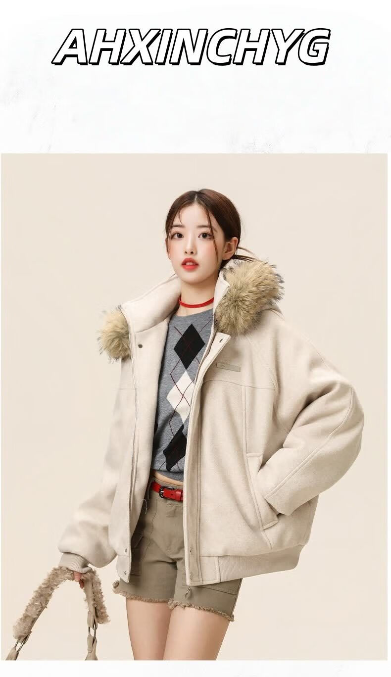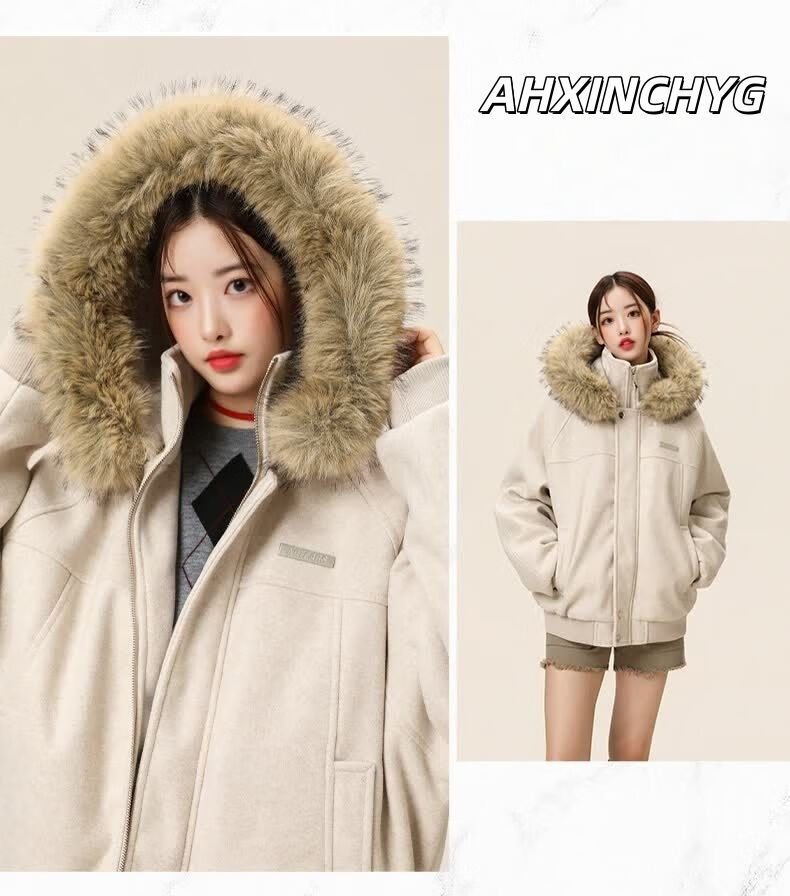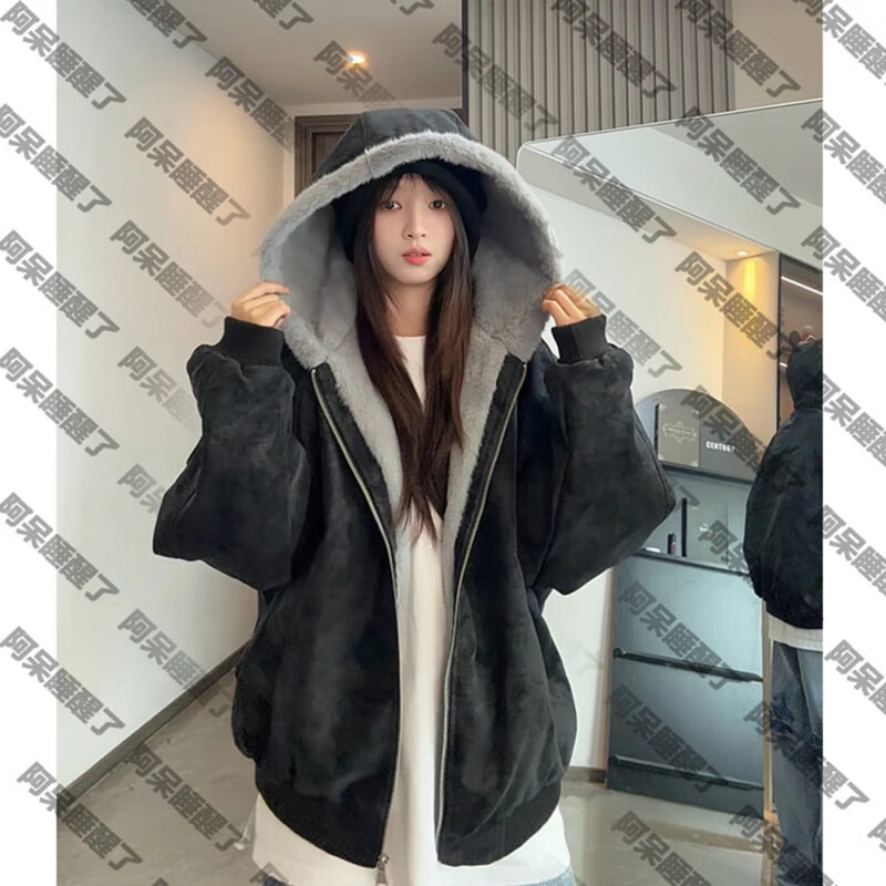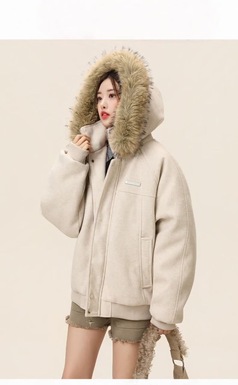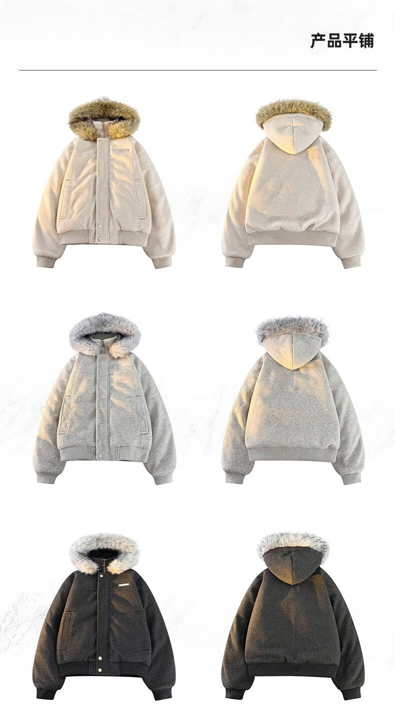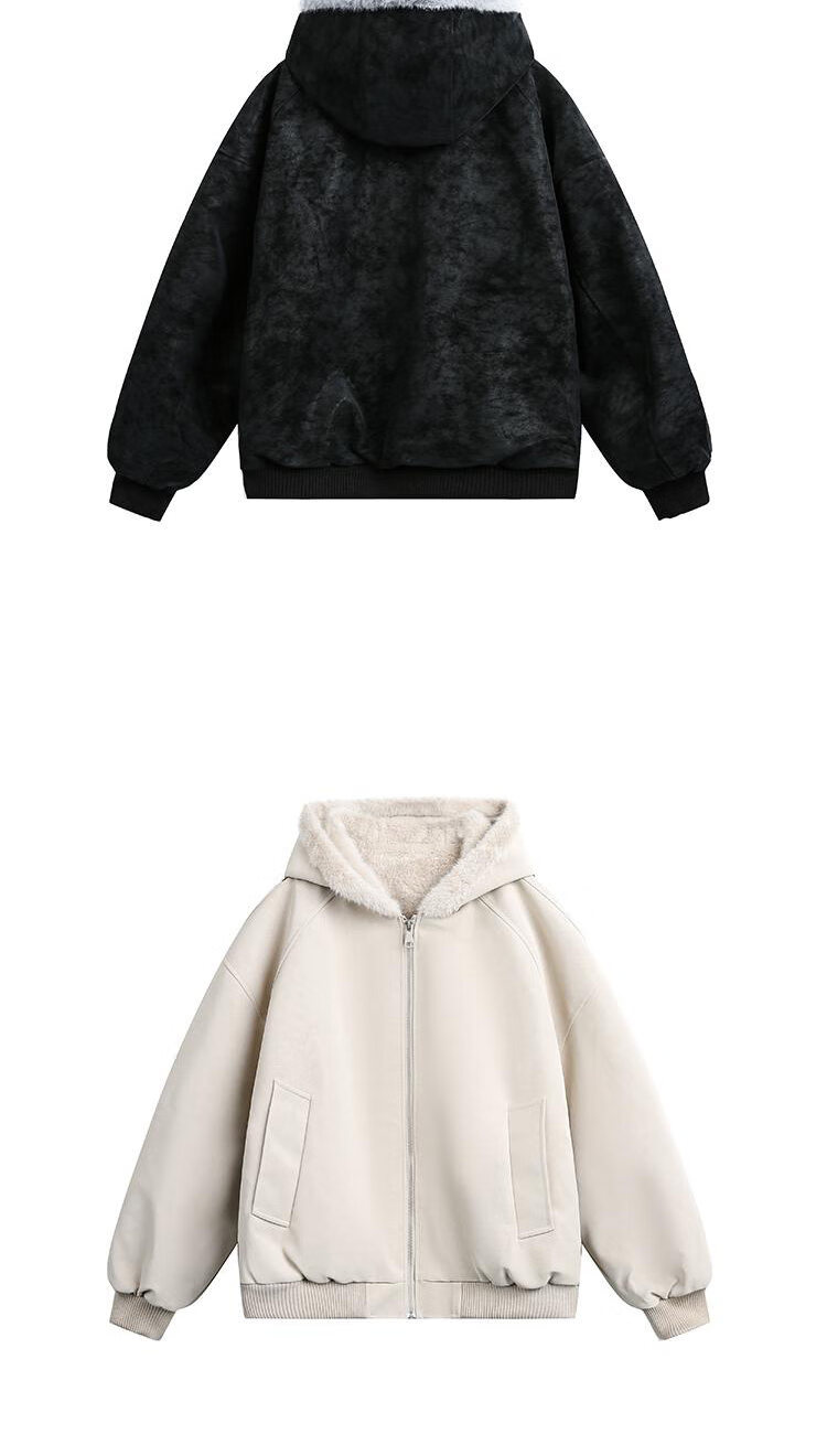 ZHUYIFAN hooded mountain carving leather jacket, men's and women's winter velvet thickened warm fur collar cotton jacket trendy brand apricot upgraded version L 110-130Jin Jin is equal to 0.5 kg