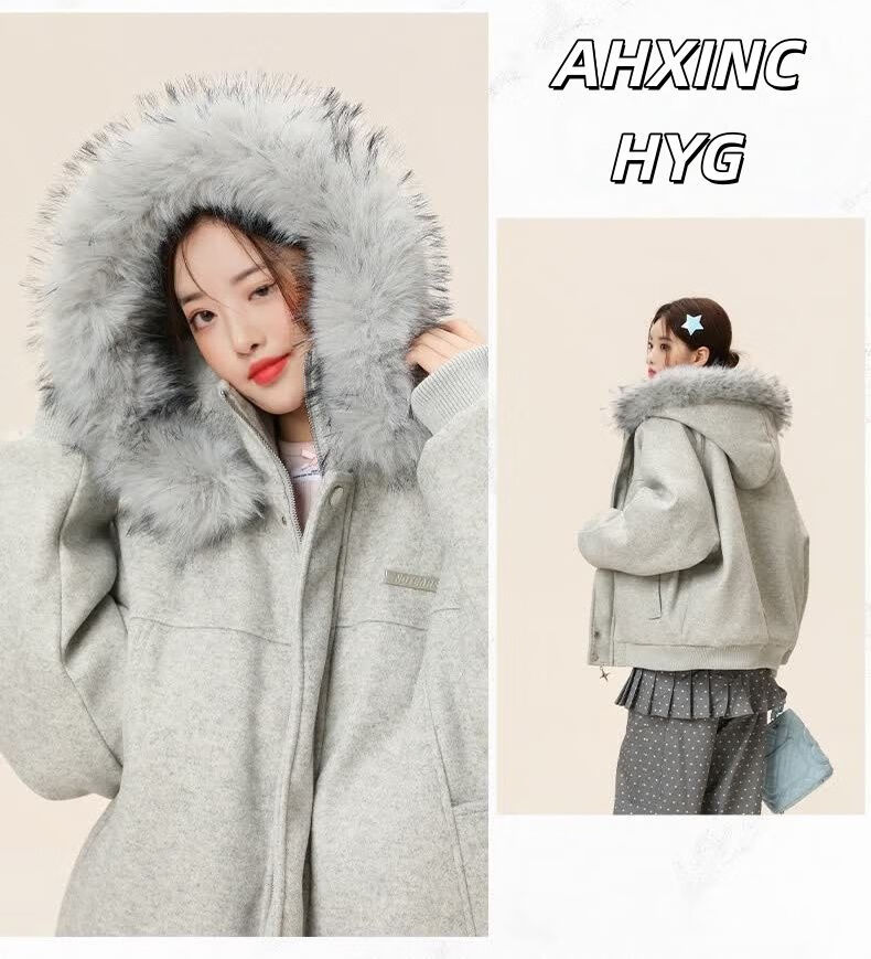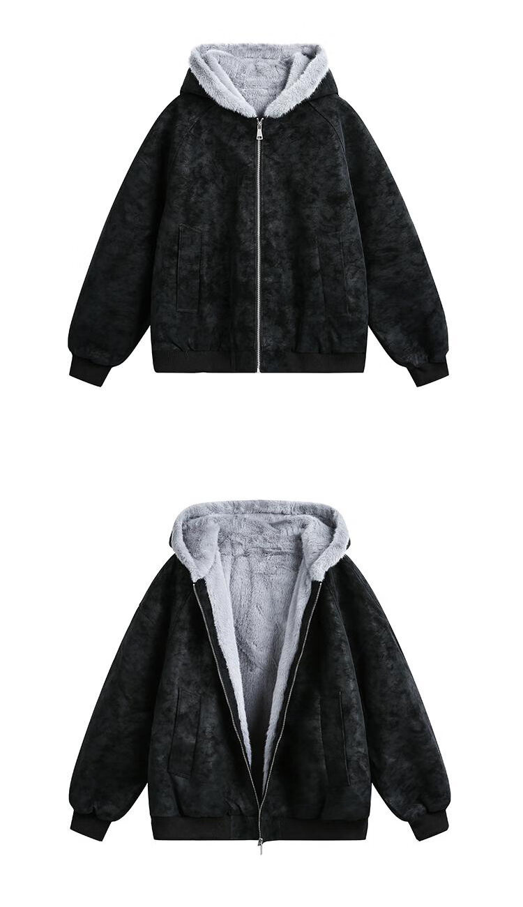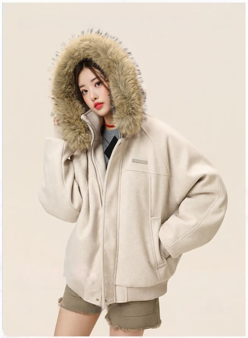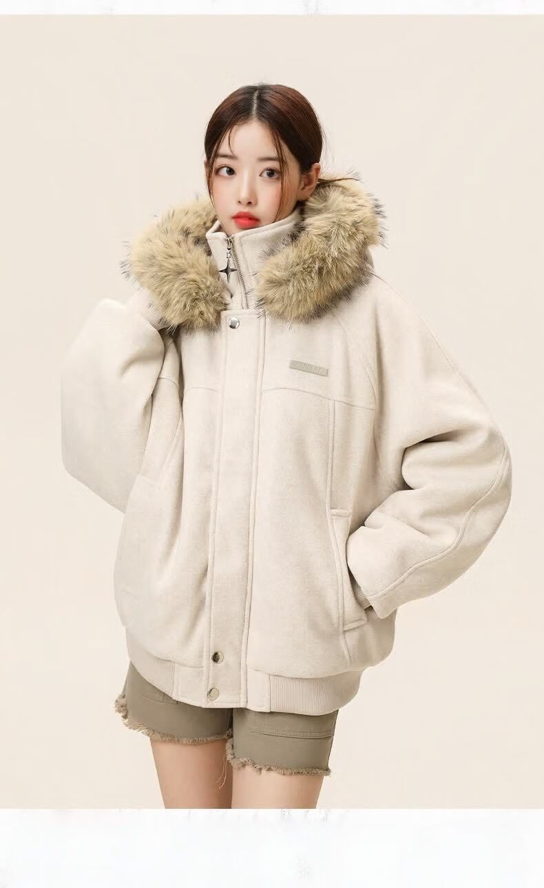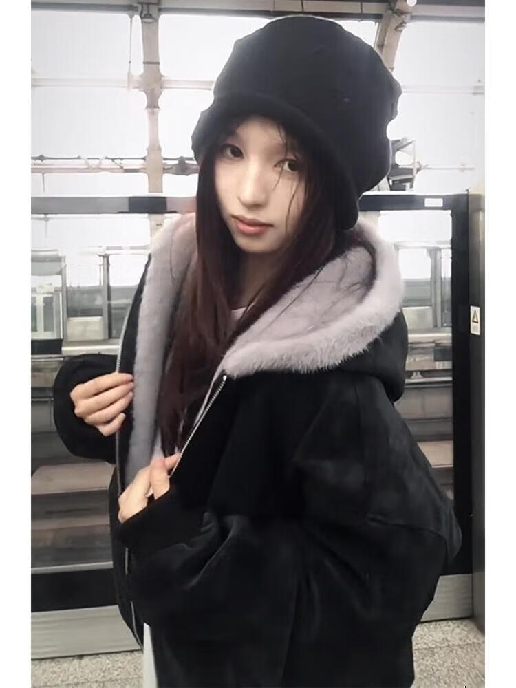 ZHUYIFAN hooded mountain carving leather jacket, men's and women's winter velvet thickened warm fur collar cotton jacket trendy brand apricot upgraded version L 110-130Jin Jin is equal to 0.5 kg
