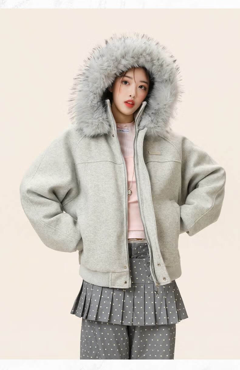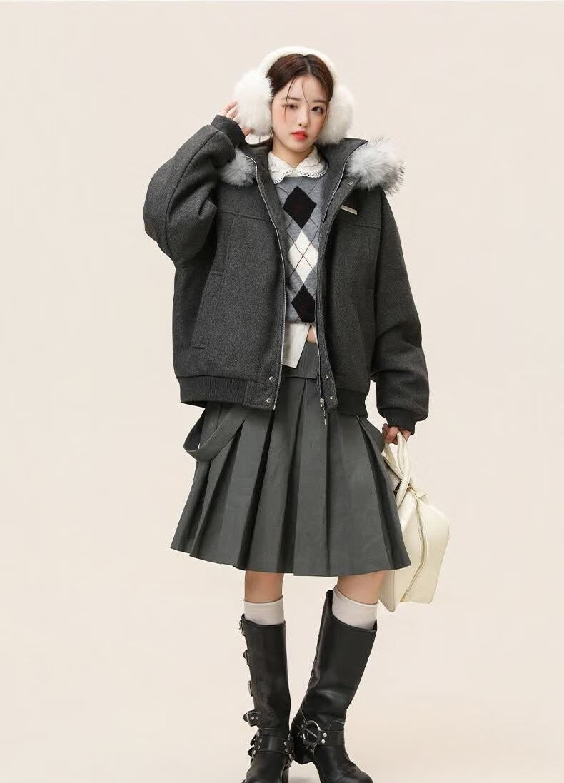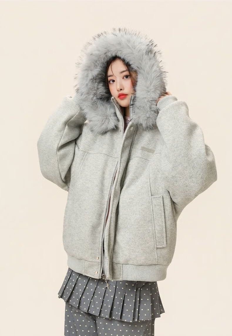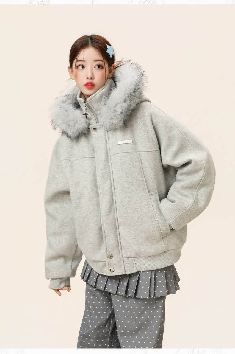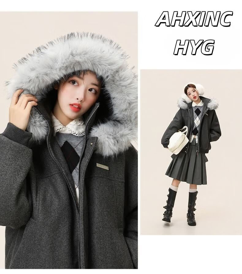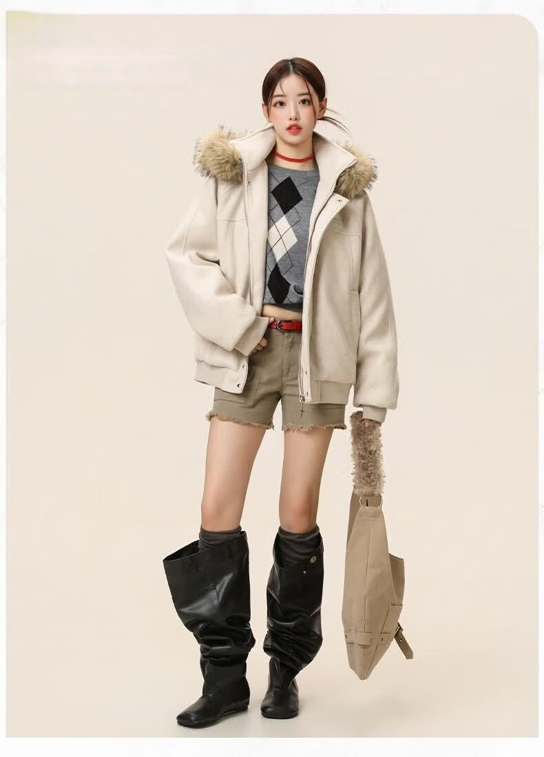 ZHUYIFAN hooded mountain carving leather jacket, men's and women's winter velvet thickened warm fur collar cotton jacket trendy brand apricot upgraded version L 110-130Jin Jin is equal to 0.5 kg