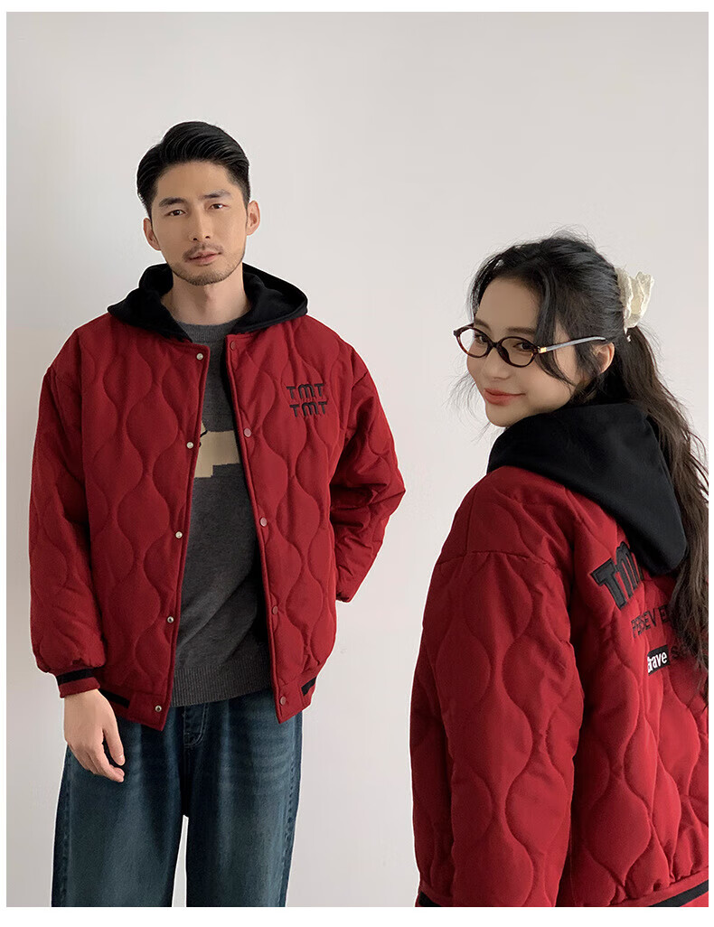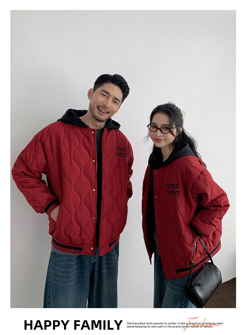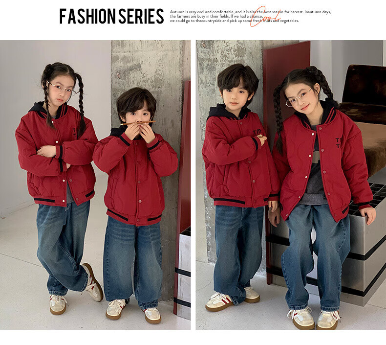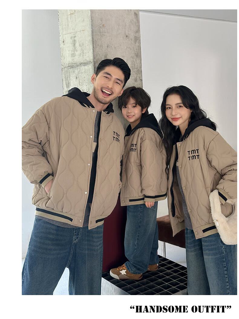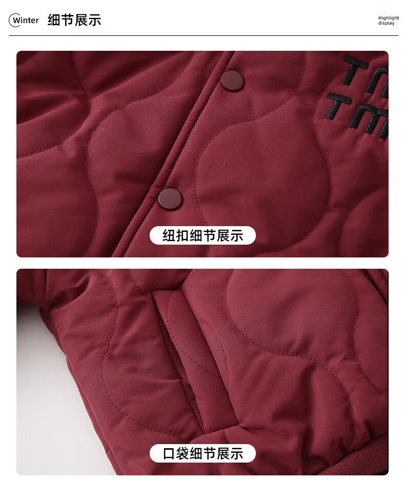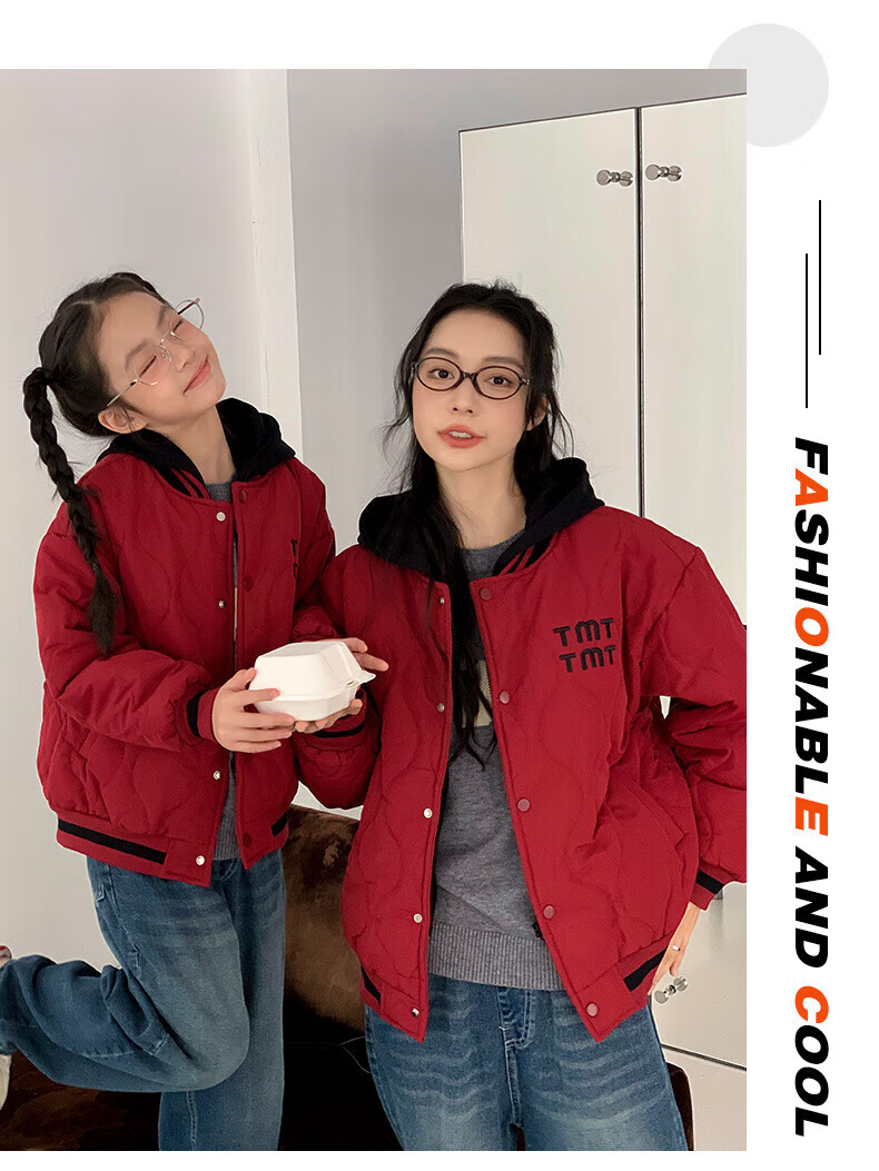 Jiaojing family of three parent-child clothing winter cotton clothes New Year red winter casual hooded four mother and son mother and daughter style warm and burgundy Korean version style 140 Height 135-145cm/Weight 50-60 Jin Jin is equal to 0.5 kg