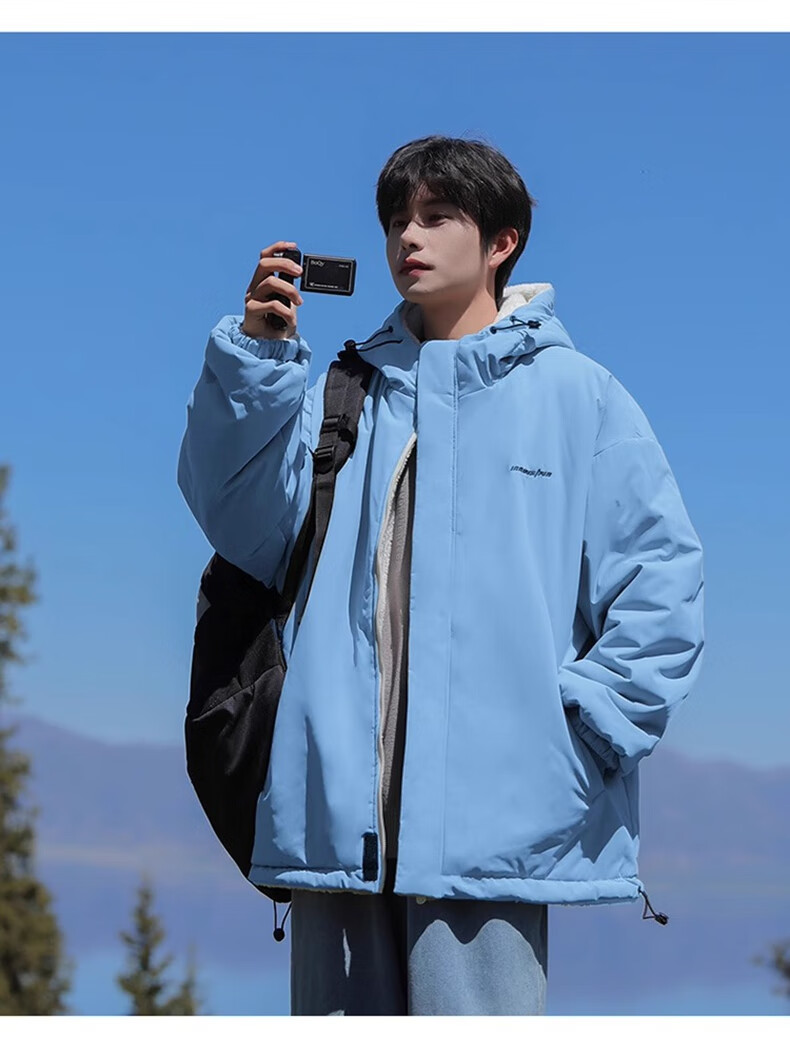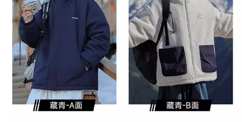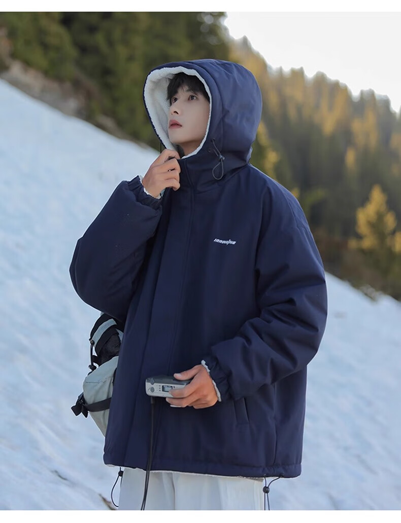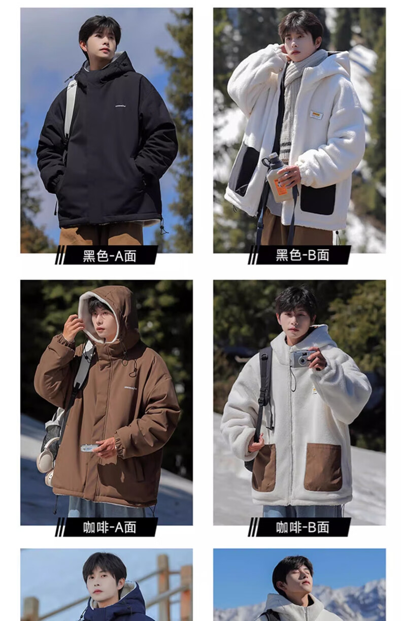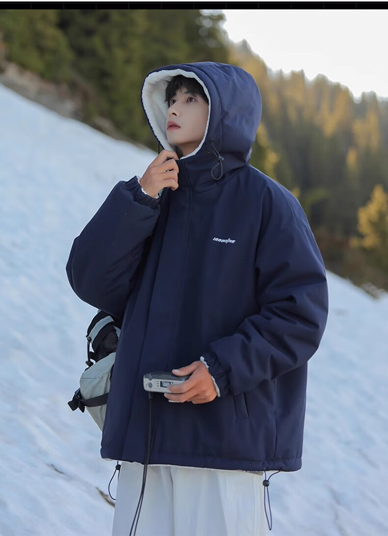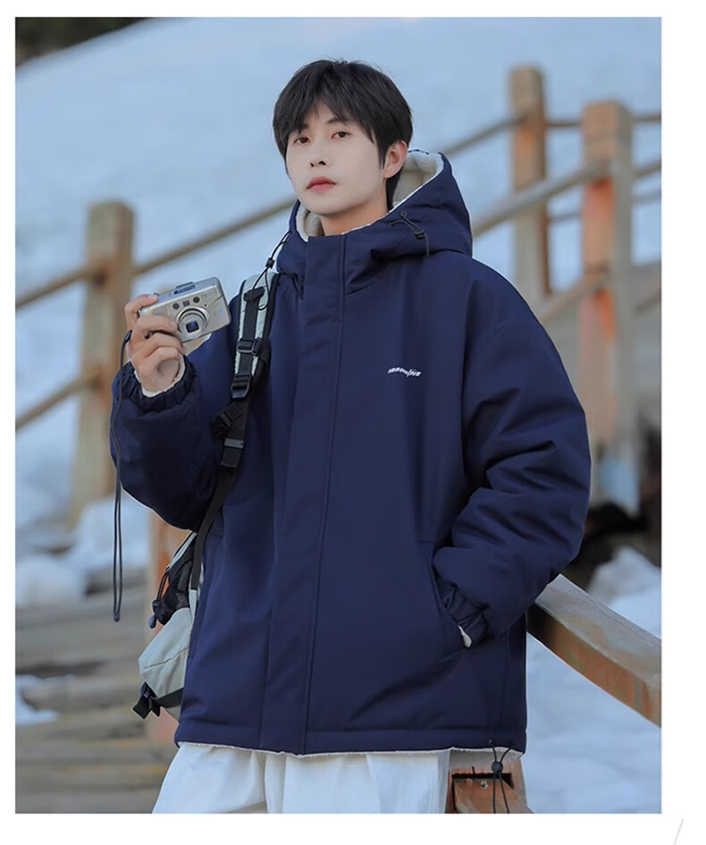 Playboy (PLAYBOY) Lamb Velvet Reversible Cotton Jacket Men's Autumn and Winter Plush Warm Outdoor Cotton Jacket Navy Blue L Recommended 125-145 Jin Jin equals 0.5 kg