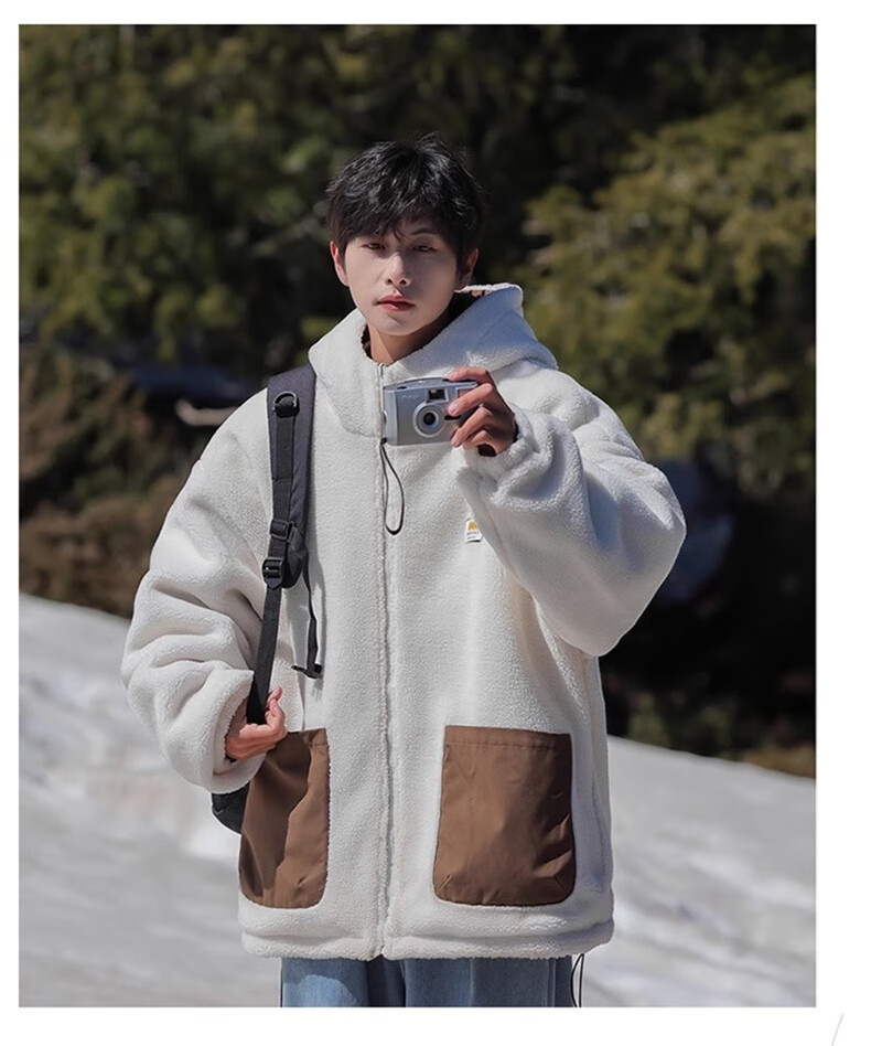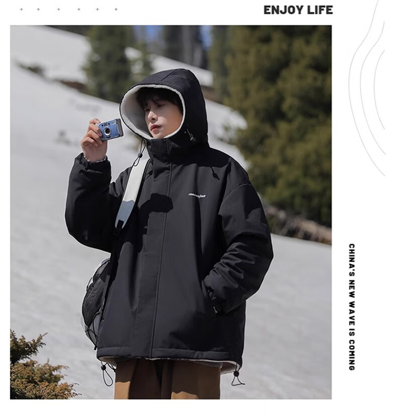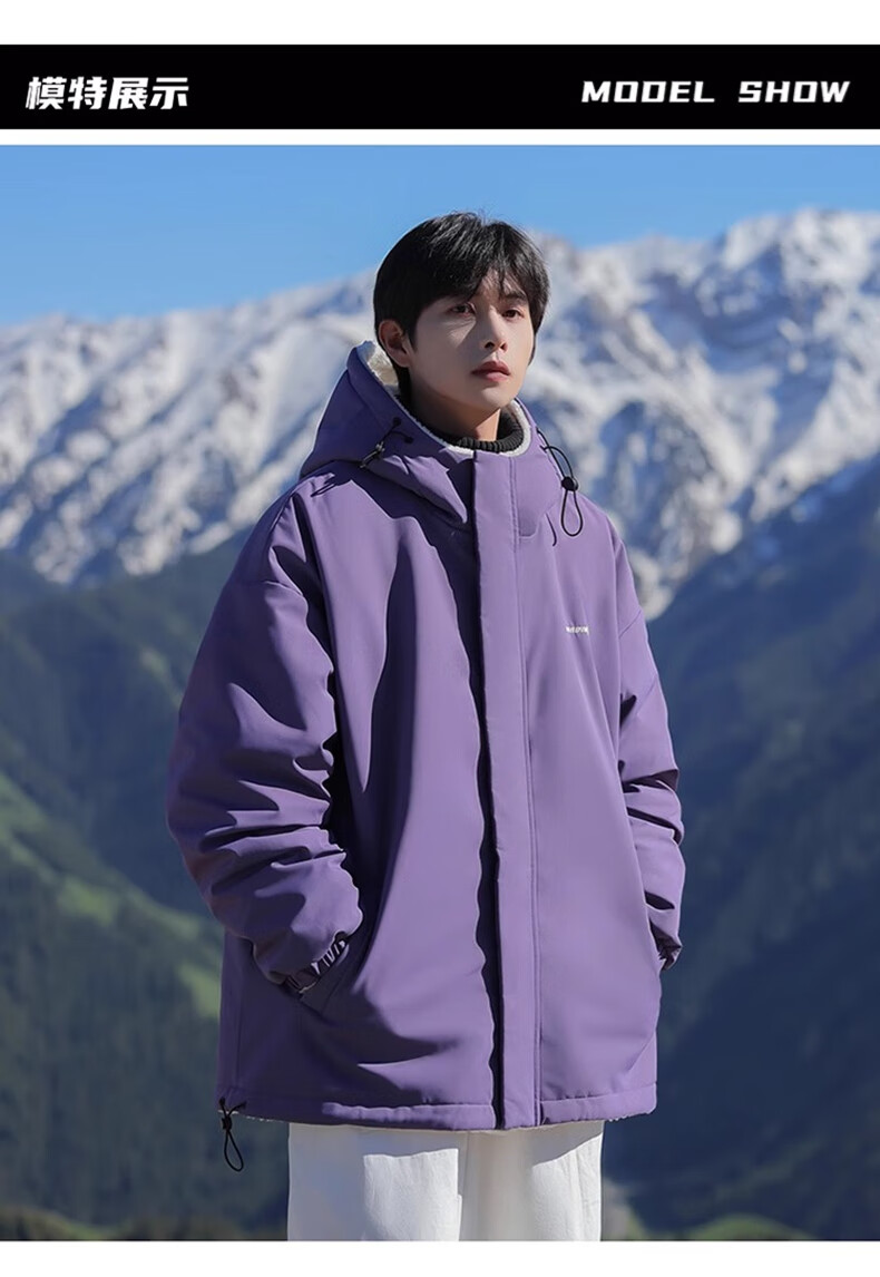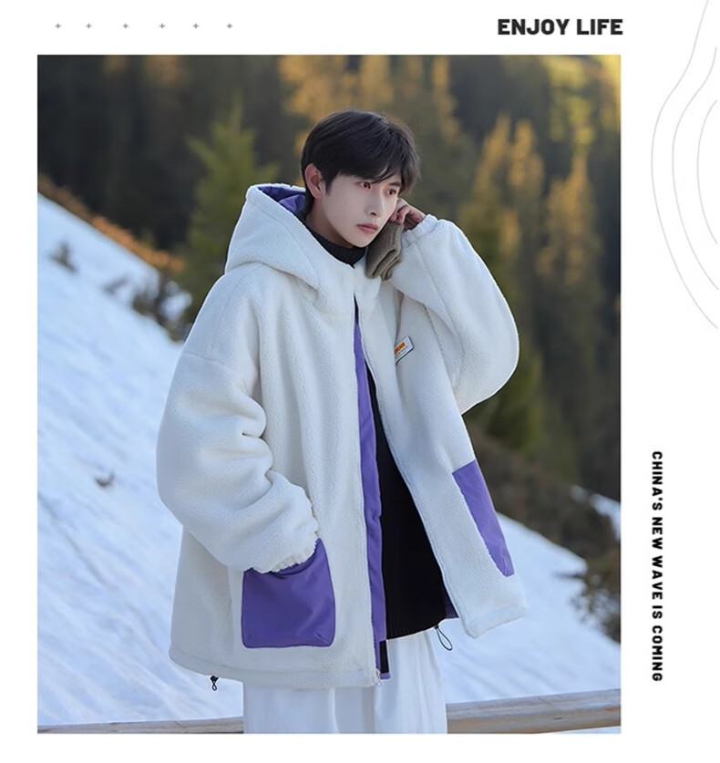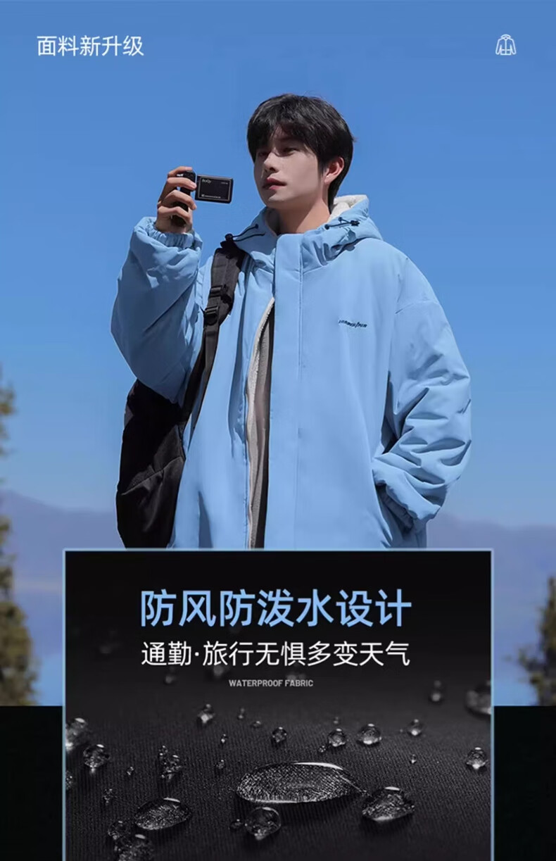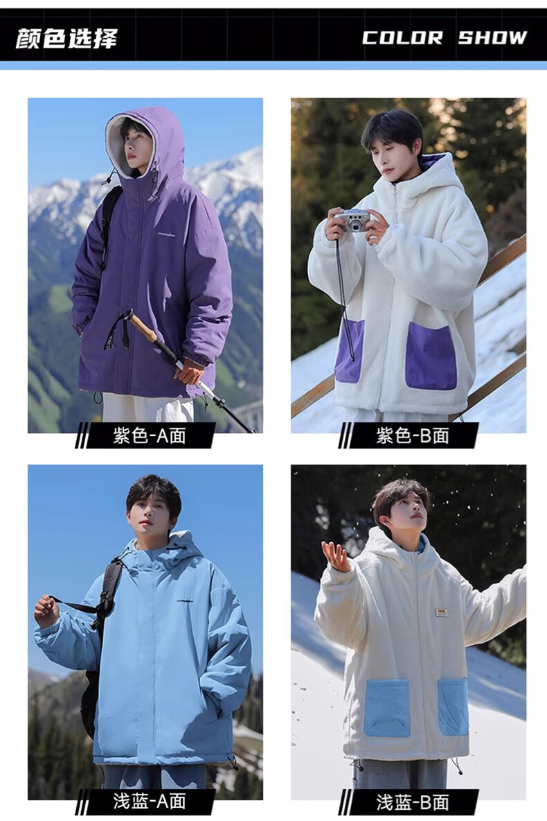 Playboy (PLAYBOY) Lamb Velvet Reversible Cotton Jacket Men's Autumn and Winter Plush Warm Outdoor Cotton Jacket Navy Blue L Recommended 125-145 Jin Jin equals 0.5 kg