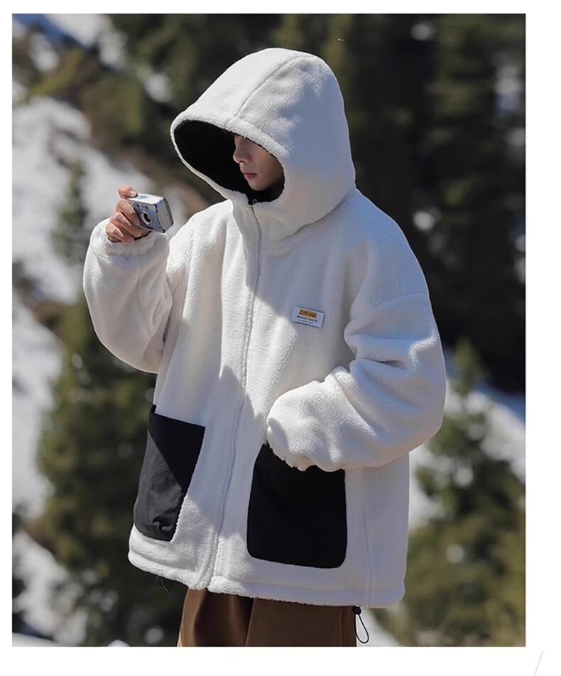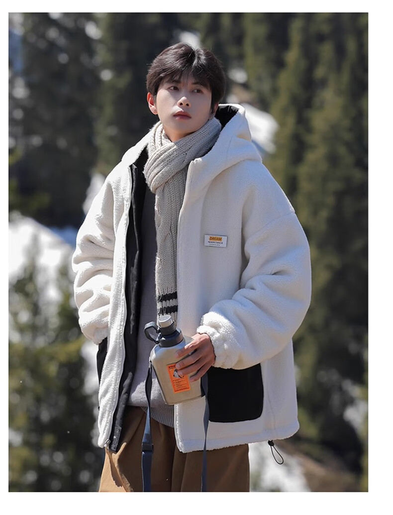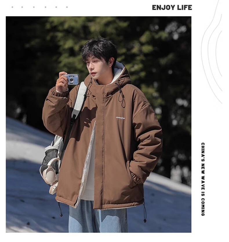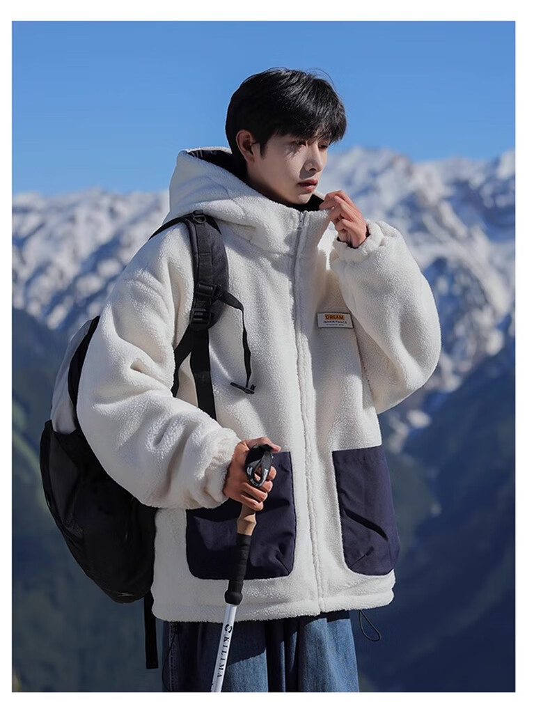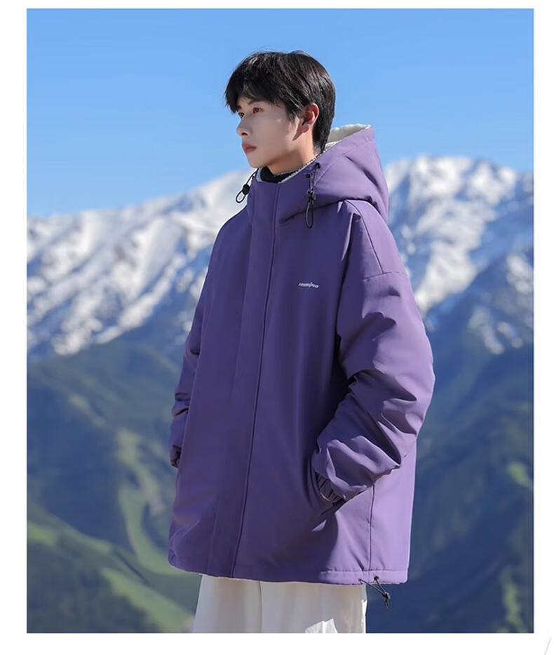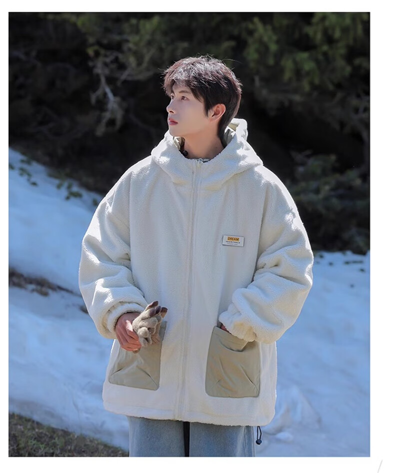Playboy (PLAYBOY) Lamb Velvet Reversible Cotton Jacket Men's Autumn and Winter Plush Warm Outdoor Cotton Jacket Navy Blue L Recommended 125-145 Jin Jin equals 0.5 kg
