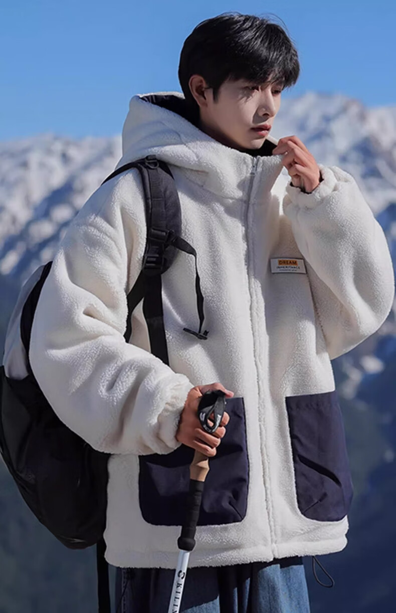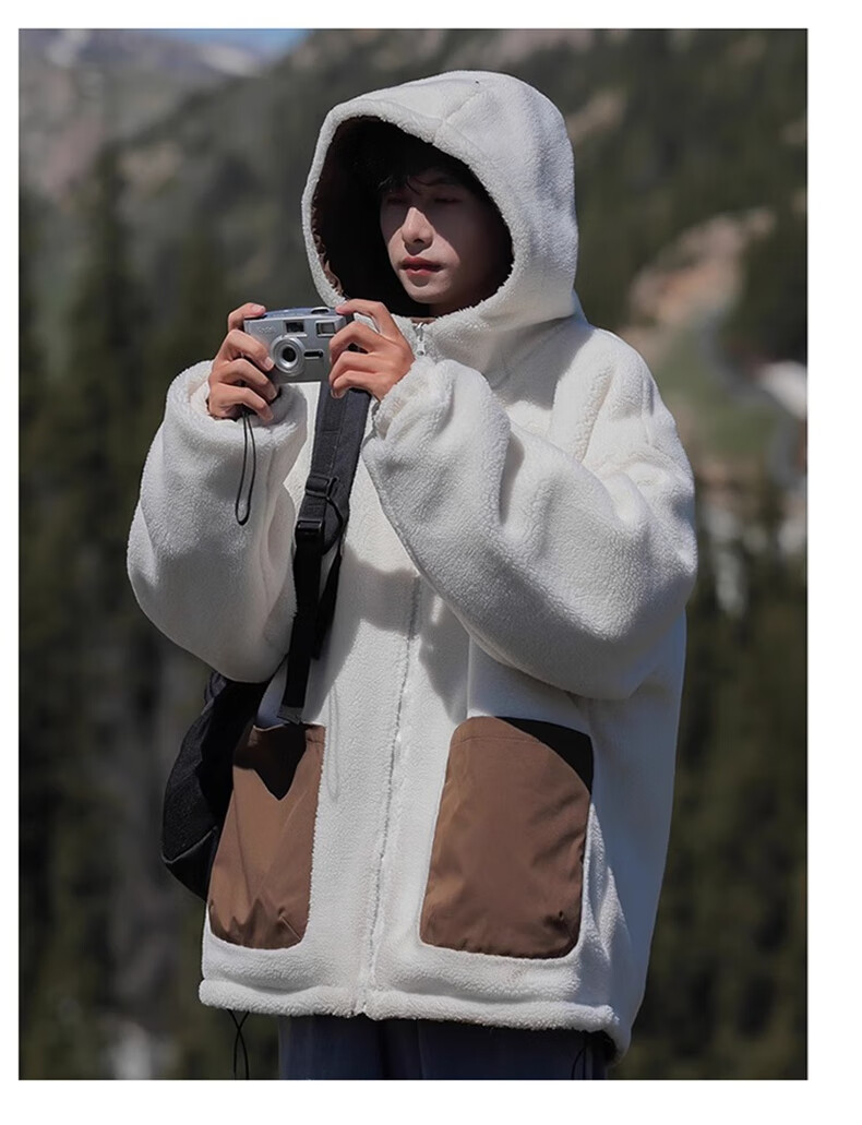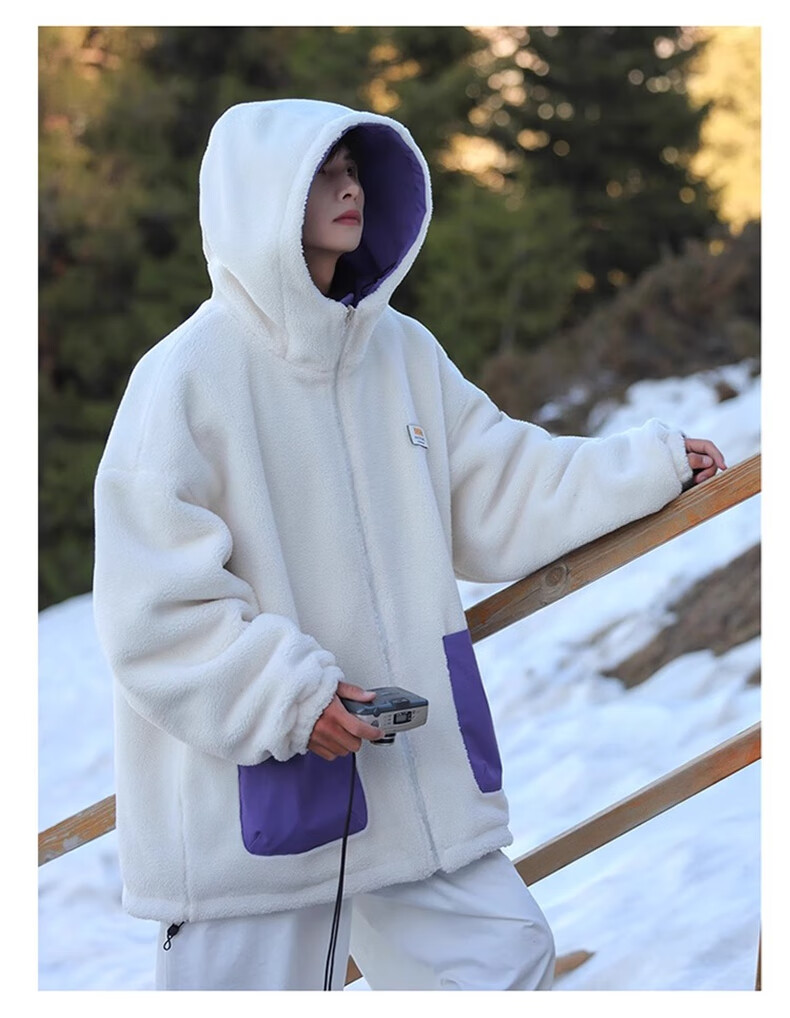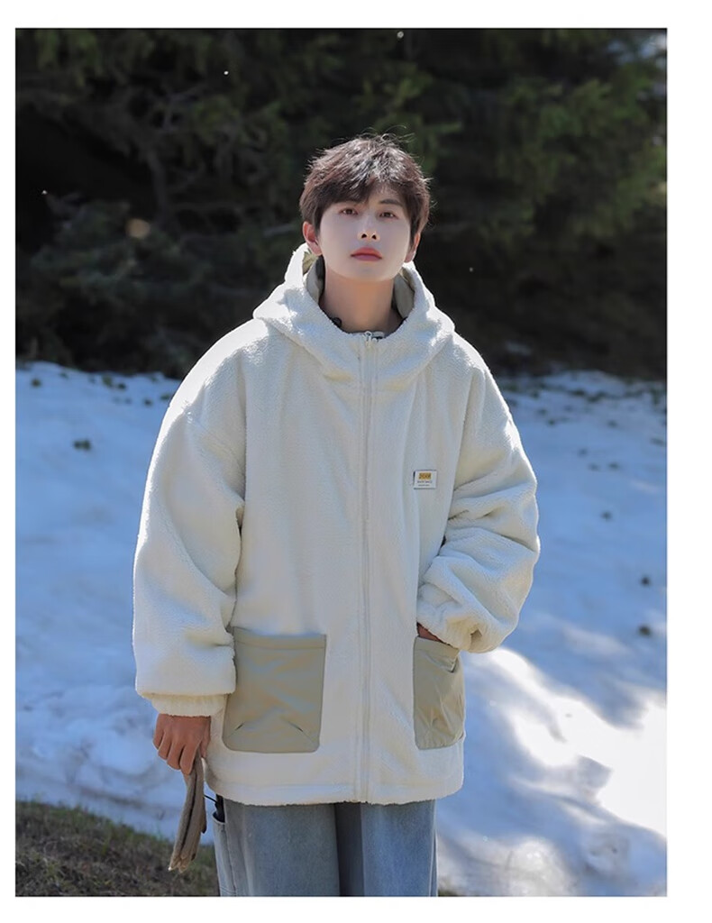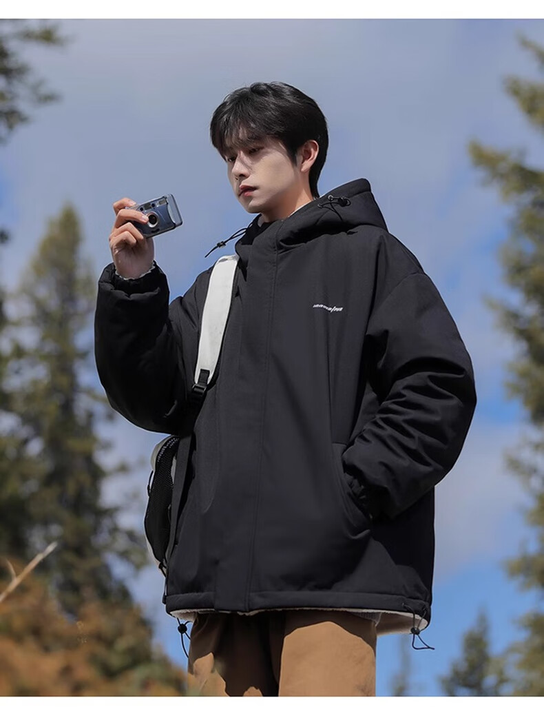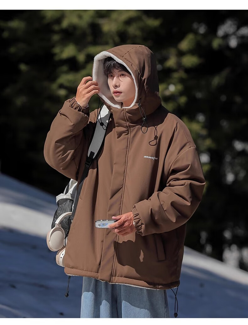 Playboy (PLAYBOY) Lamb Velvet Reversible Cotton Jacket Men's Autumn and Winter Plush Warm Outdoor Cotton Jacket Navy Blue L Recommended 125-145 Jin Jin equals 0.5 kg