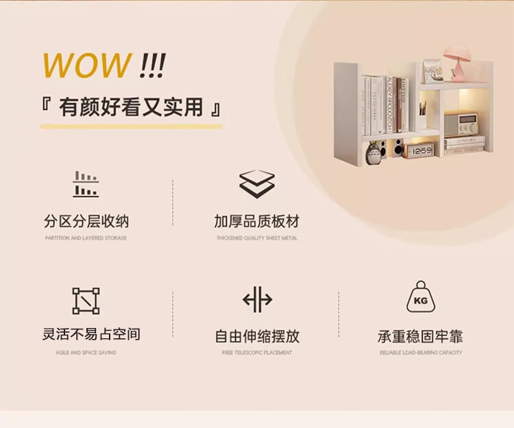 Xinnan bookshelf desktop storage rack workstation desk storage rack student dormitory table corner bookcase desk storage cabinet warm white partition desktop bookshelf