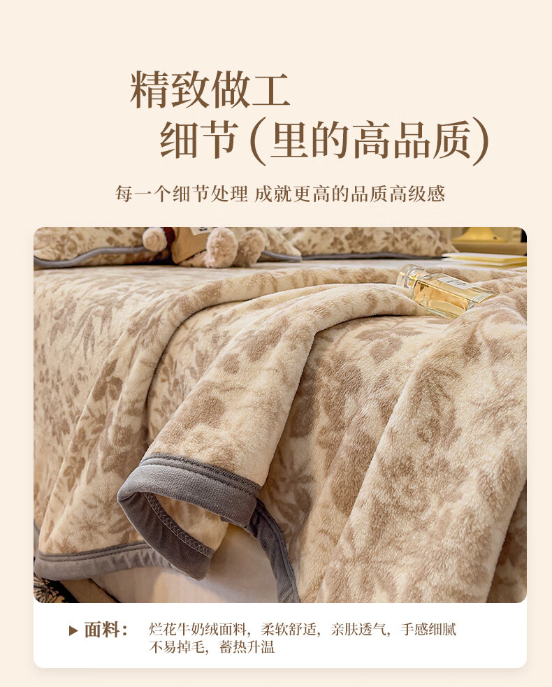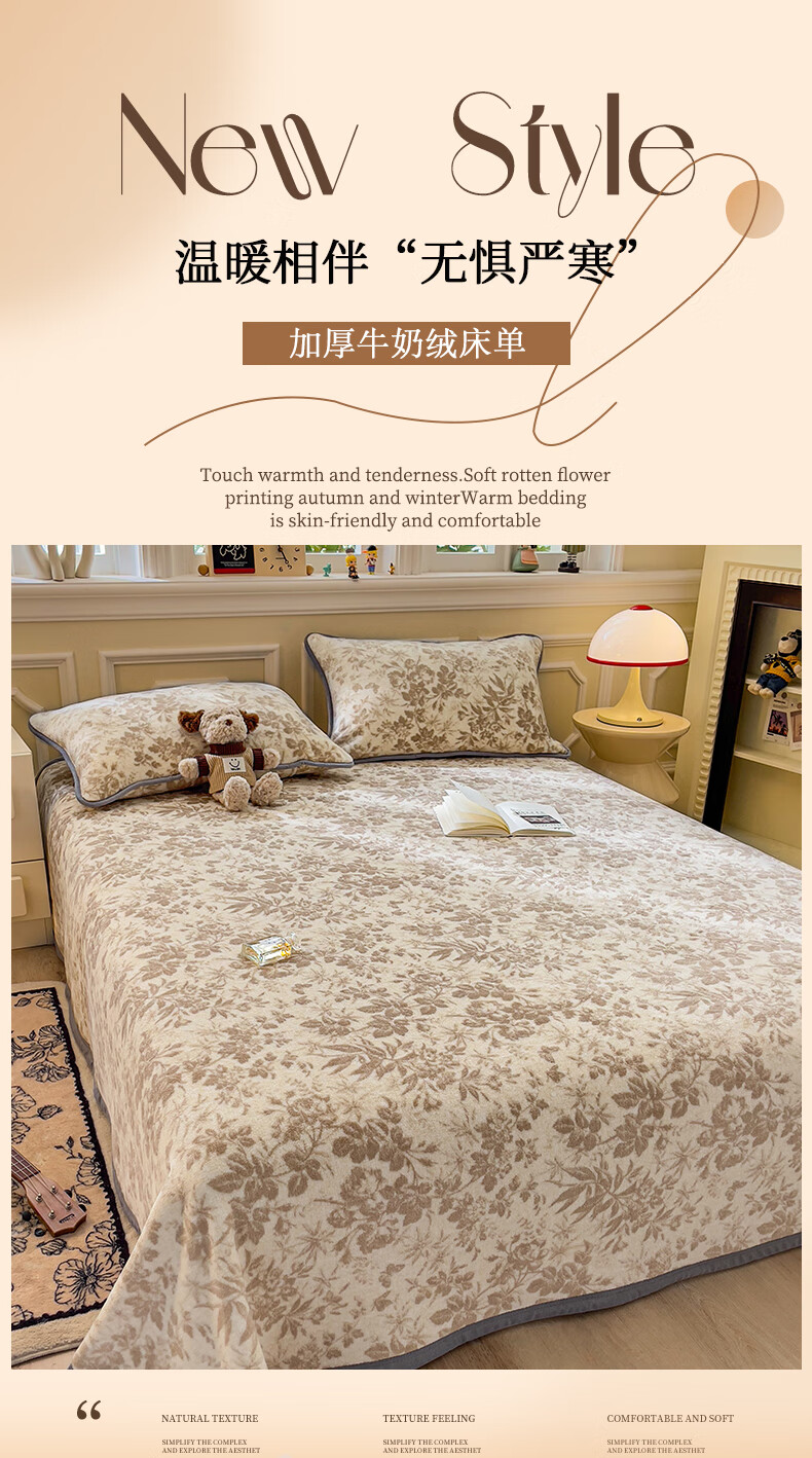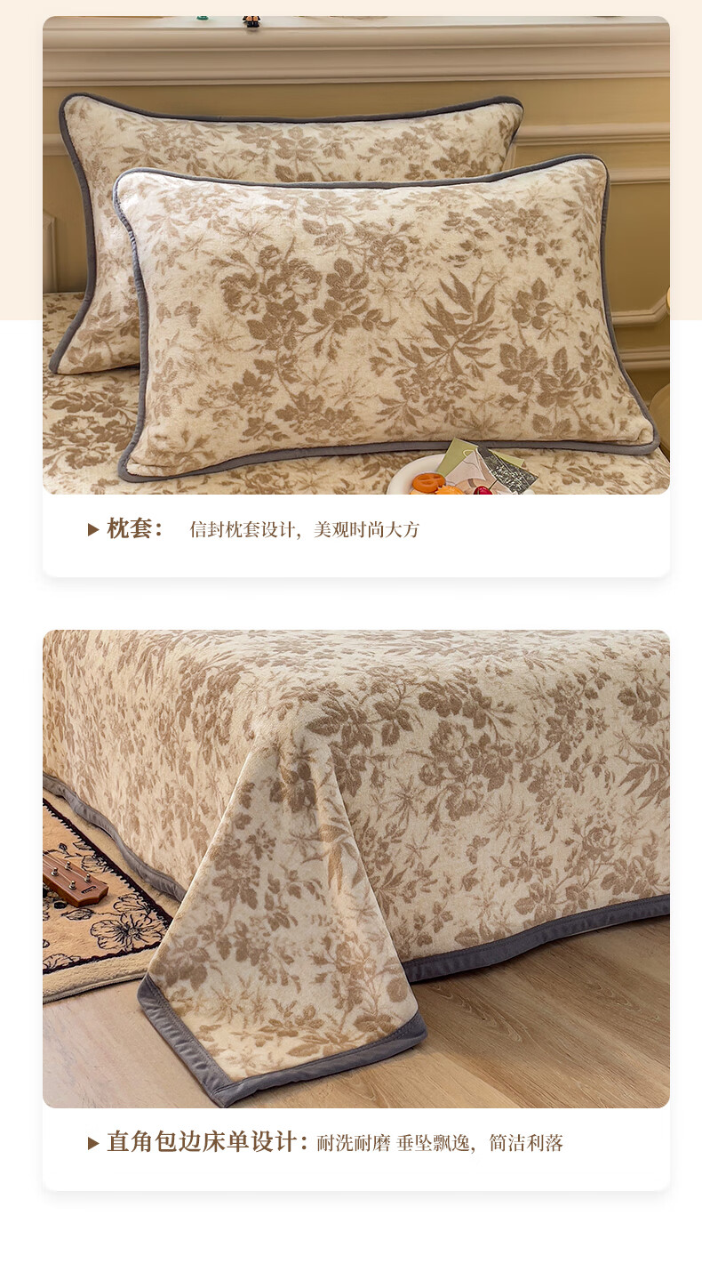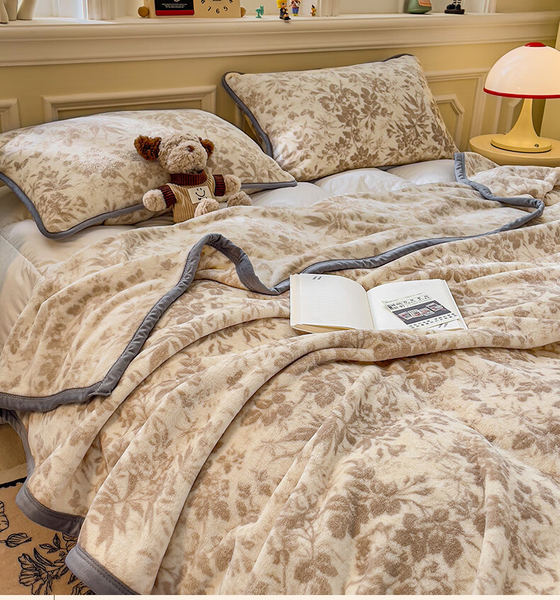 Tang-origin retro double-sided milk velvet bed sheet single piece winter plus velvet thickened warm coral velvet quilt single plush sofa blanket Huajing-Xingka 150x200cm blanket + pillowcase pair