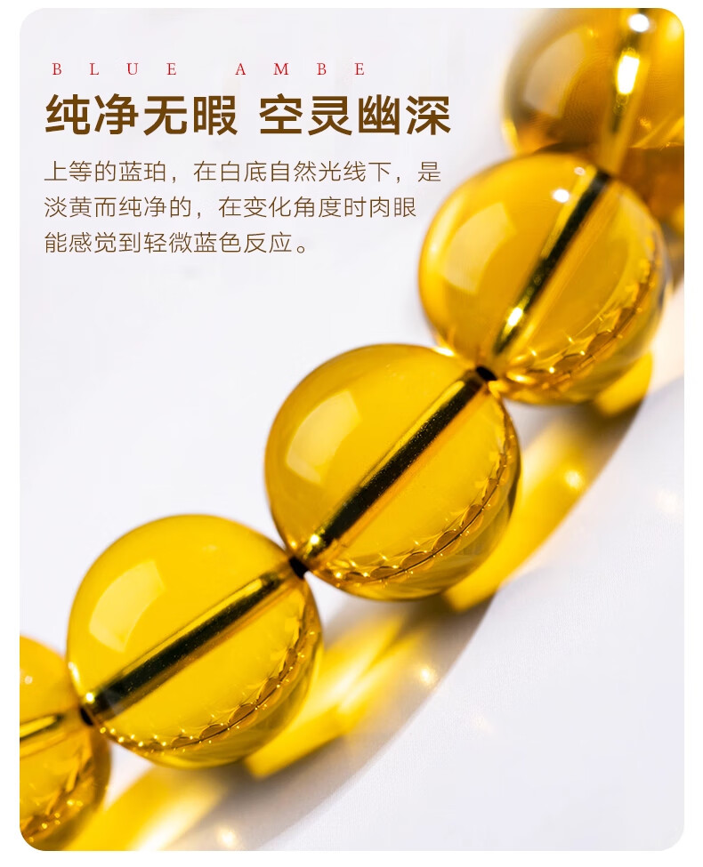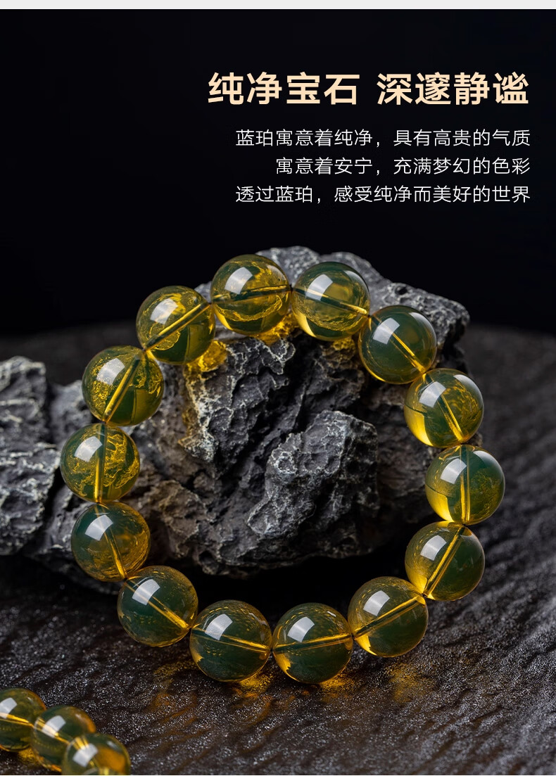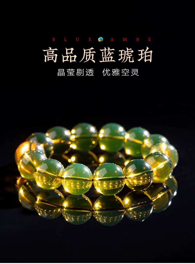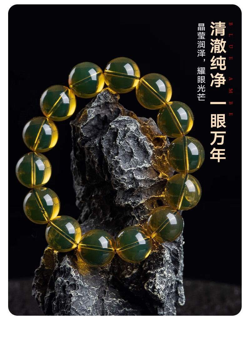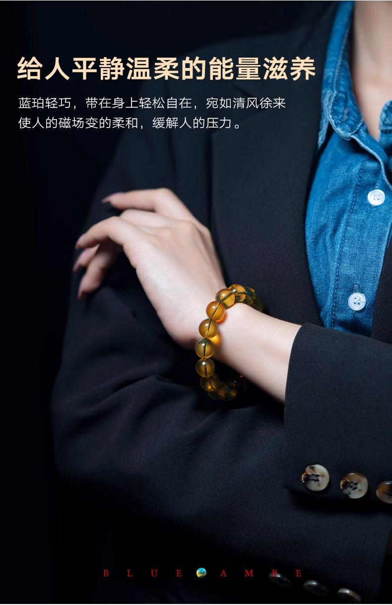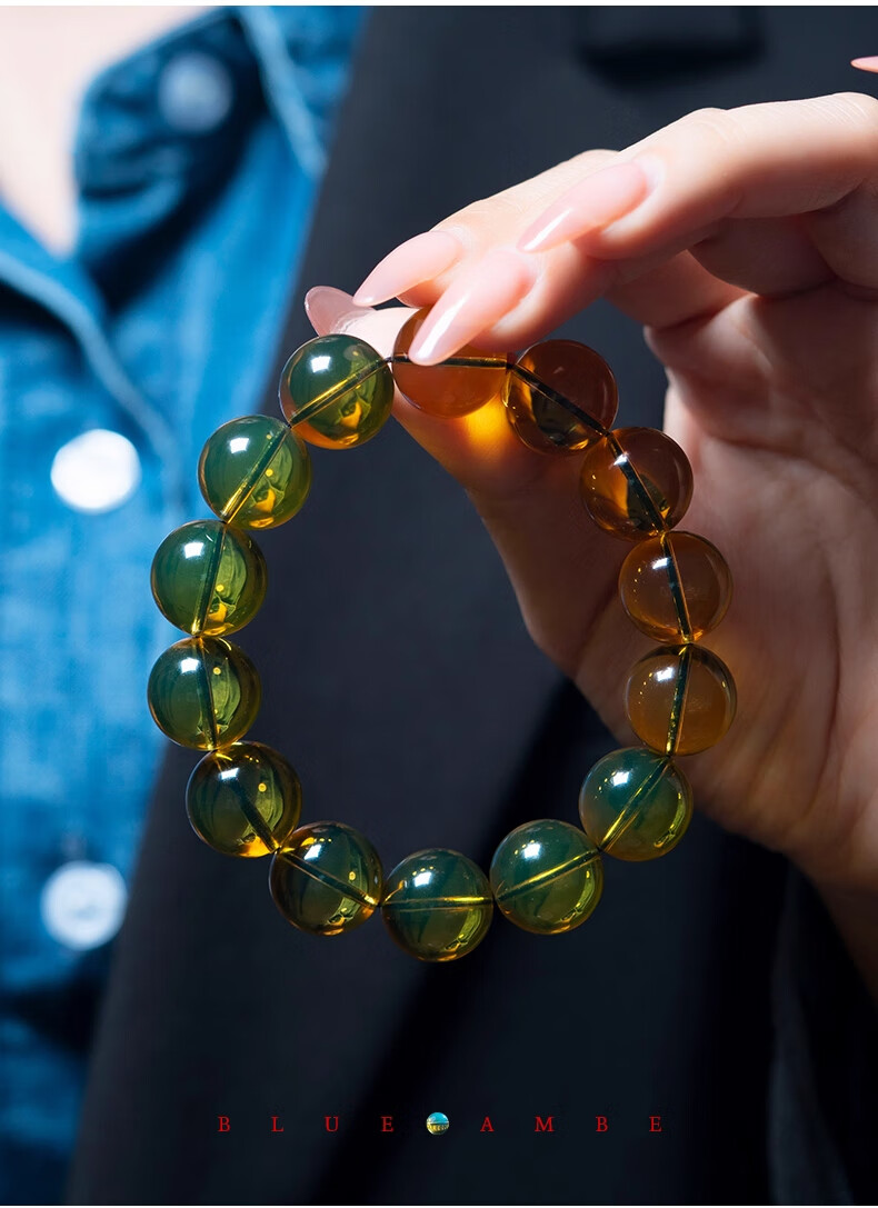 Fan Jialun blue amber beeswax bracelet for men, pure water grade amber, original stone toy piece, single circle bracelet for men and women, gift, blue amber 0.8x21 pieces