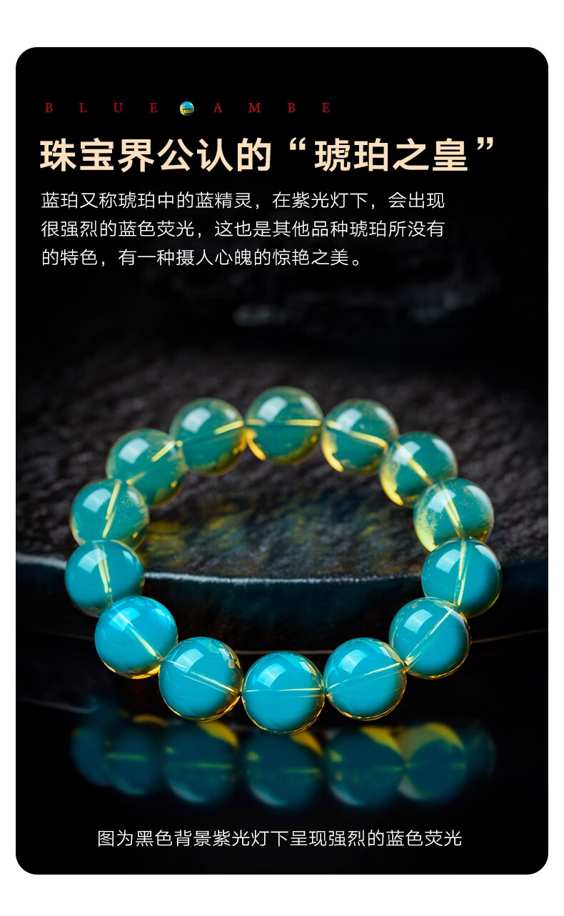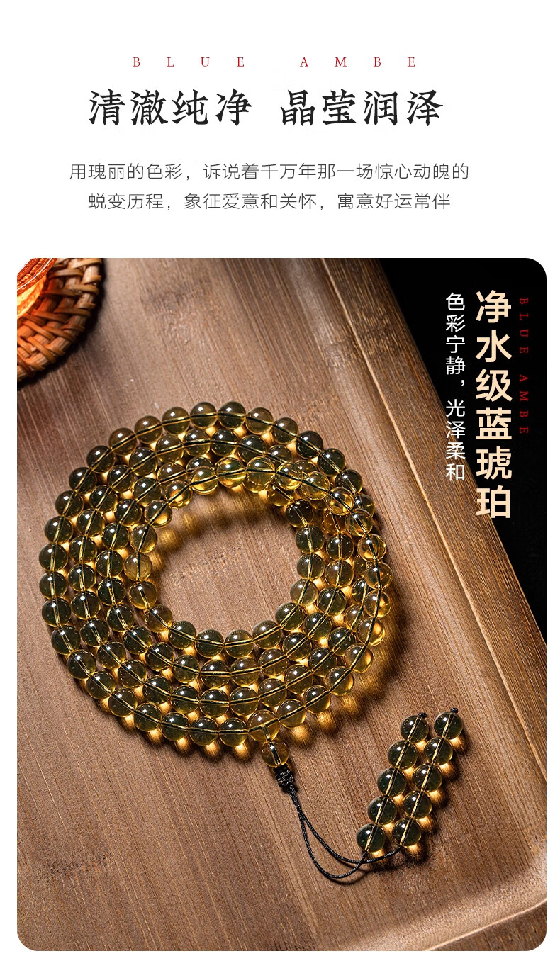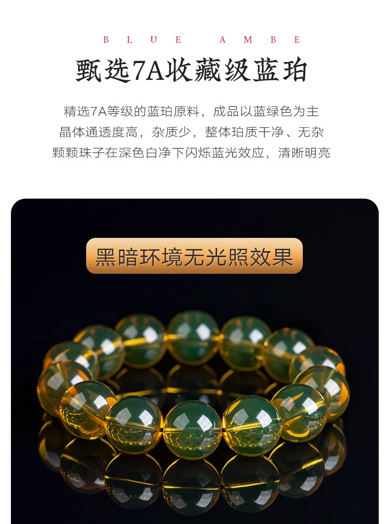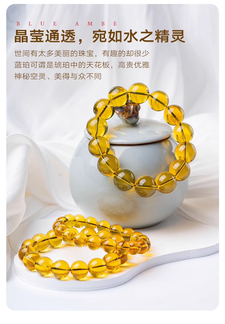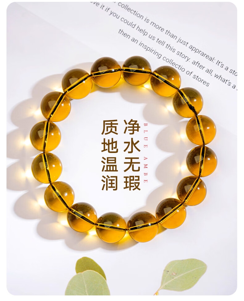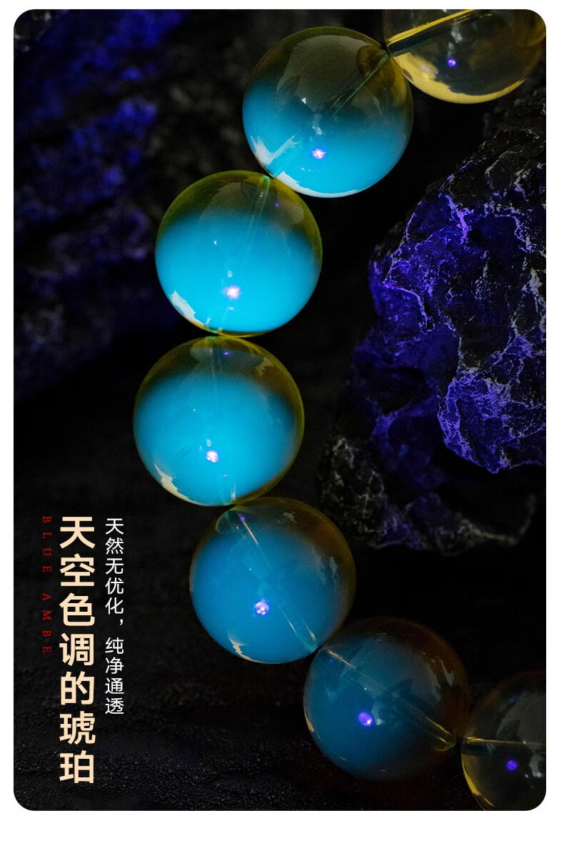 Fan Jialun blue amber beeswax bracelet for men, pure water grade amber, original stone toy piece, single circle bracelet for men and women, gift, blue amber 0.8x21 pieces