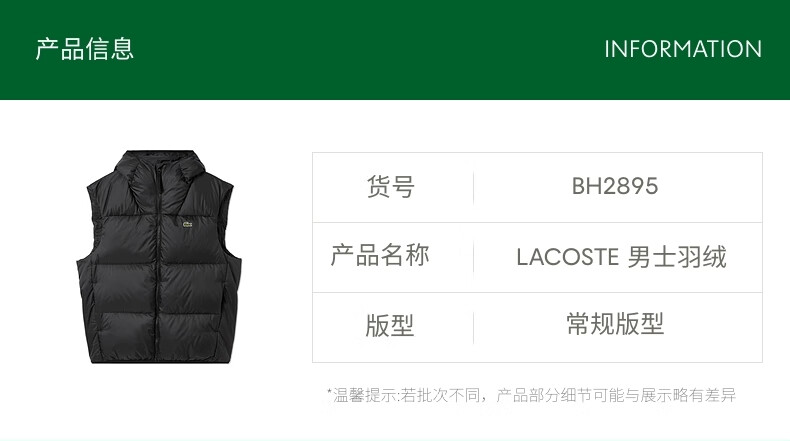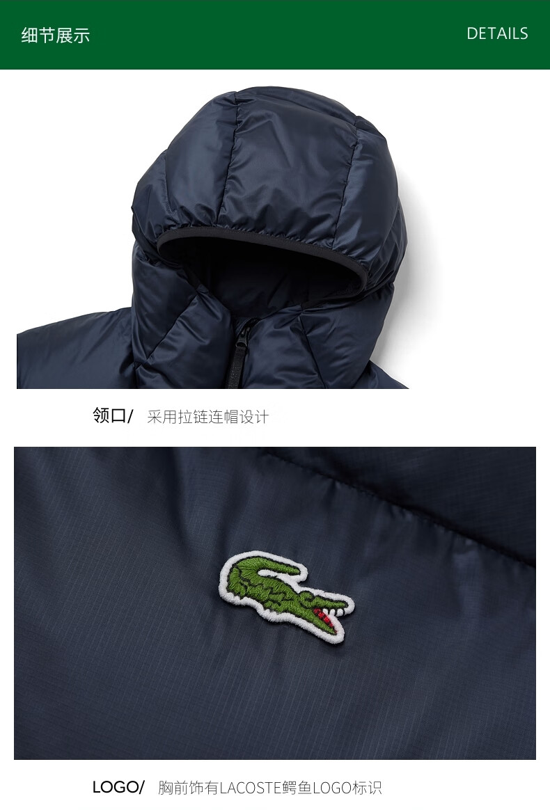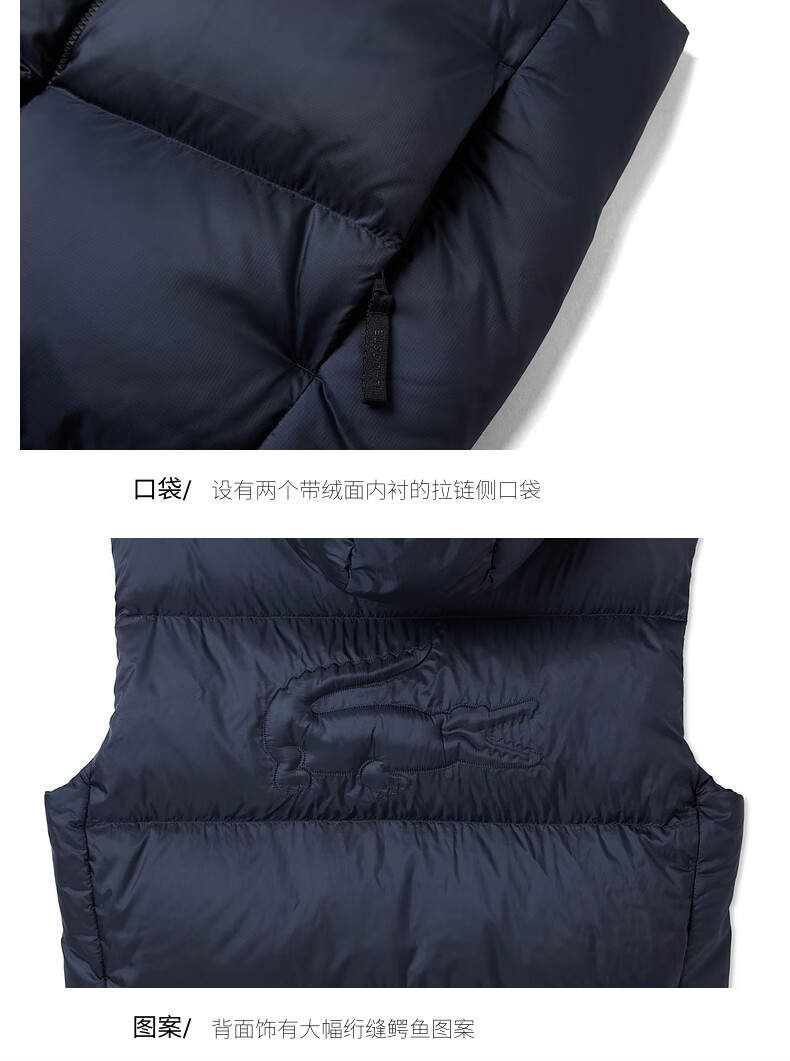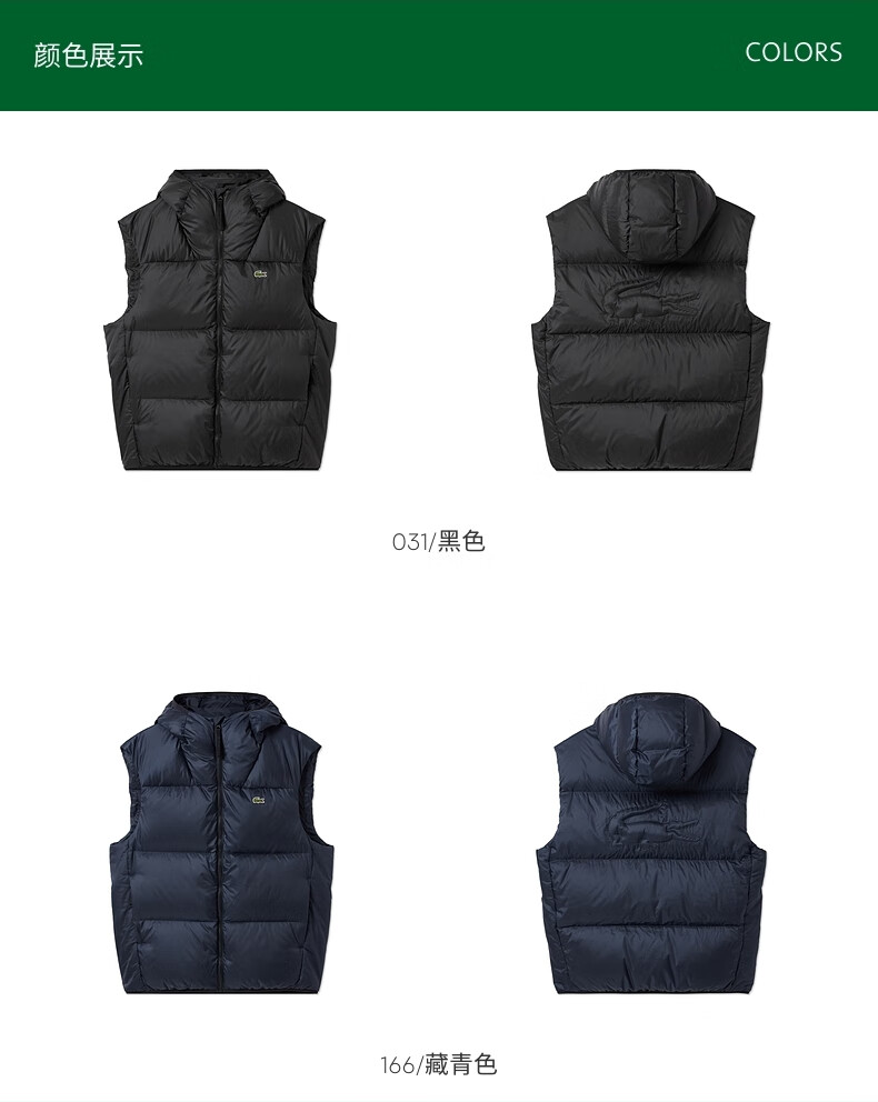 Crocodile (LACOSTE) Men's 25 Autumn New Duck Down Zip Hooded Vest Jacket BH2895 031_Black S 48__M