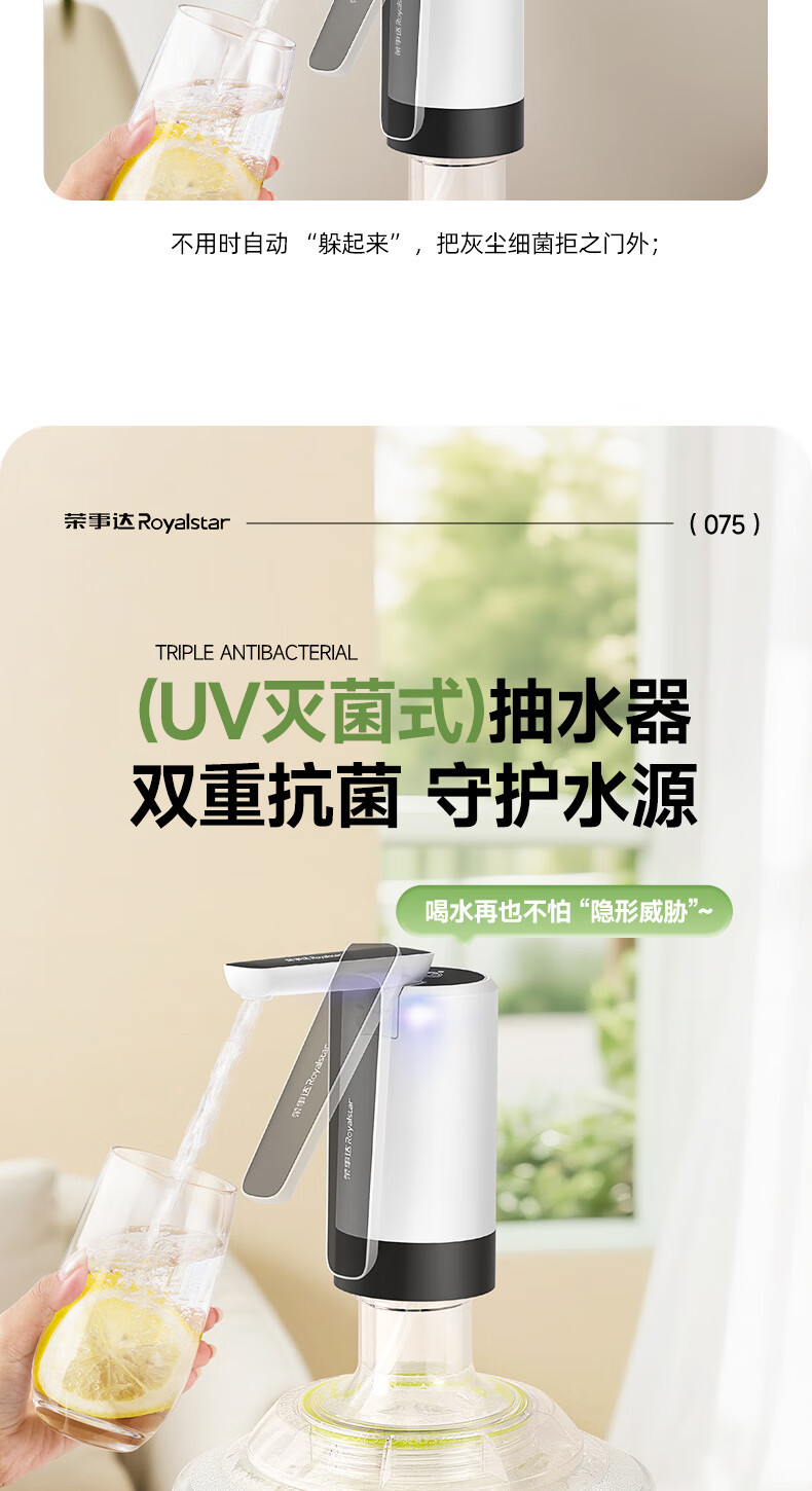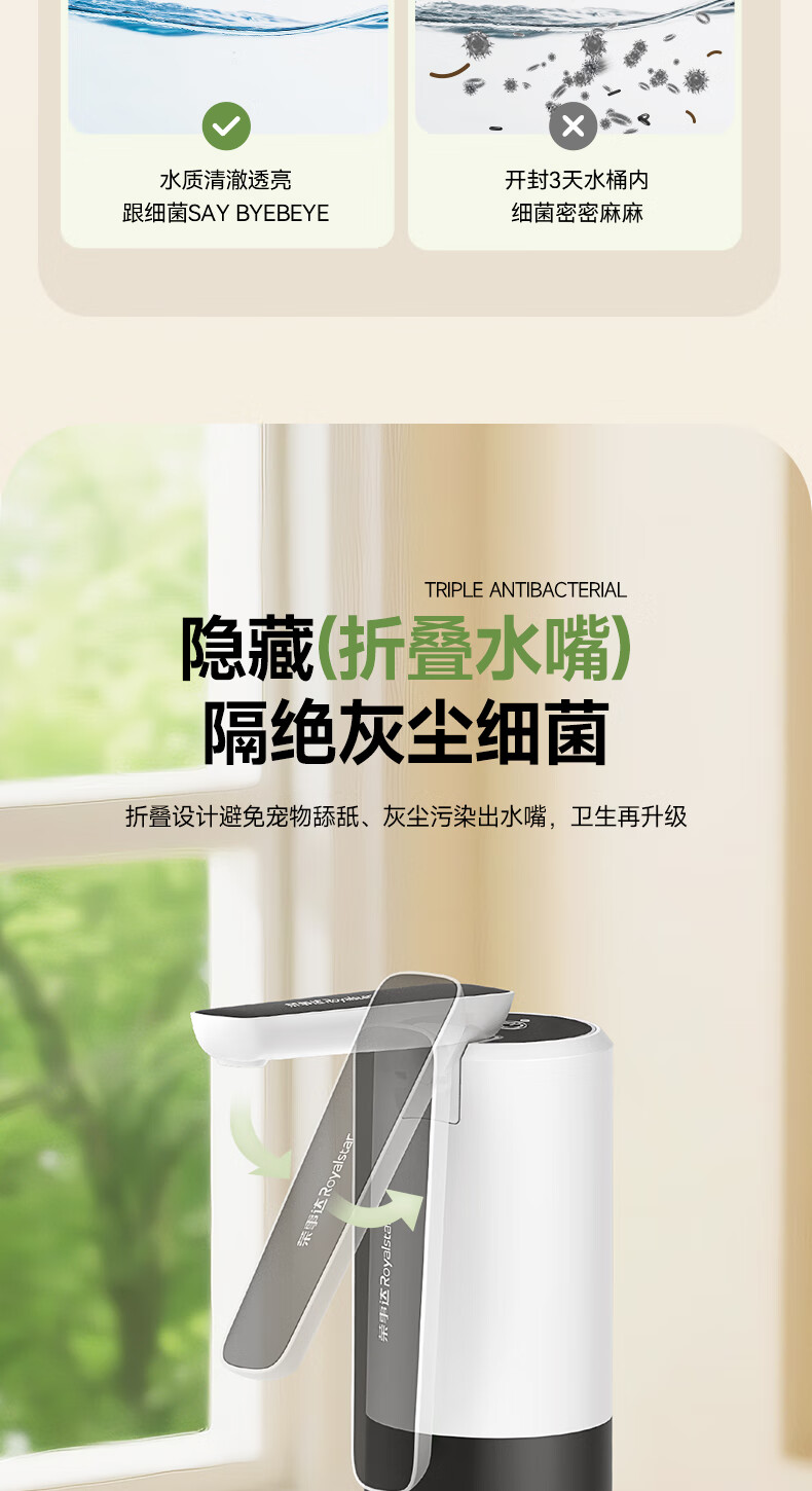 Royalstar electric water pump barreled water pressure automatic water pump household water dispenser pure bucket water absorption artifact antibacterial water purification large water pump + folding dustproof