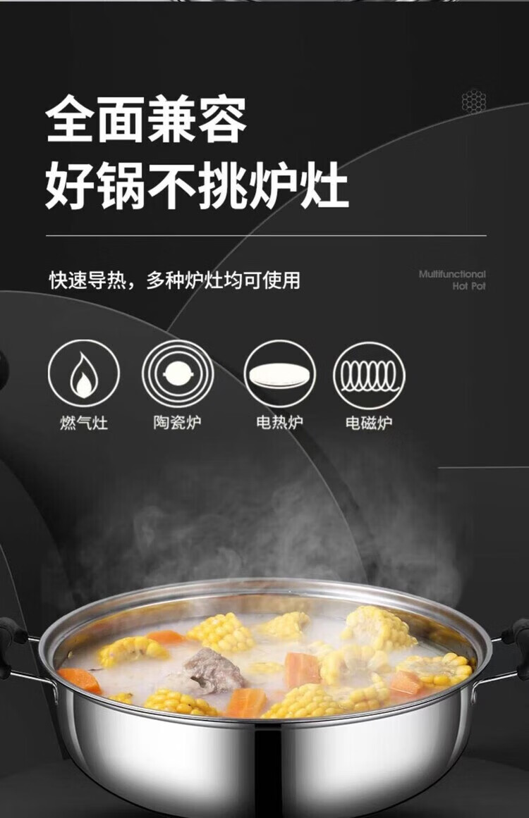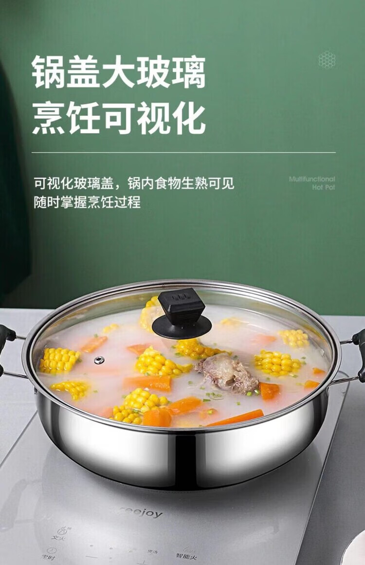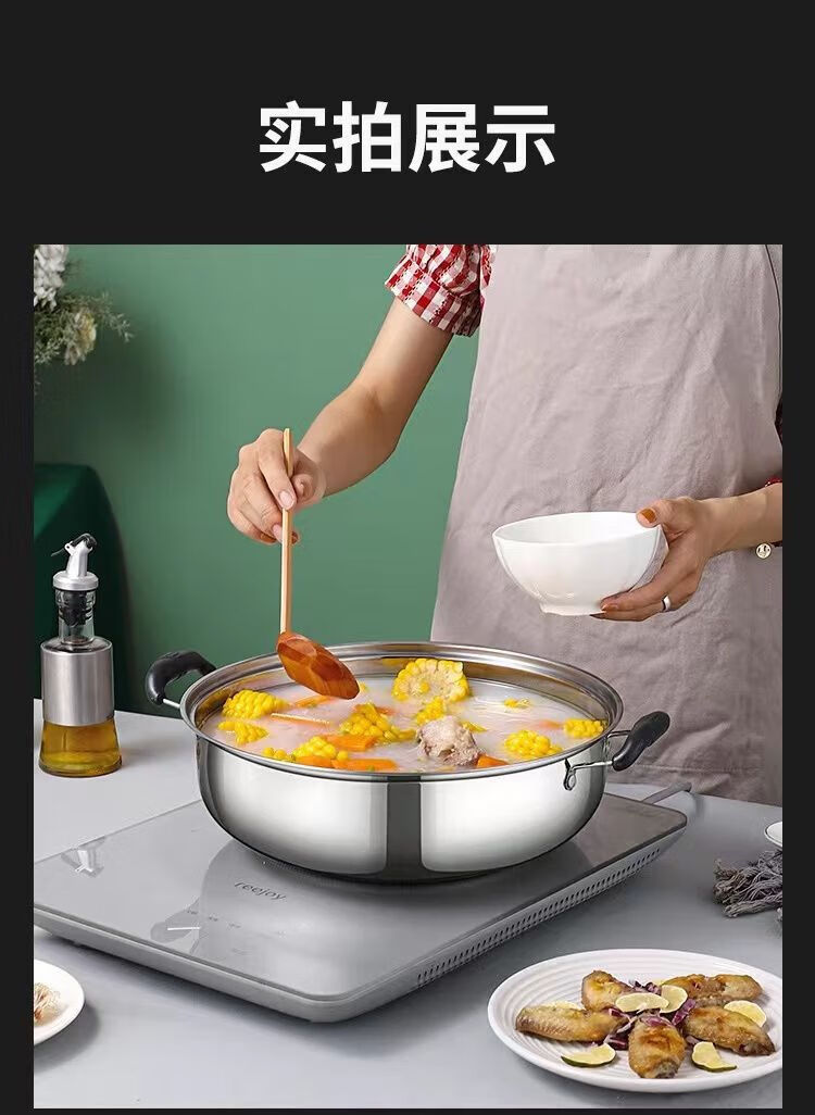 HKNA extra thick stainless steel soup pot, non-stick pot, gas stove, induction cooker, electric cooker, porridge and soup, multi-functional household hot pot, non-stick pot, no glass lid required, 1 inch, 27CM, thick, for 2-4 people