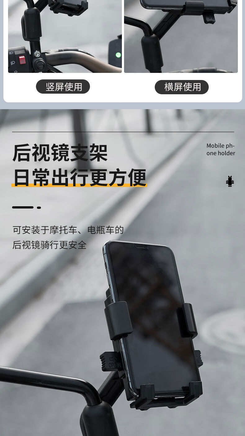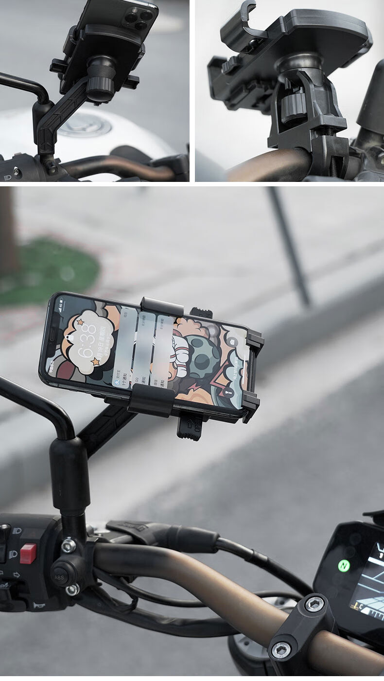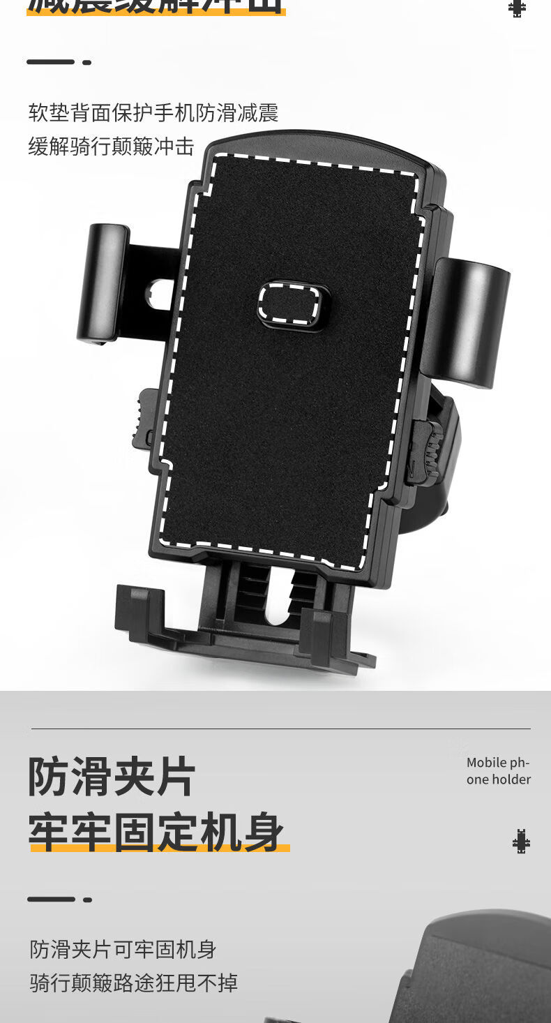 Motorcycle electric vehicle mobile phone holder battery bicycle scooter vehicle stable shockproof takeaway mobile phone holder with small helmet - sturdy and durable black handlebar style