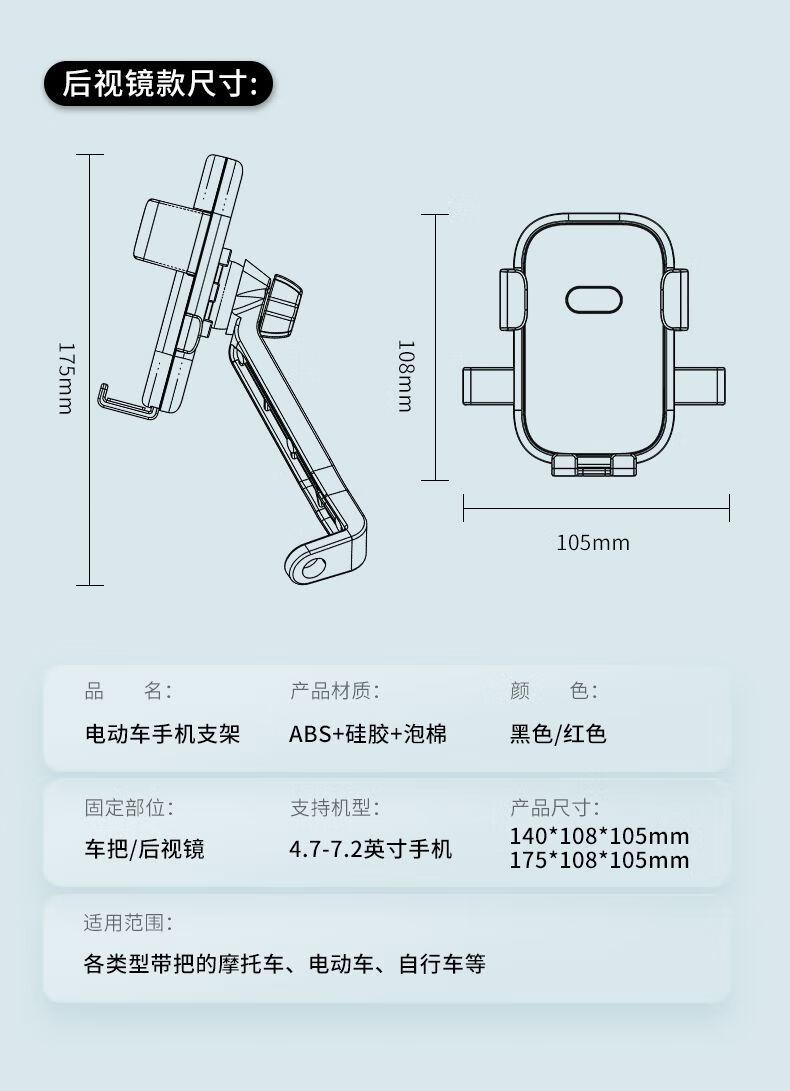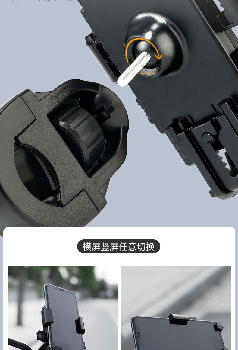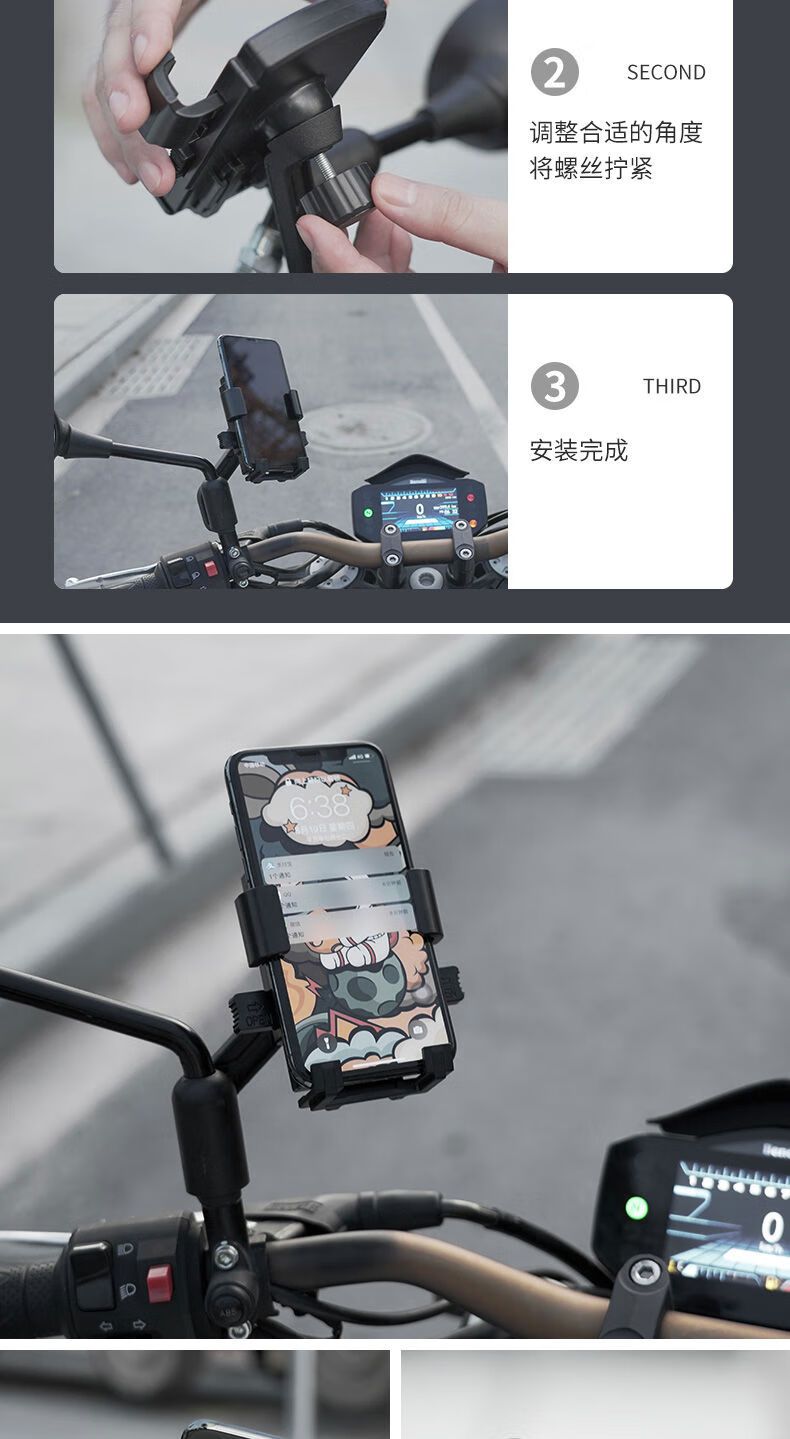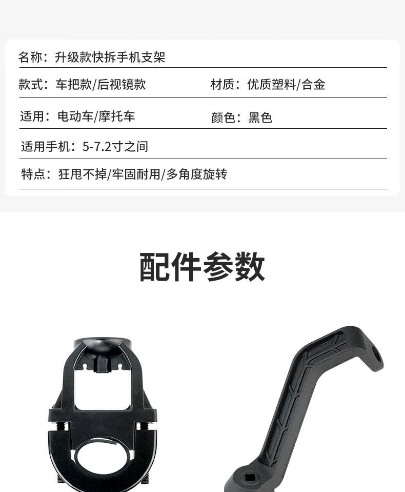 Motorcycle electric vehicle mobile phone holder battery bicycle scooter vehicle stable shockproof takeaway mobile phone holder with small helmet - sturdy and durable black handlebar style