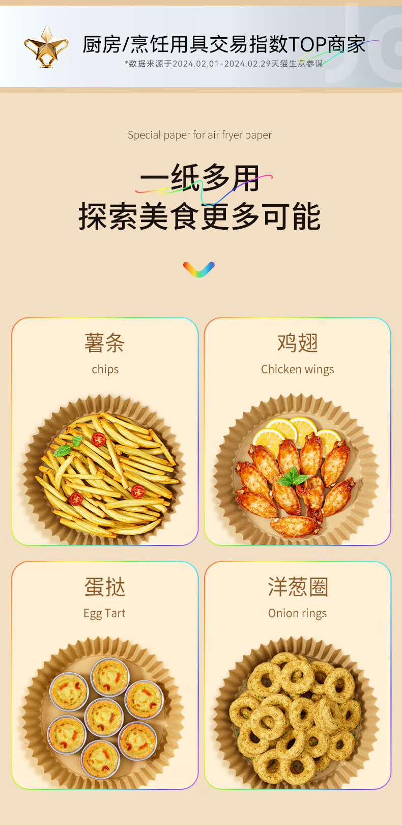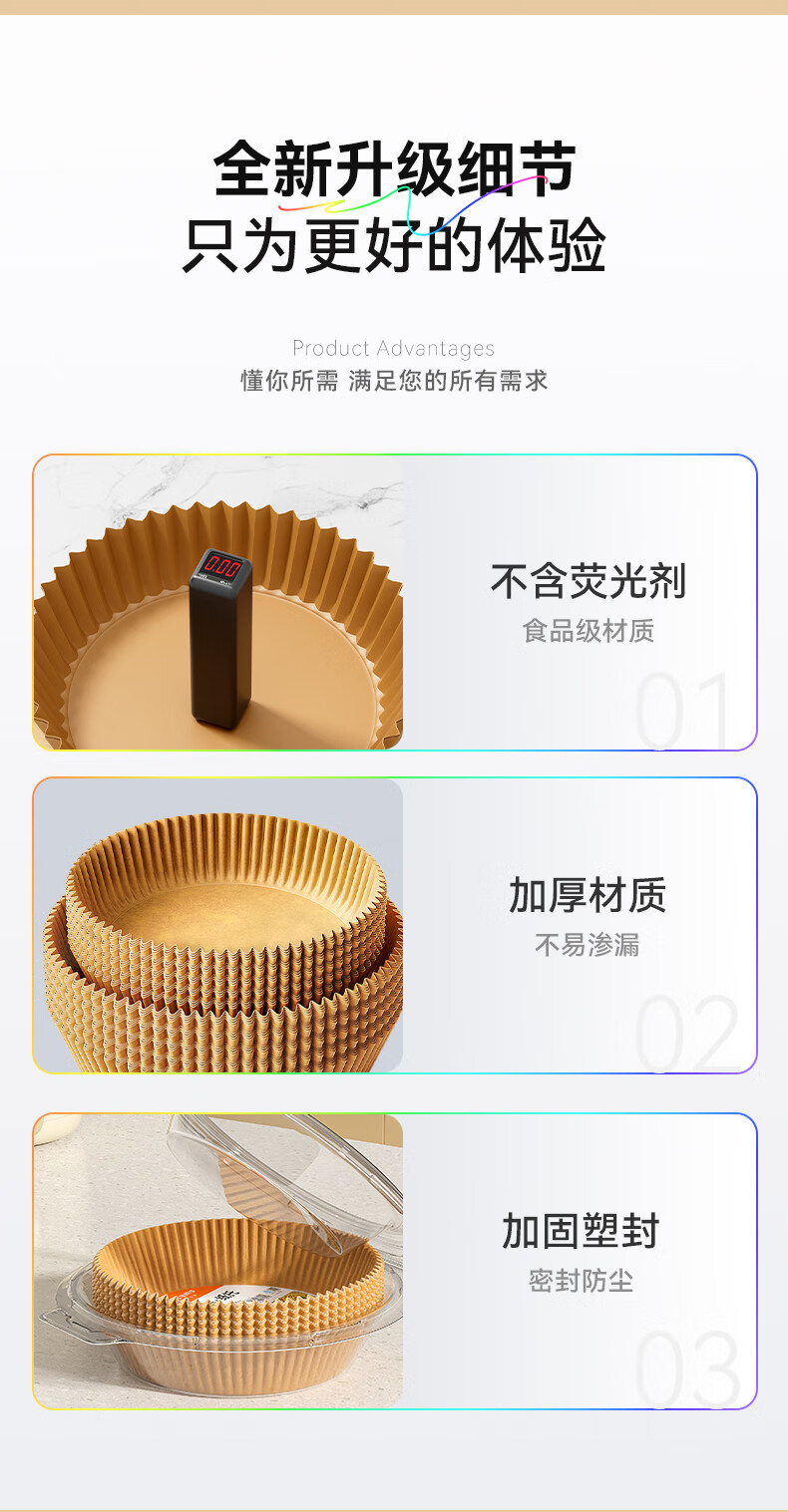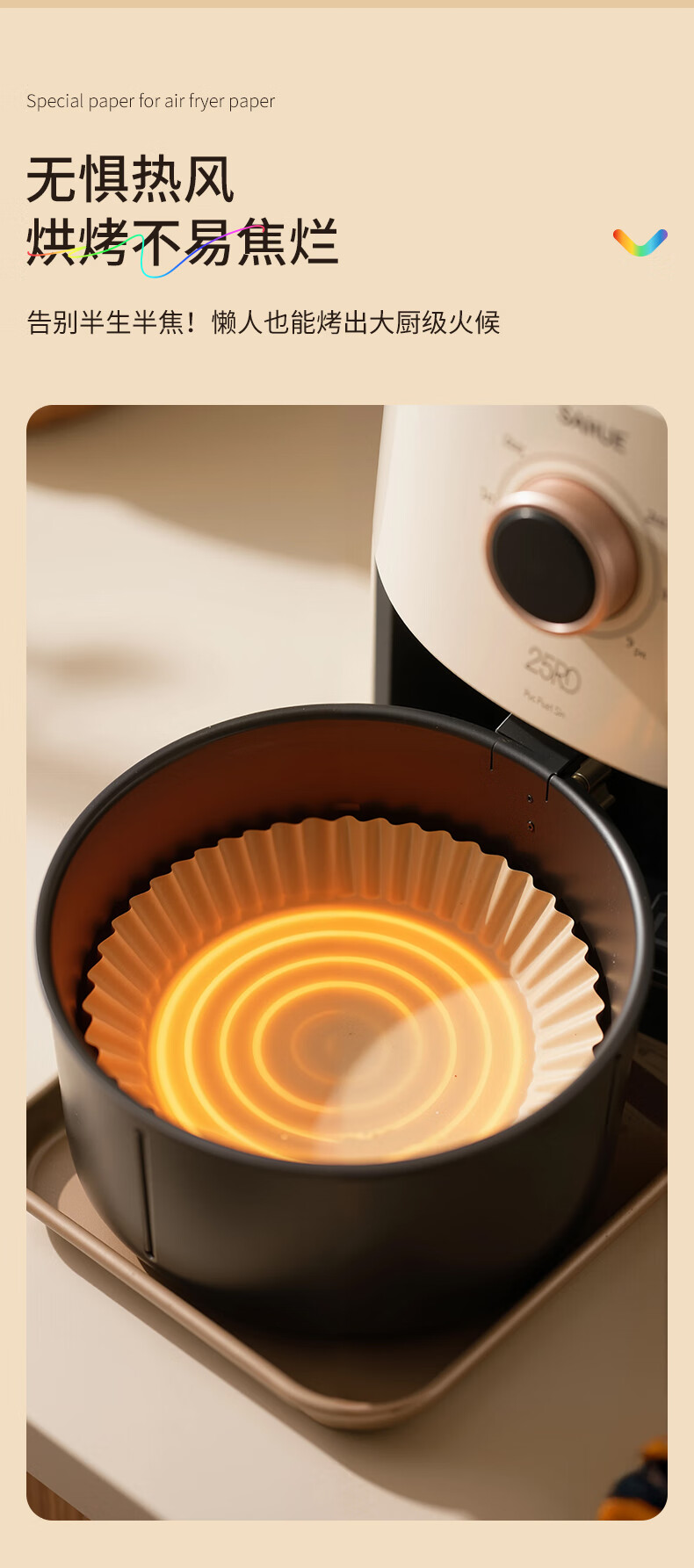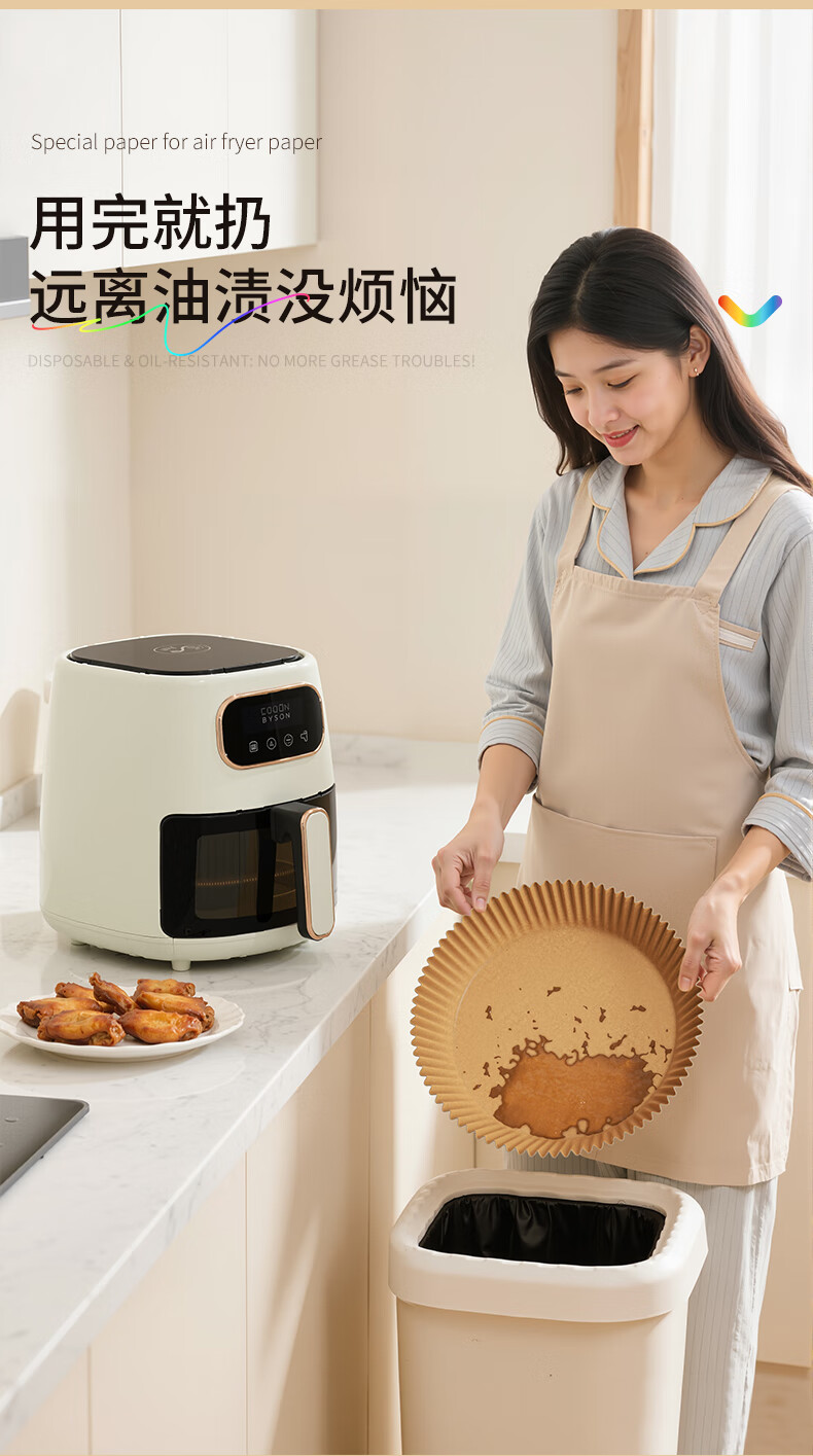 Fat Donglai's same air fryer special paper household thickened oil-absorbing paper food oven baking silicone oil paper pad tin 20 sheets