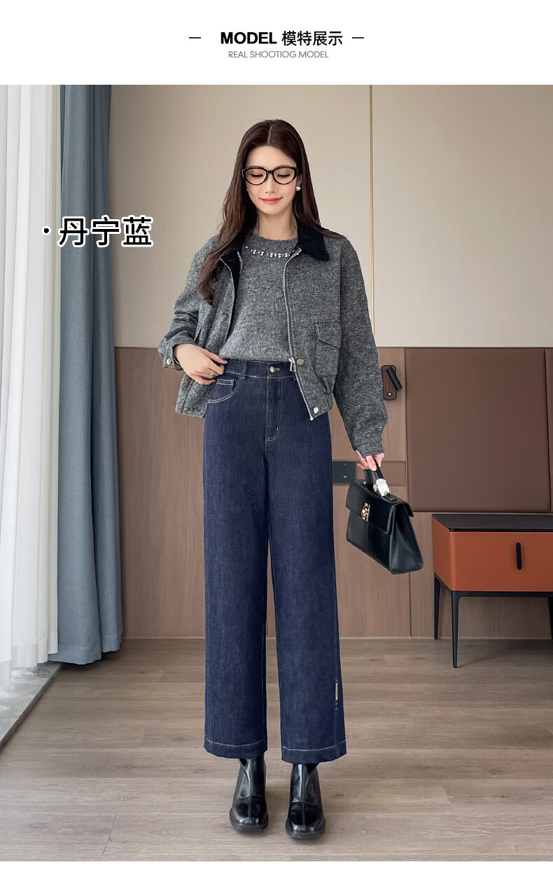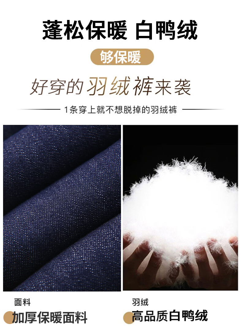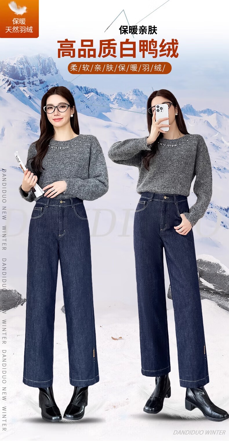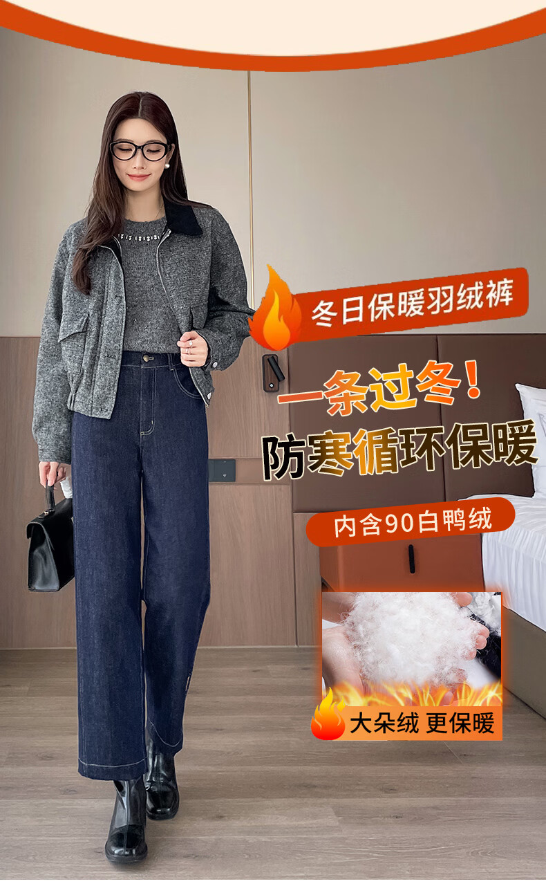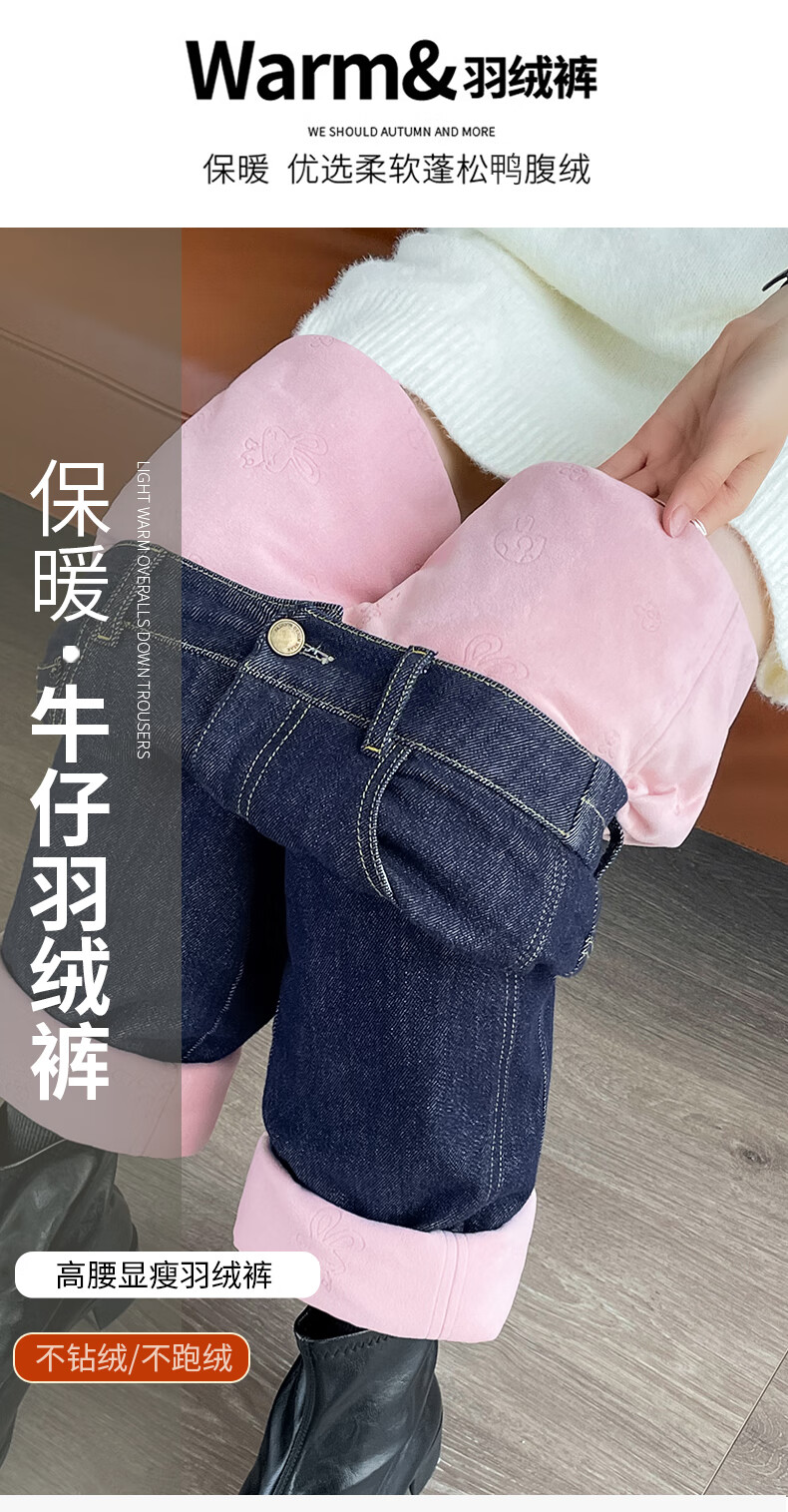 RLAS small wide-legged denim down pants for women winter outer wear 2025 new minus 40 degree cold protection and warm thick cotton pants denim blue down S 80-95Jin Jin equals 0.5 kg