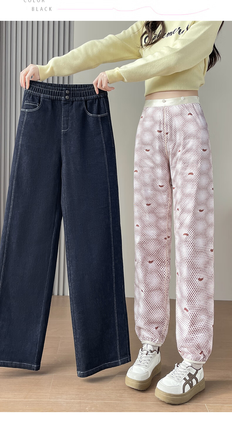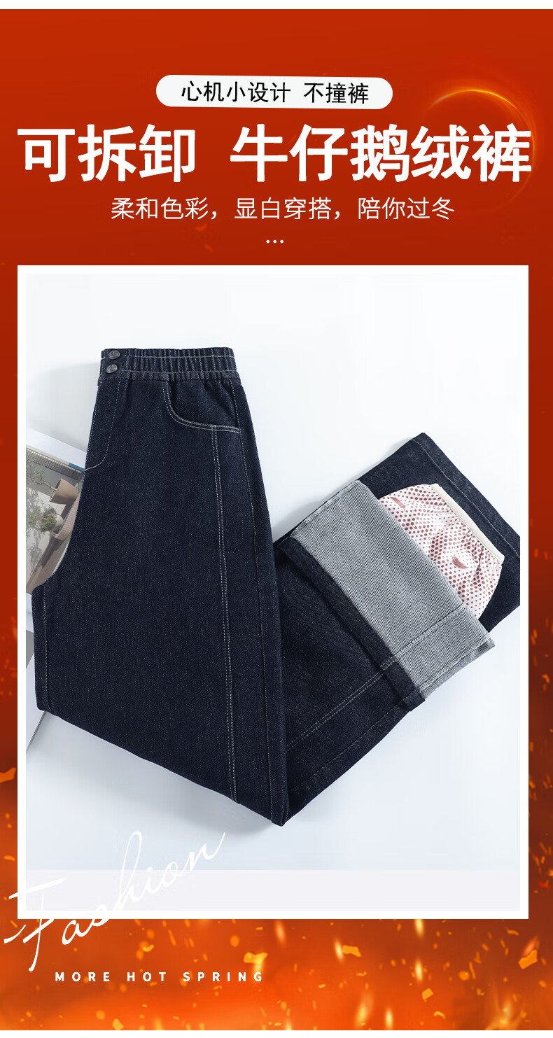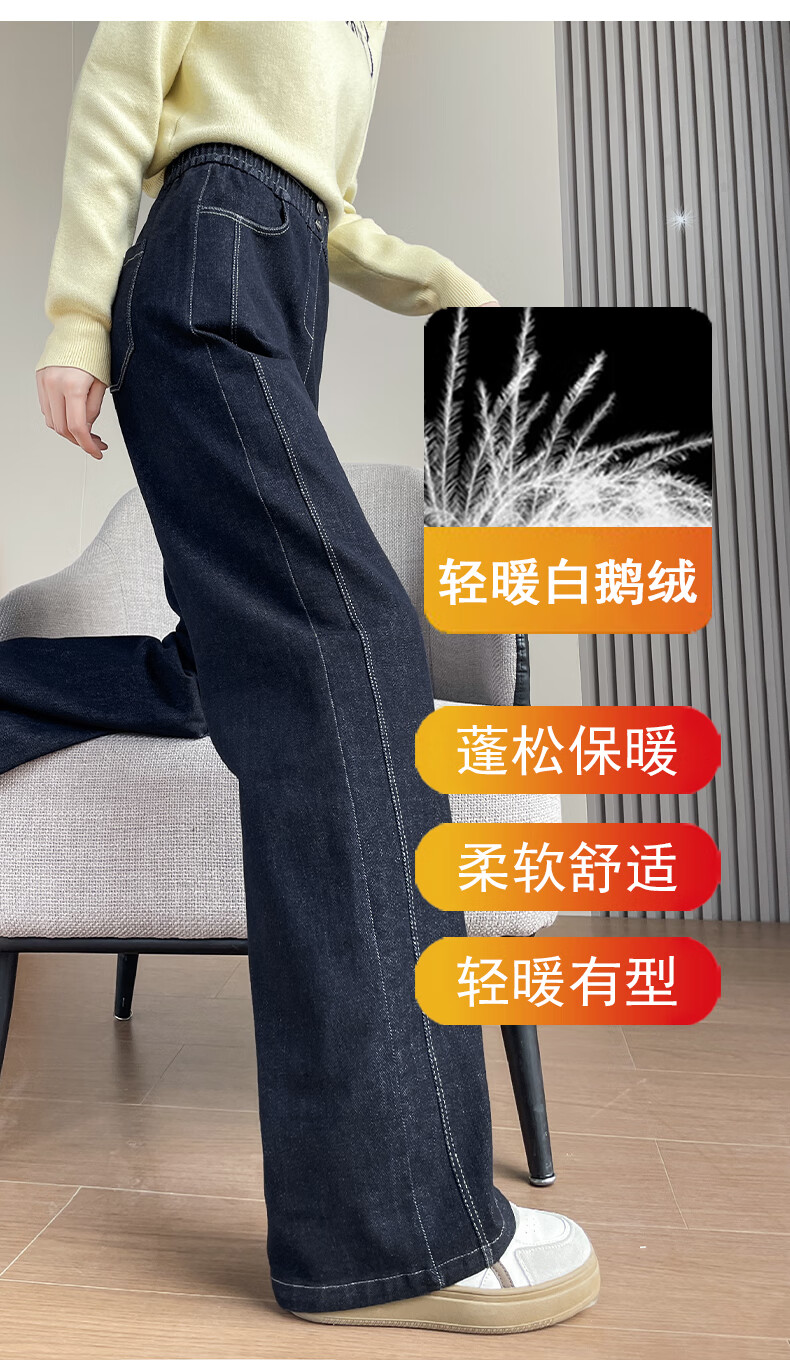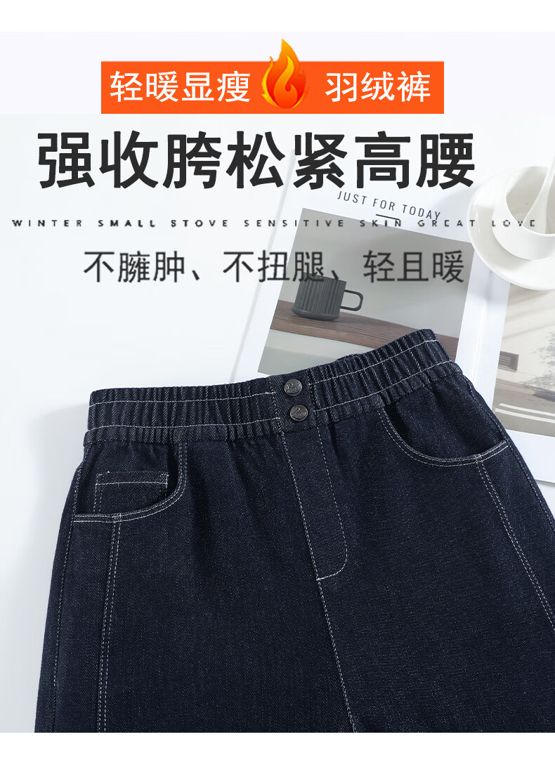 RLAS Съемные джинсовые брюки на гусином пуху Женская зимняя верхняя одежда 2026 Новый тип - 40 градусов Холодные теплые хлопковые брюки Темно-синие M