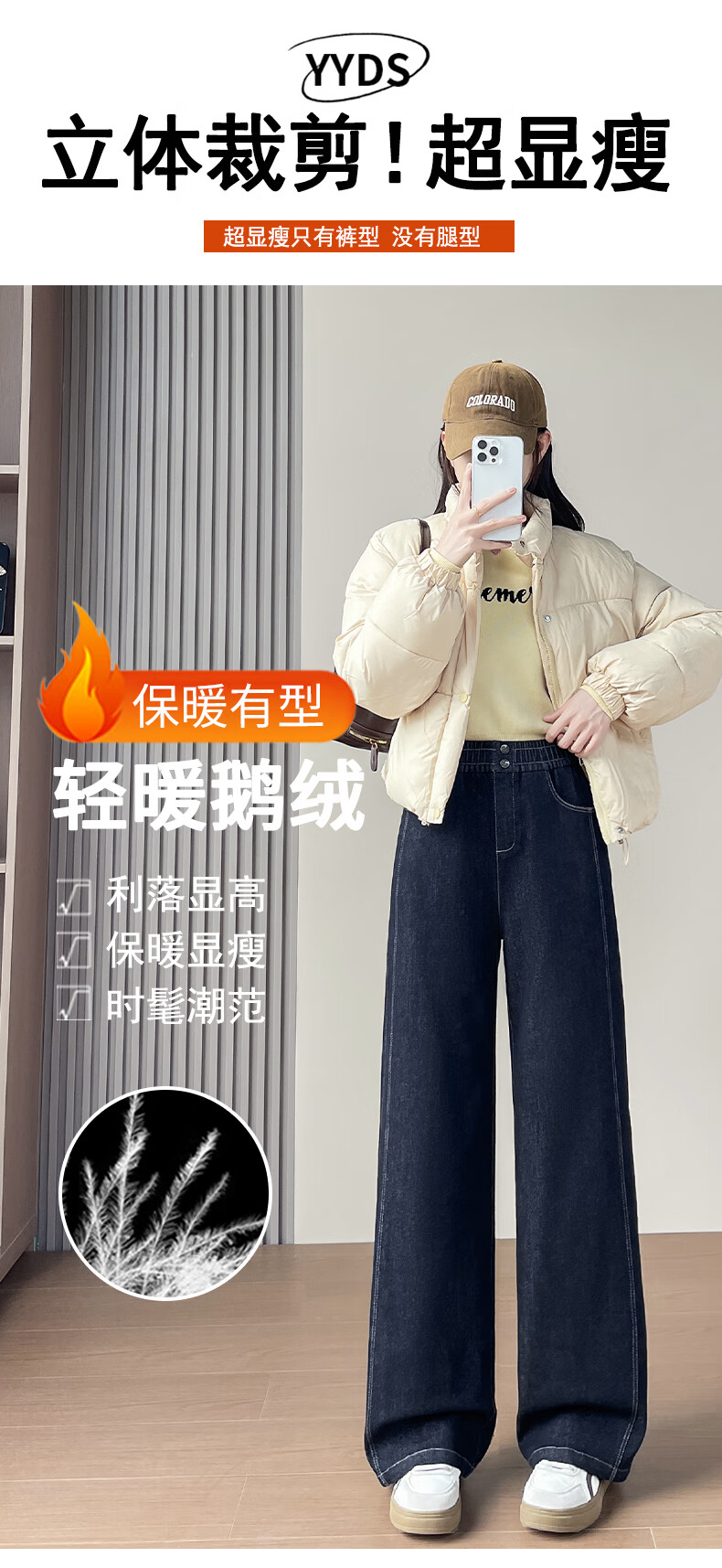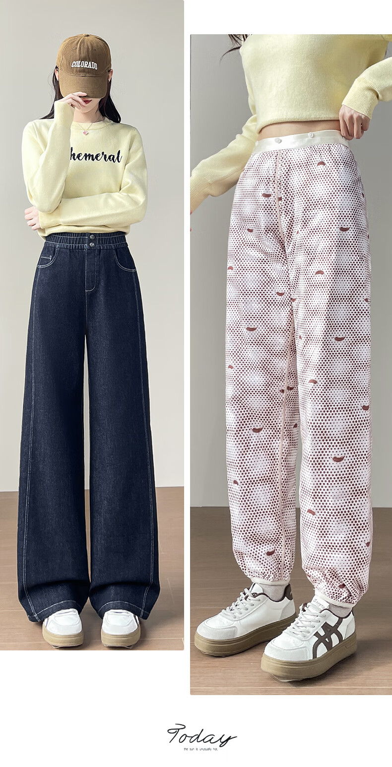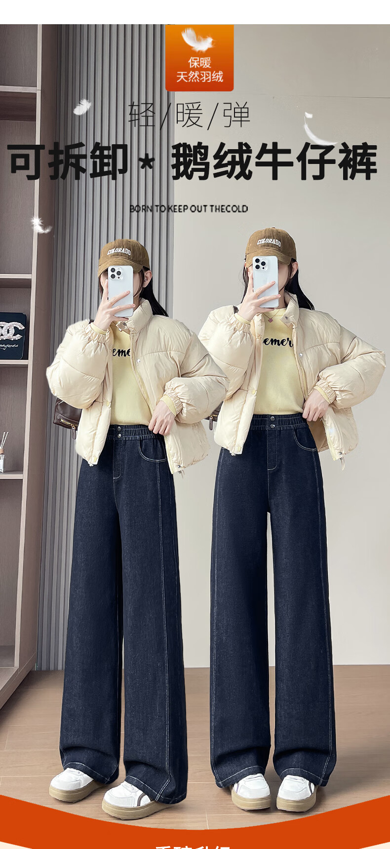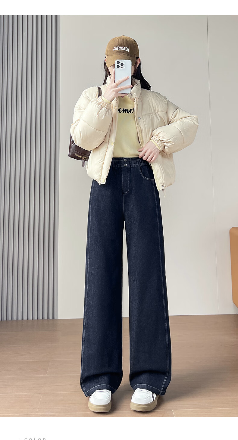 RLAS Съемные джинсовые брюки на гусином пуху Женская зимняя верхняя одежда 2026 Новый тип - 40 градусов Холодные теплые хлопковые брюки Темно-синие M