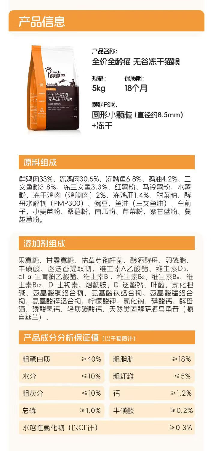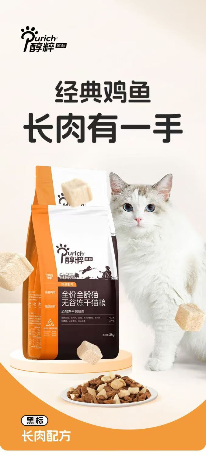Pure Cat Food Black Label 1.5/5kg Adult Cats and Kittens Full Price Freeze-Dried Pure Cat Food 10Jin Jin is equal to 0.5kg 0 Grain Fresh Meat Cat Food Black Label Grain-Free Freeze-Dried Cat Food 1.5kg