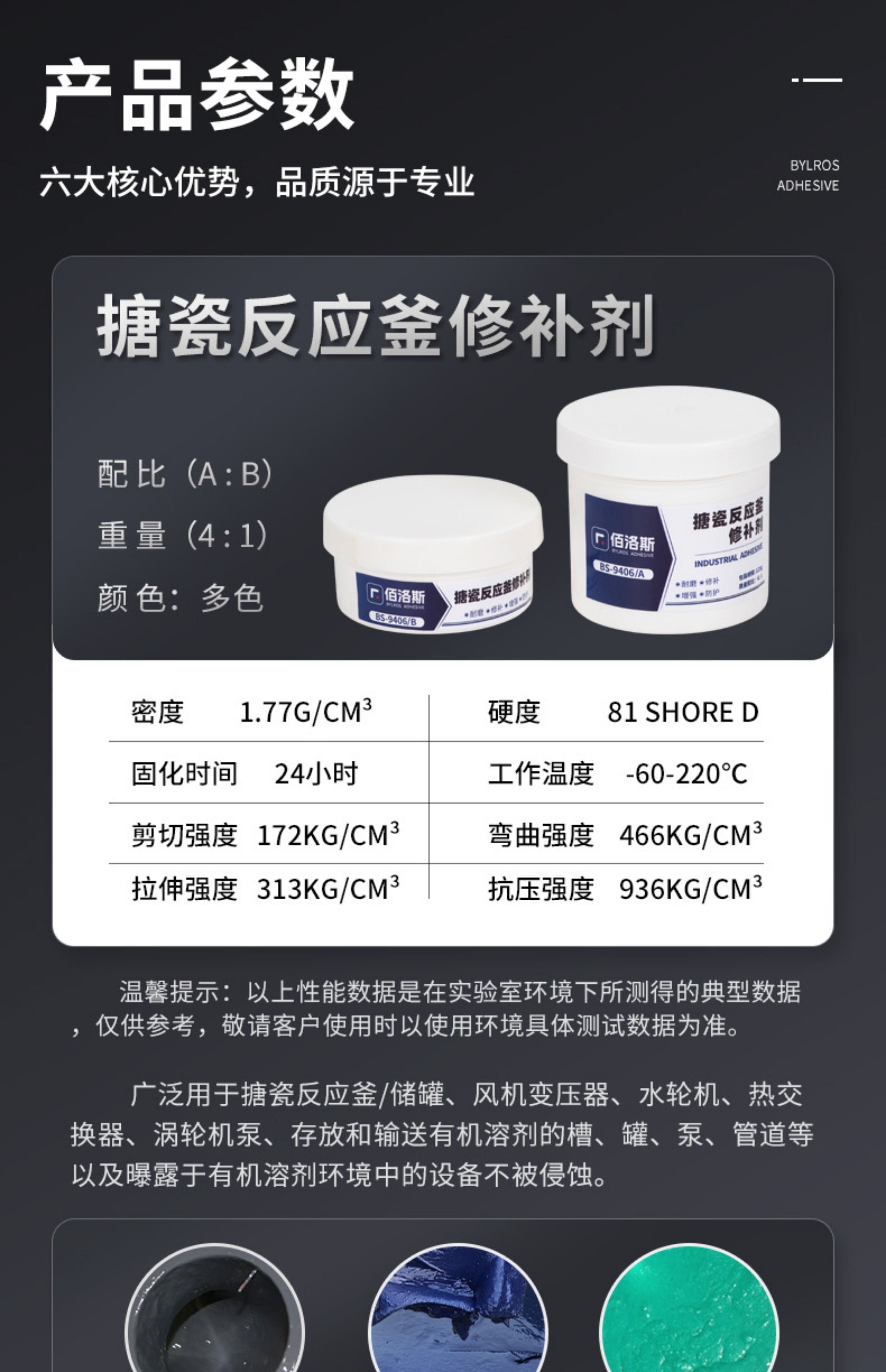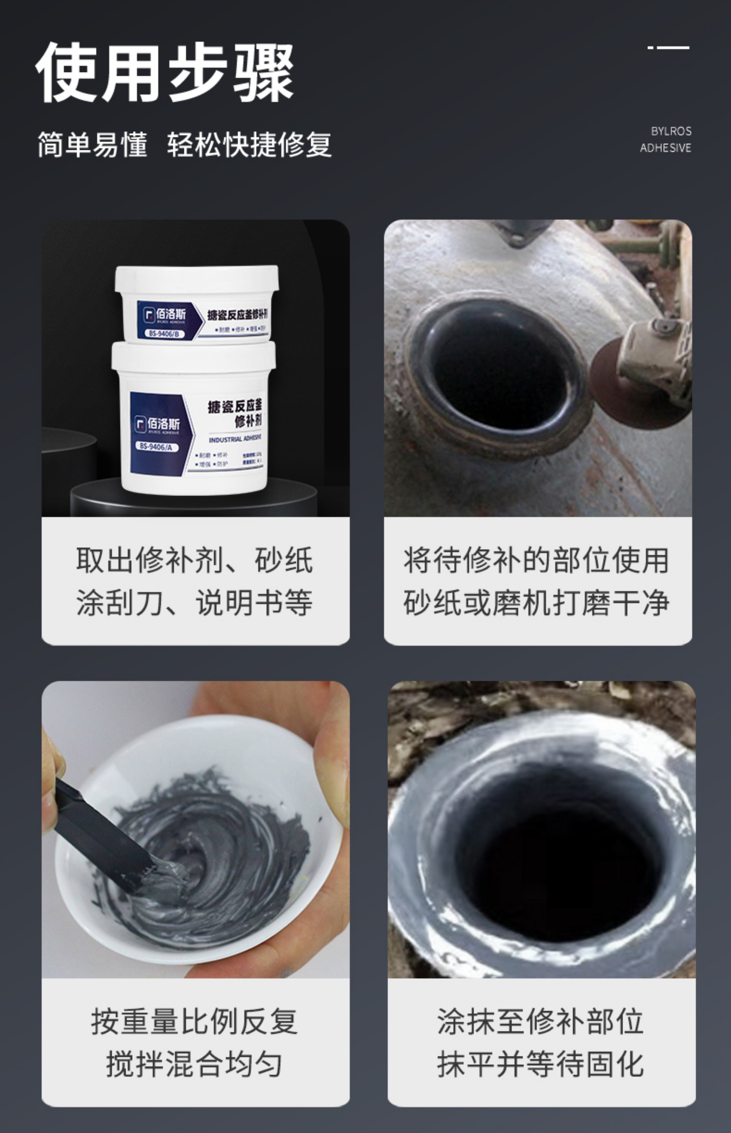 Industrial enamel reaction kettle glass-lined pot repair paste high temperature resistant anti-corrosion coating repair glue Bailuos repair agent black gray-125g