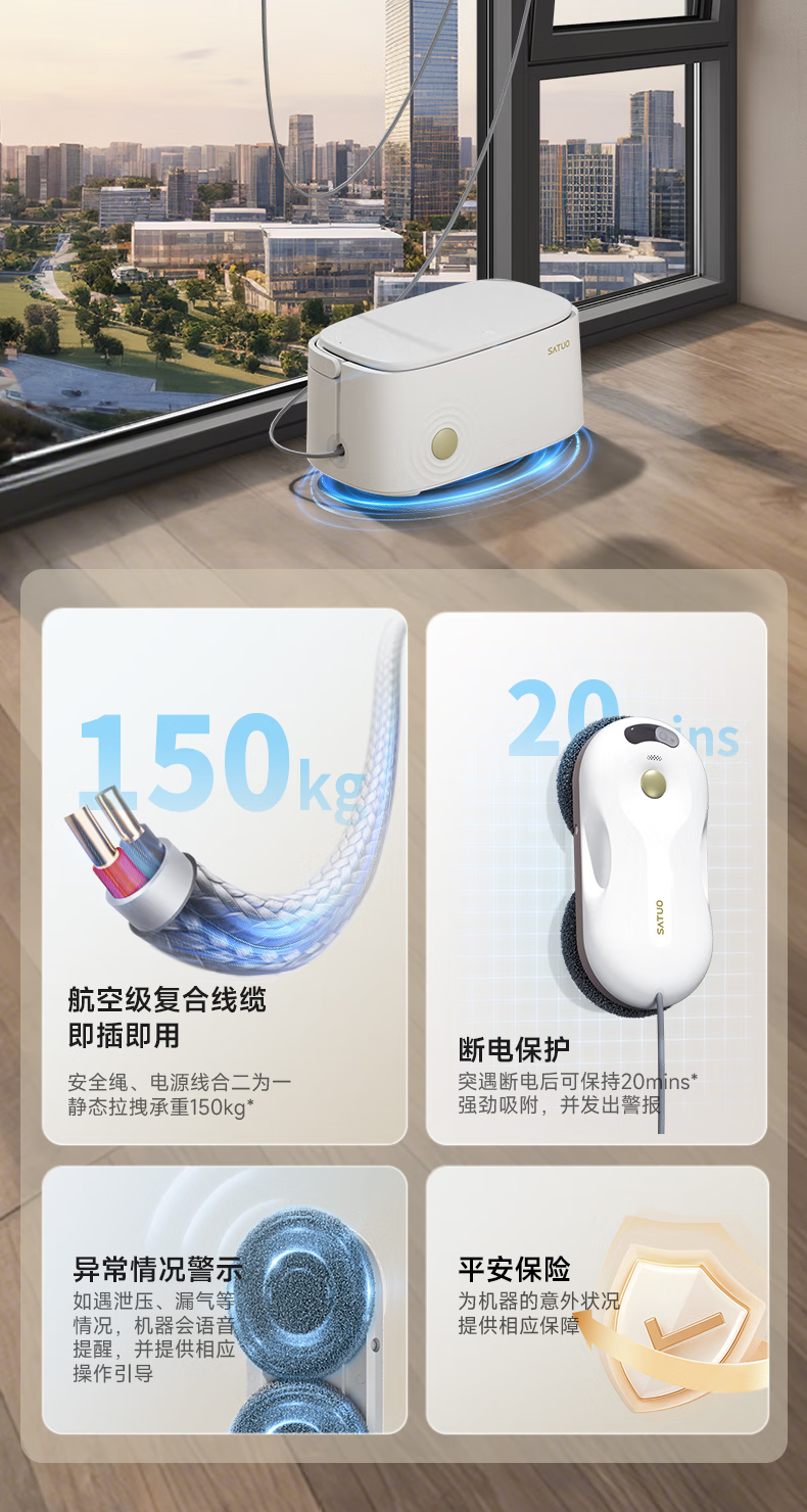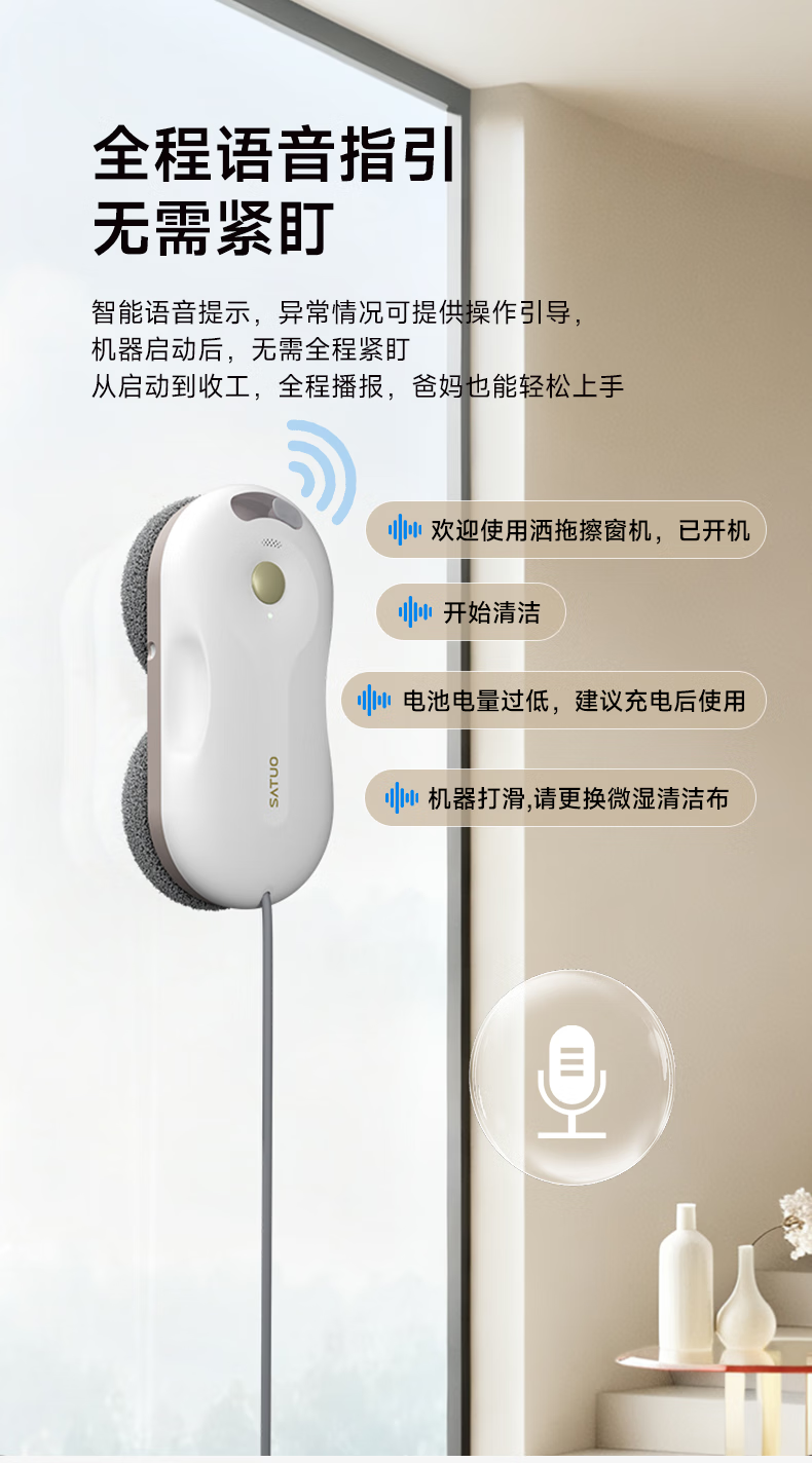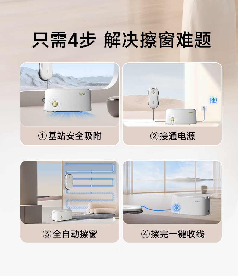 SATUO T30 PRO all-round base station window cleaning robot, national subsidy, dedicated for free and easy housekeeping, intelligent water spray glass window cleaning tool, top base station model