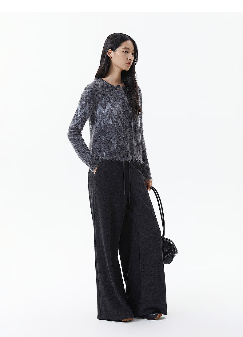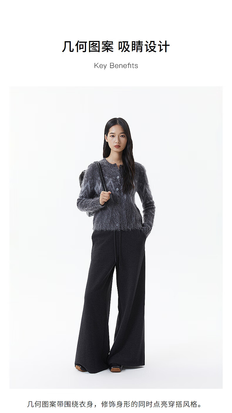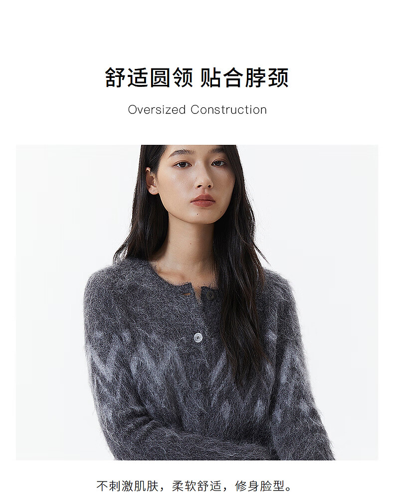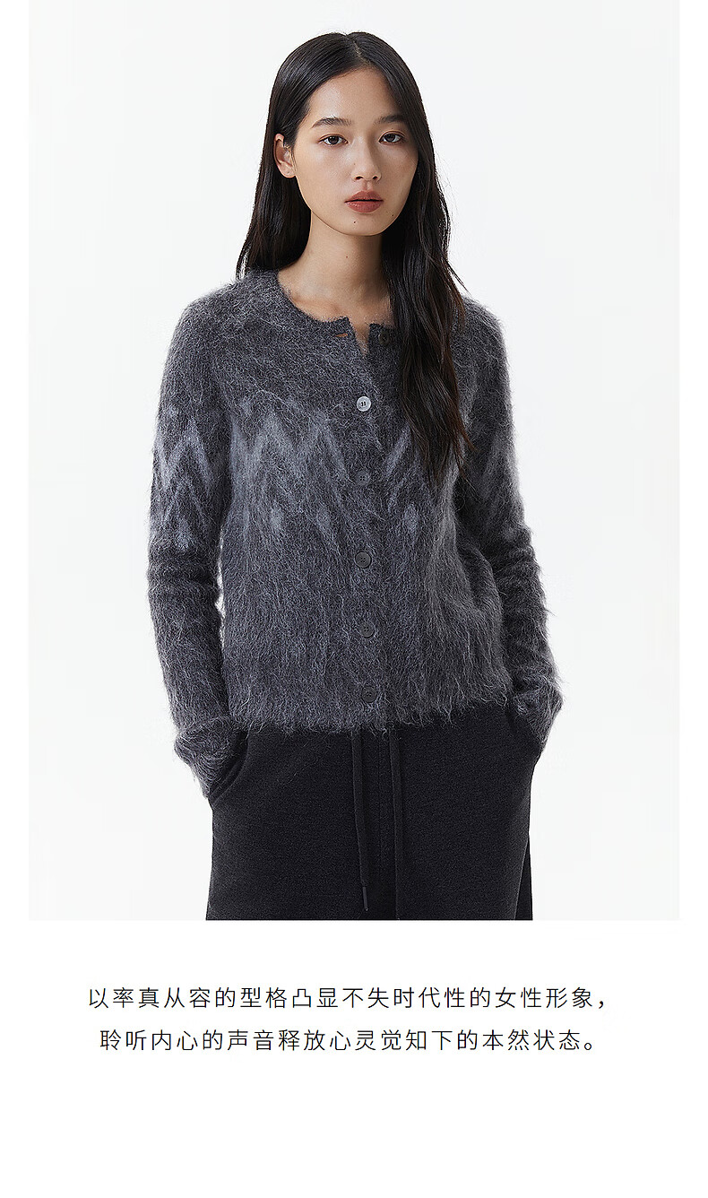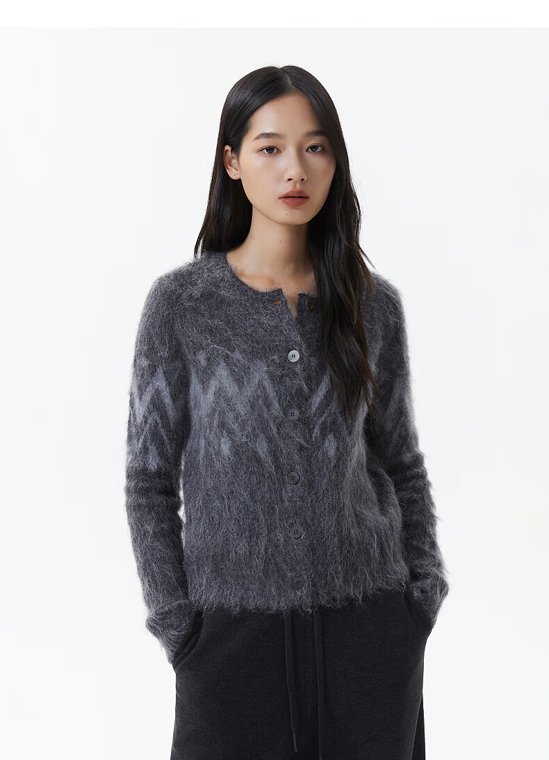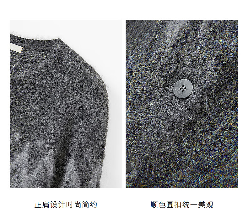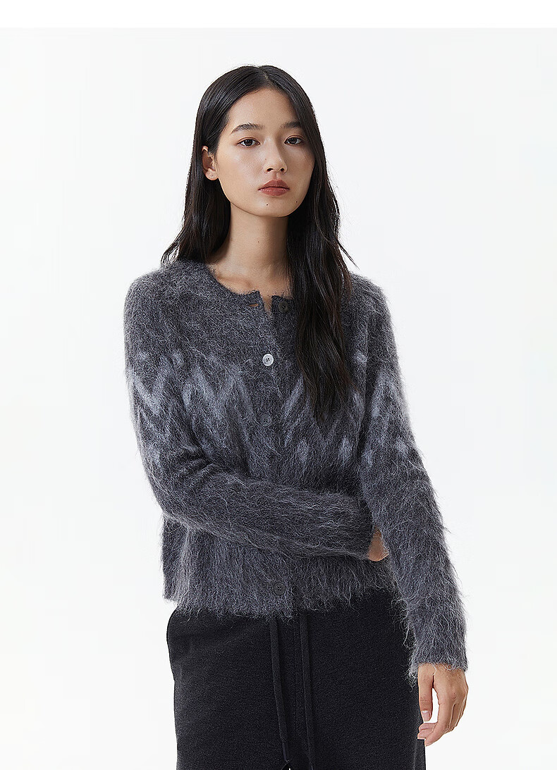 Broadcast casual loose front shoulder jacquard knitted cardigan for women 25 winter new style temperament sweater jacket DDS4UD5147 G20 frost gray L